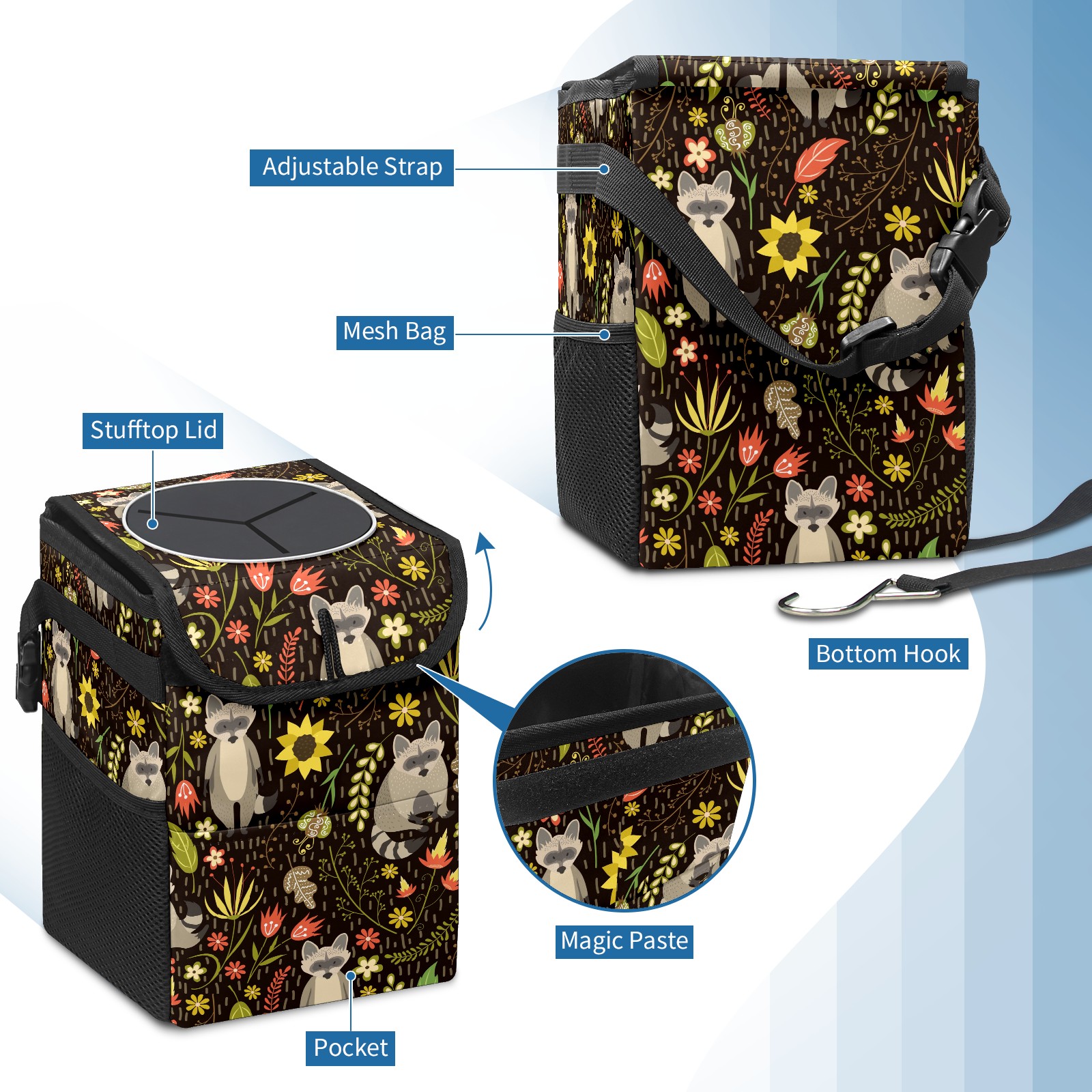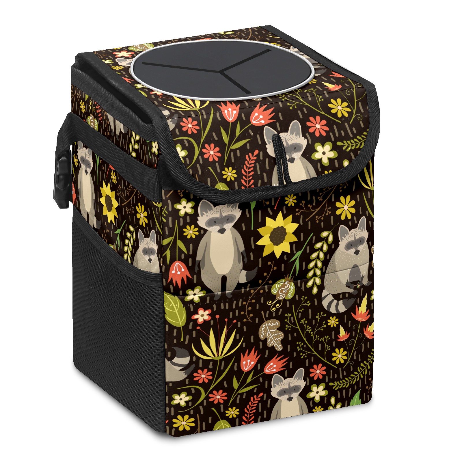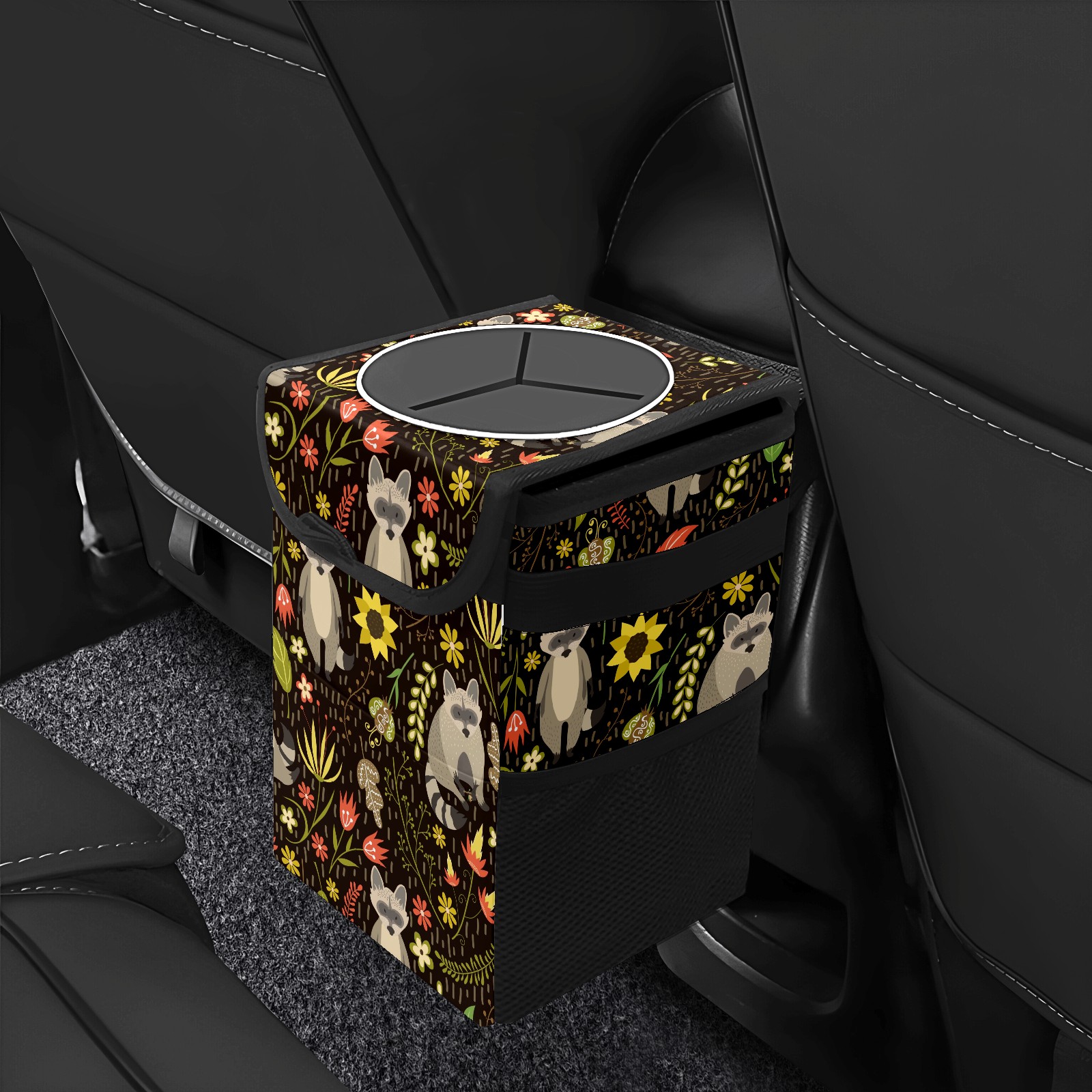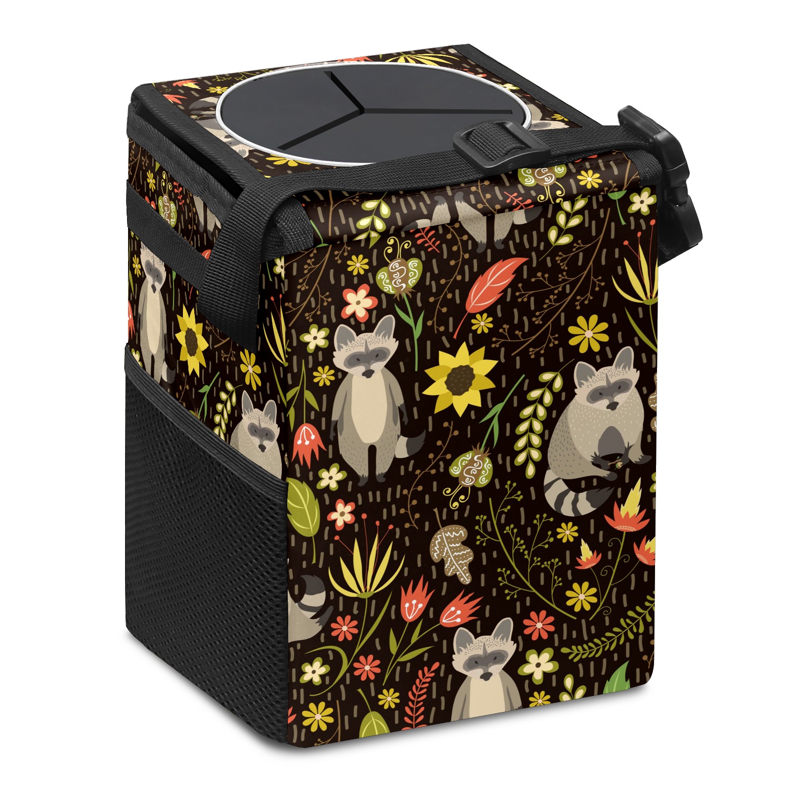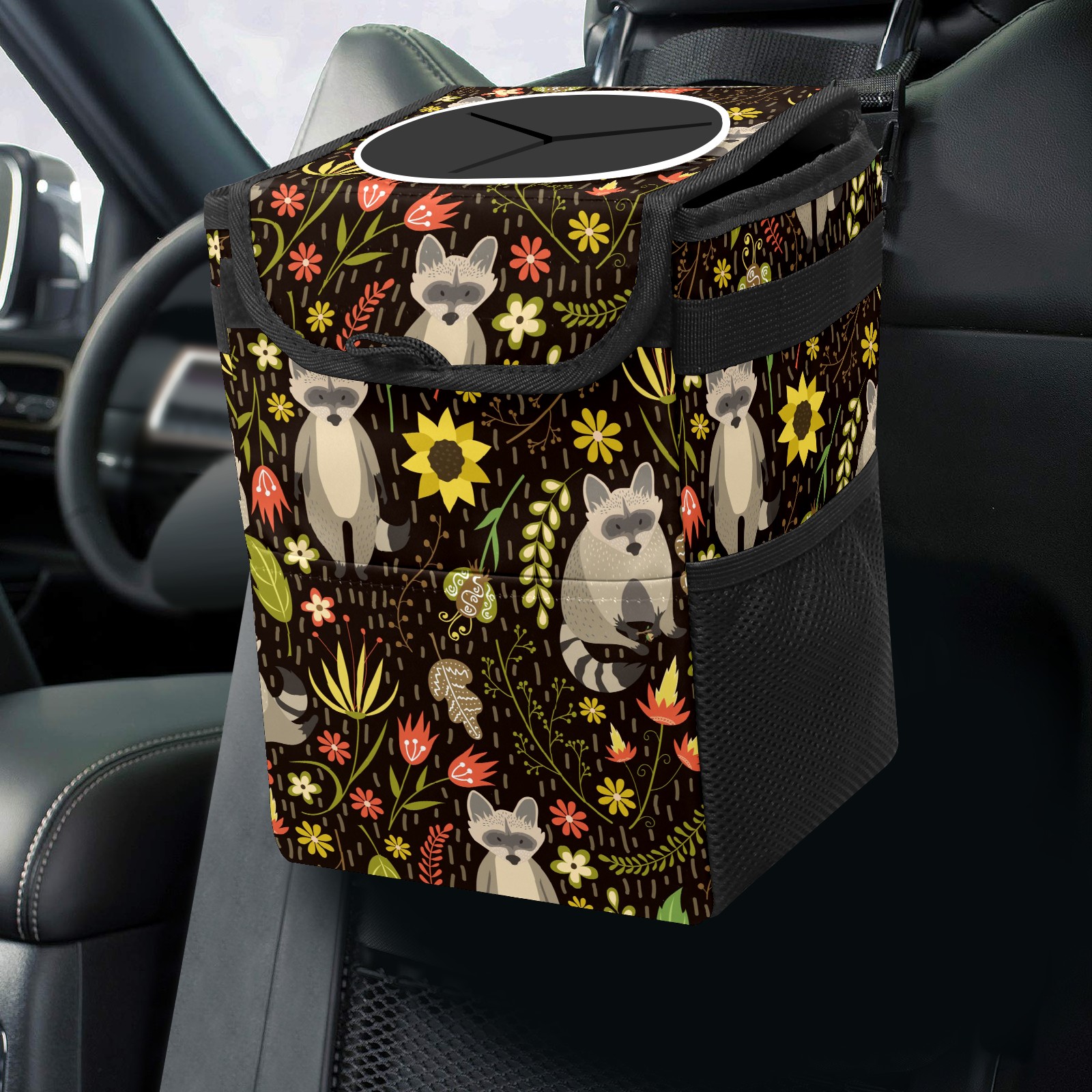 Car Garbage Can — Multi-functional, Lightweight Portable, Reusable Vehicle Trash Can, Waterproof with Sufficient Storage Capacity Forest Animal Raccoon Cute