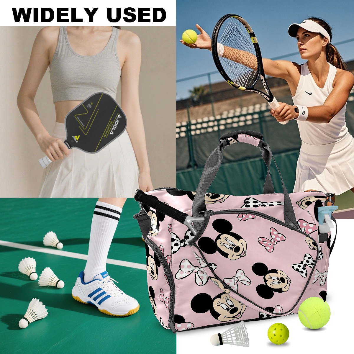 Pickleball Tote Bag Carryall for Paddles Balls and Accessories, Portable Lightweight Gear Bag for Players(Minnie Cutie)