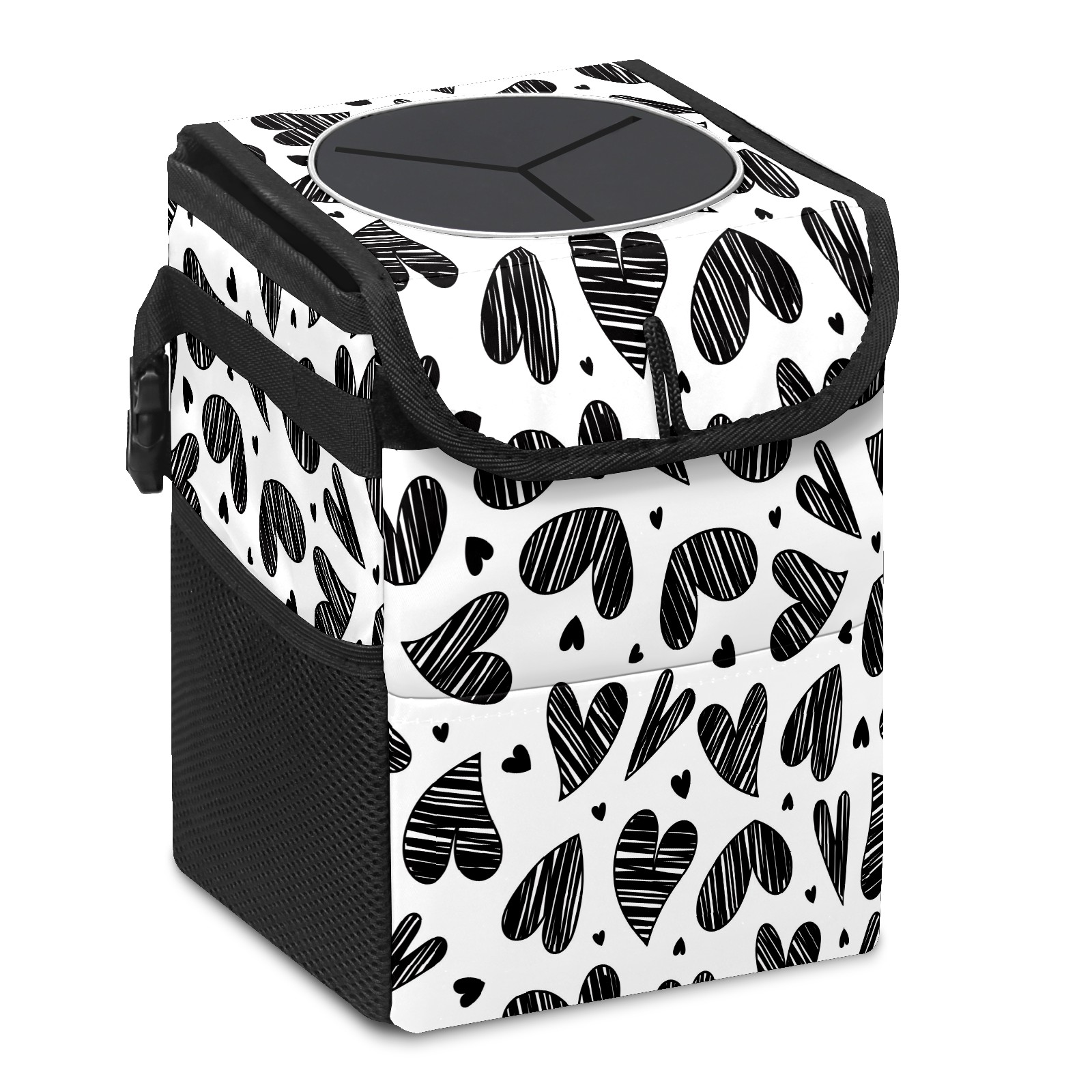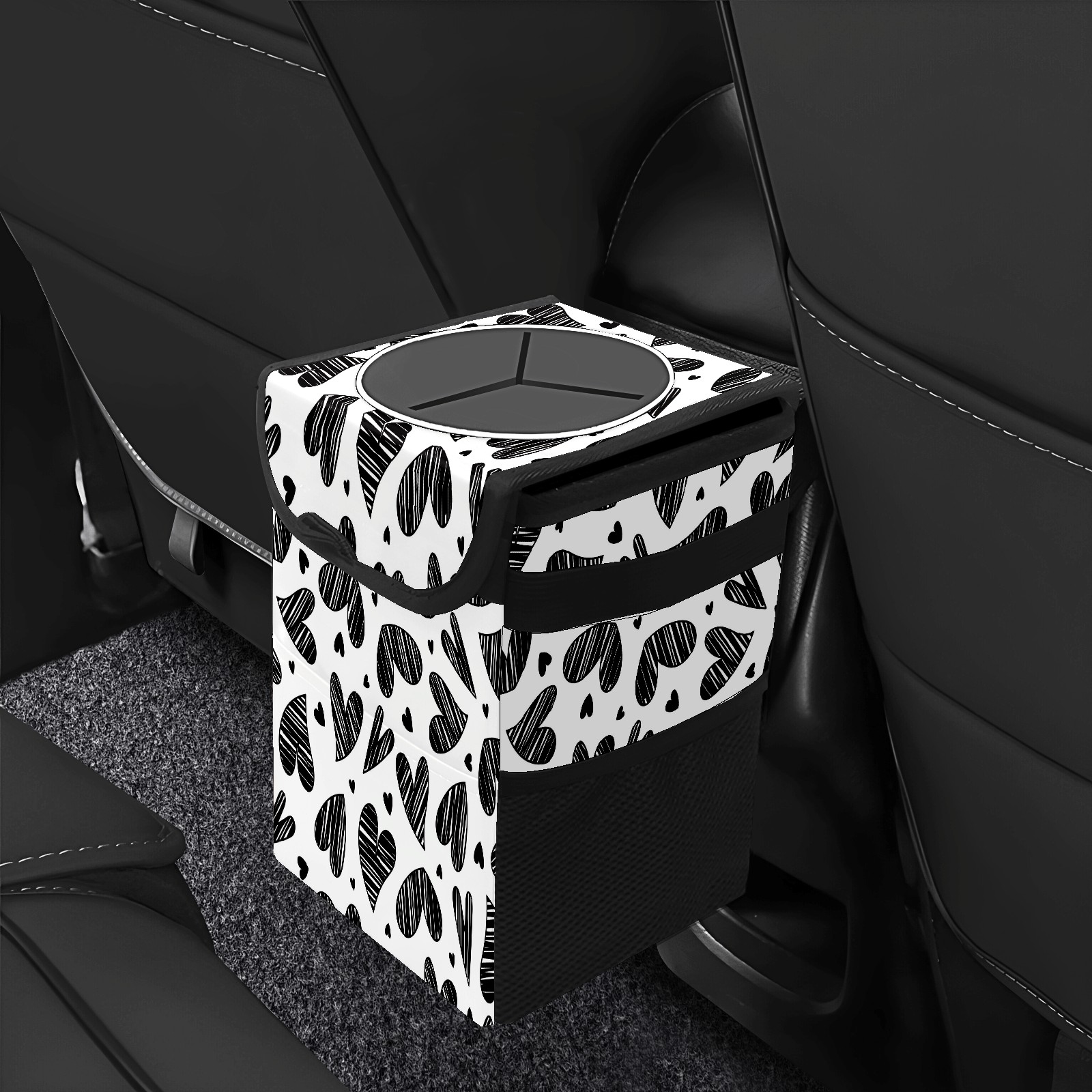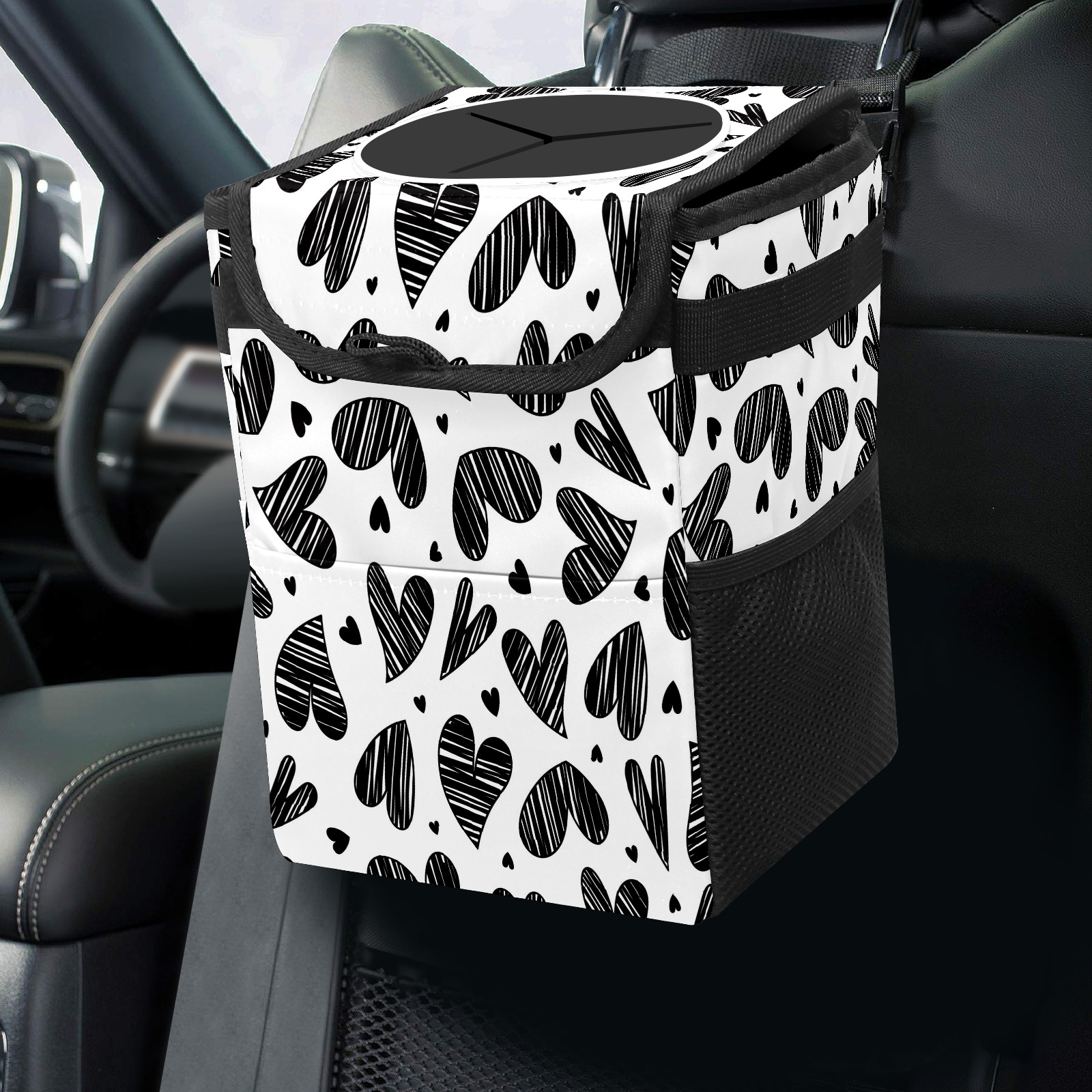 Car Garbage Can — Multi-functional, Lightweight Portable, Reusable Vehicle Trash Can, Waterproof with Sufficient Storage Capacity Doodle Love Heart Black Pattern