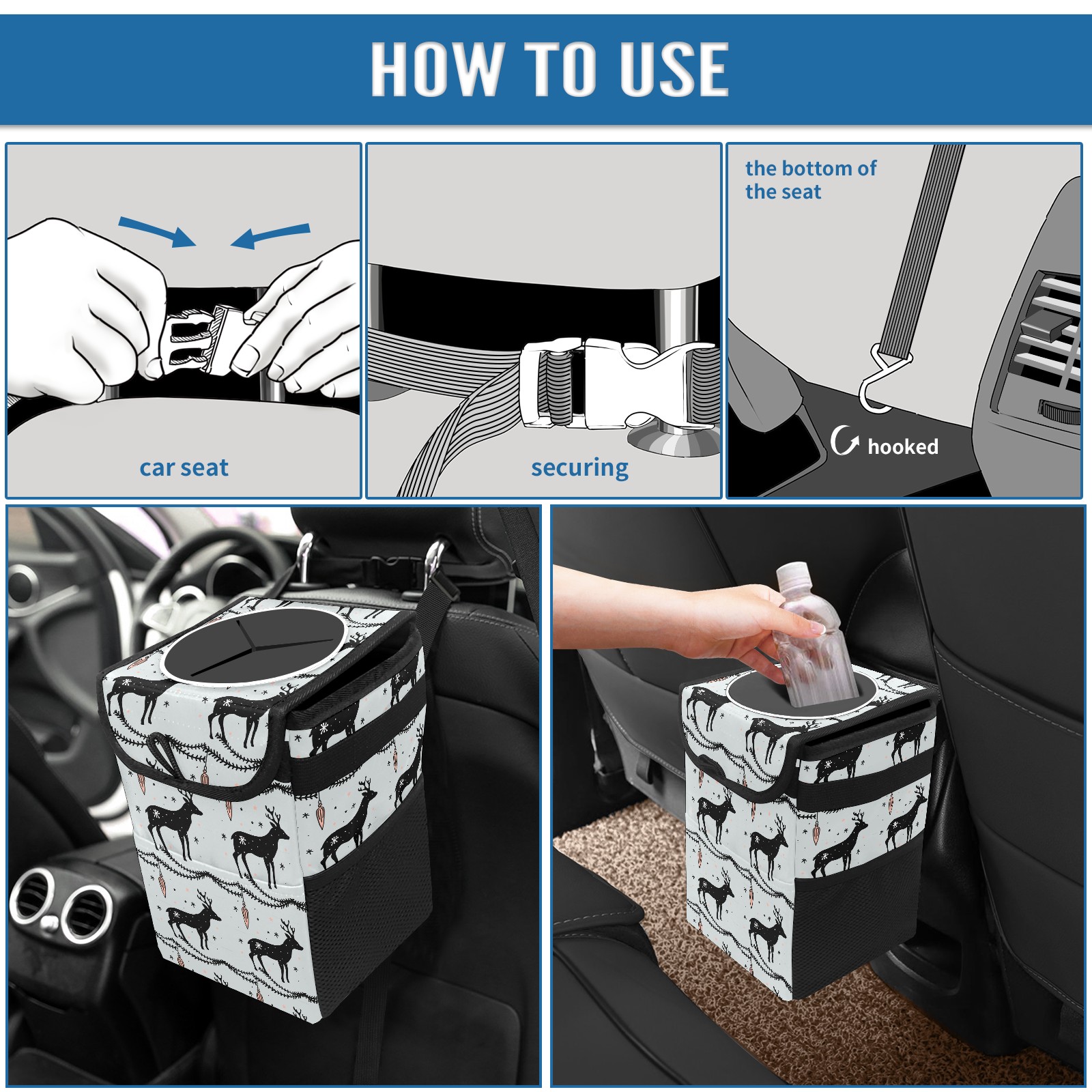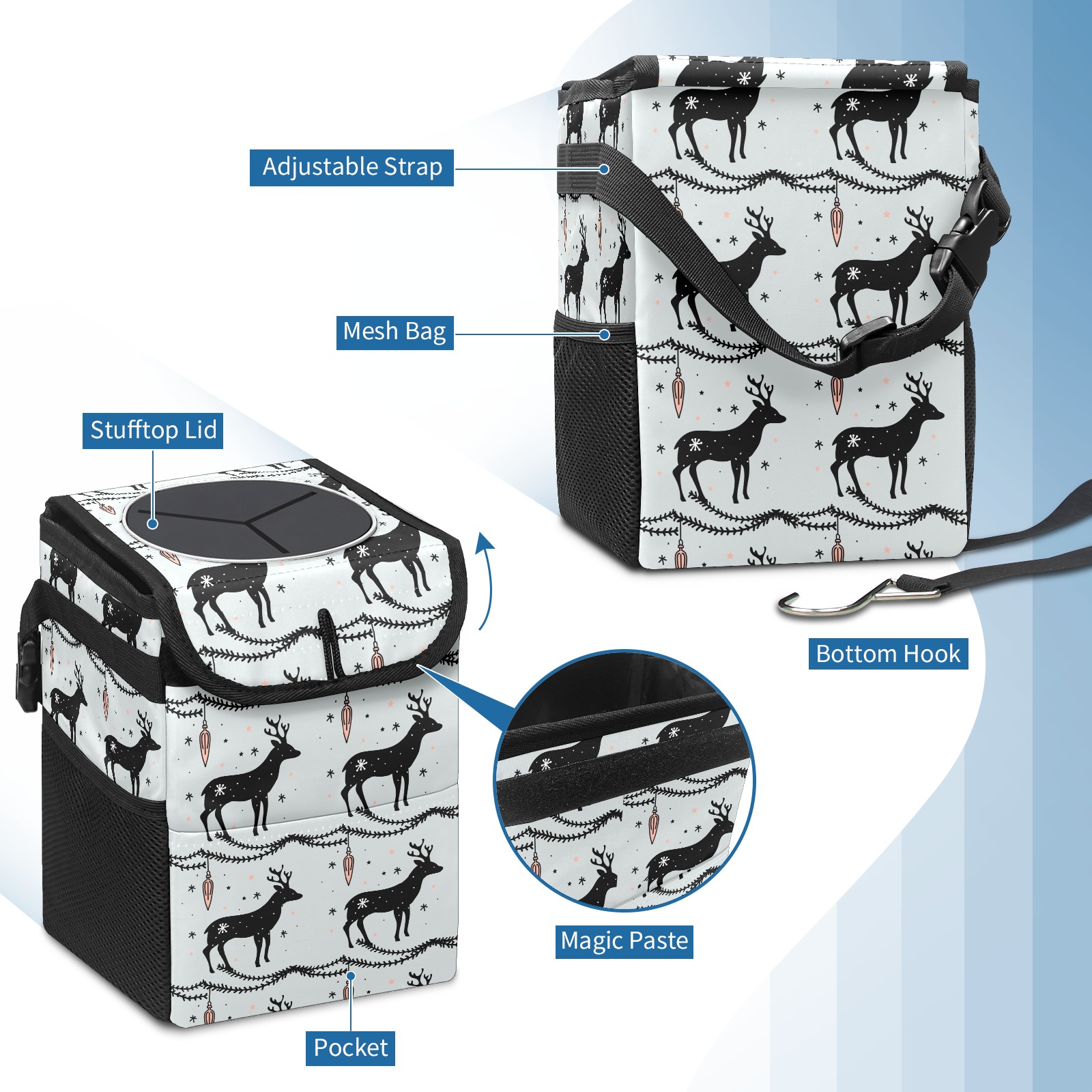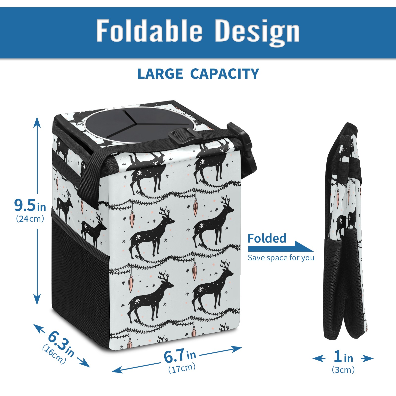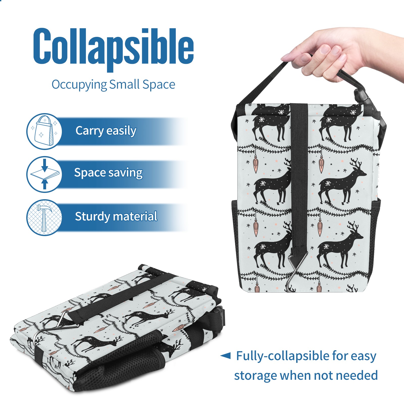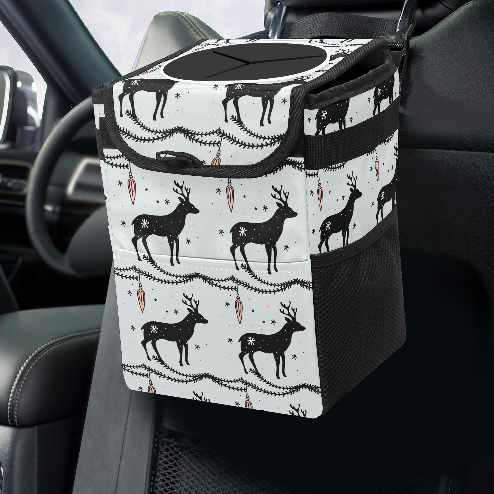 Car Garbage Can — Multi-functional, Lightweight Portable, Reusable Vehicle Trash Can, Waterproof with Sufficient Storage Capacity Deer Christmas