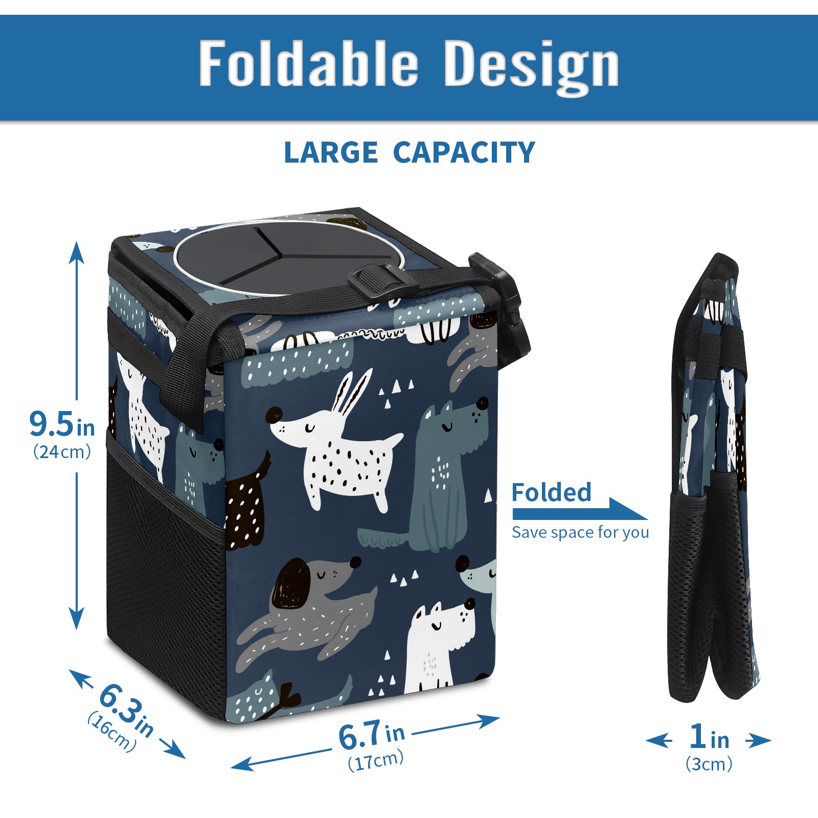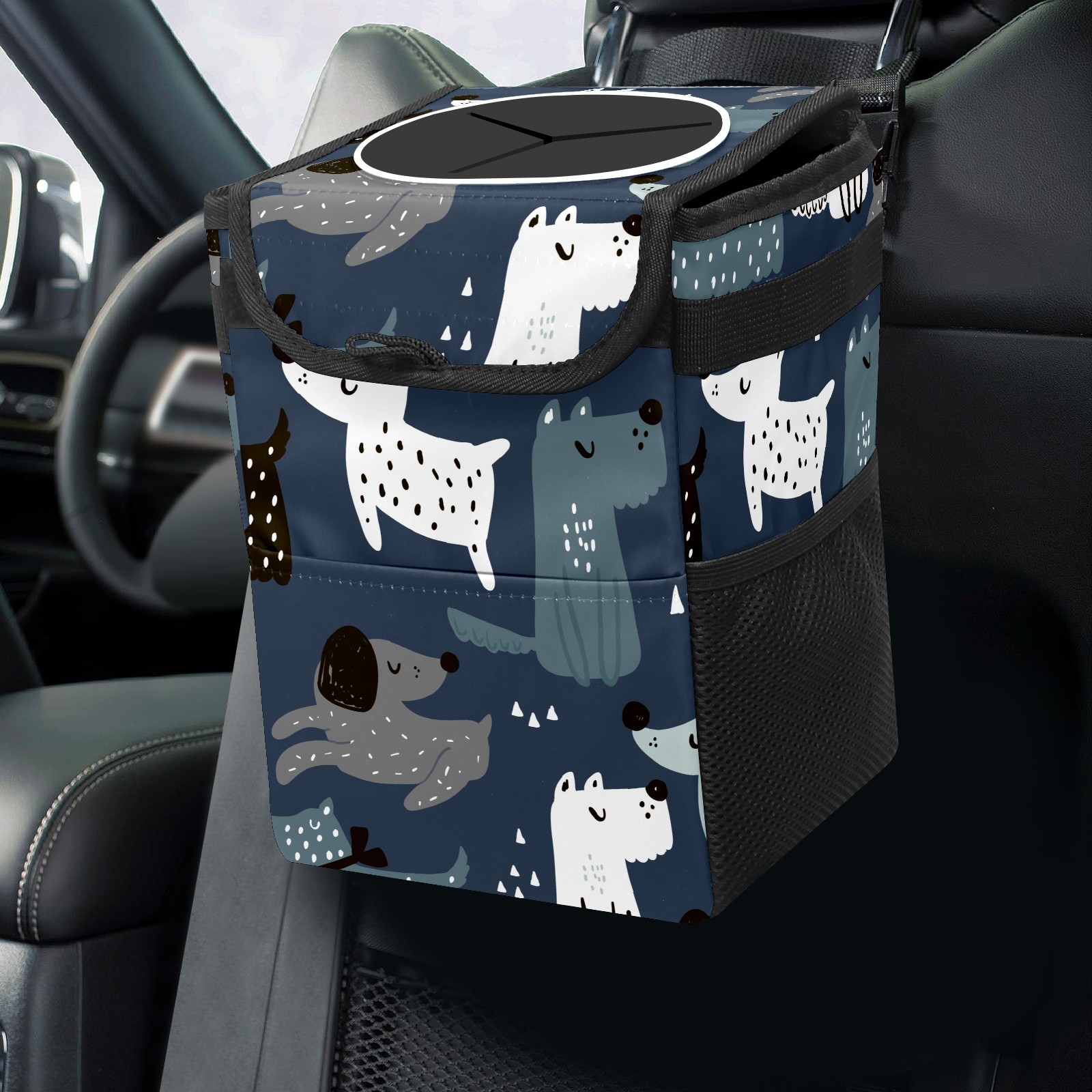 Car Garbage Can — Multi-functional, Lightweight Portable, Reusable Vehicle Trash Can, Waterproof with Sufficient Storage Capacity Dalmatians Dog Dachshund