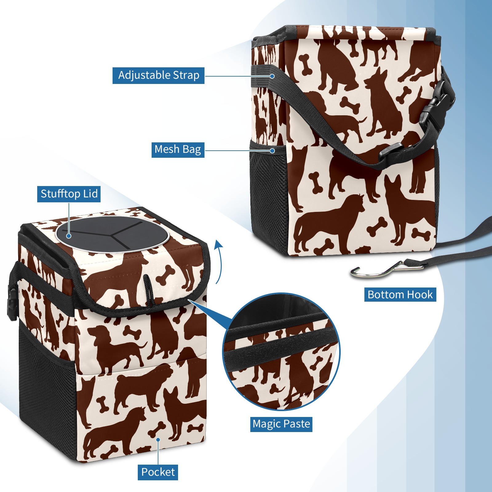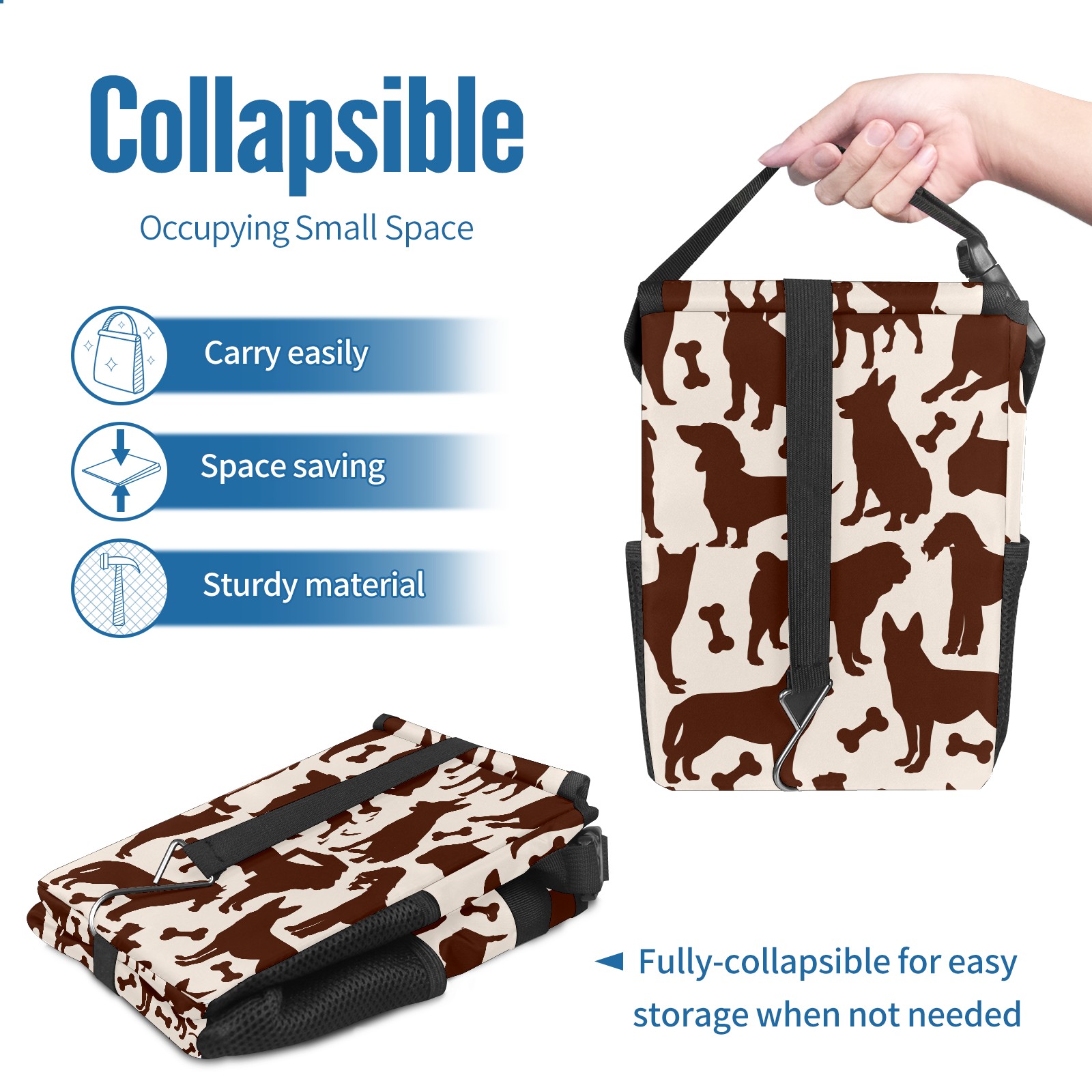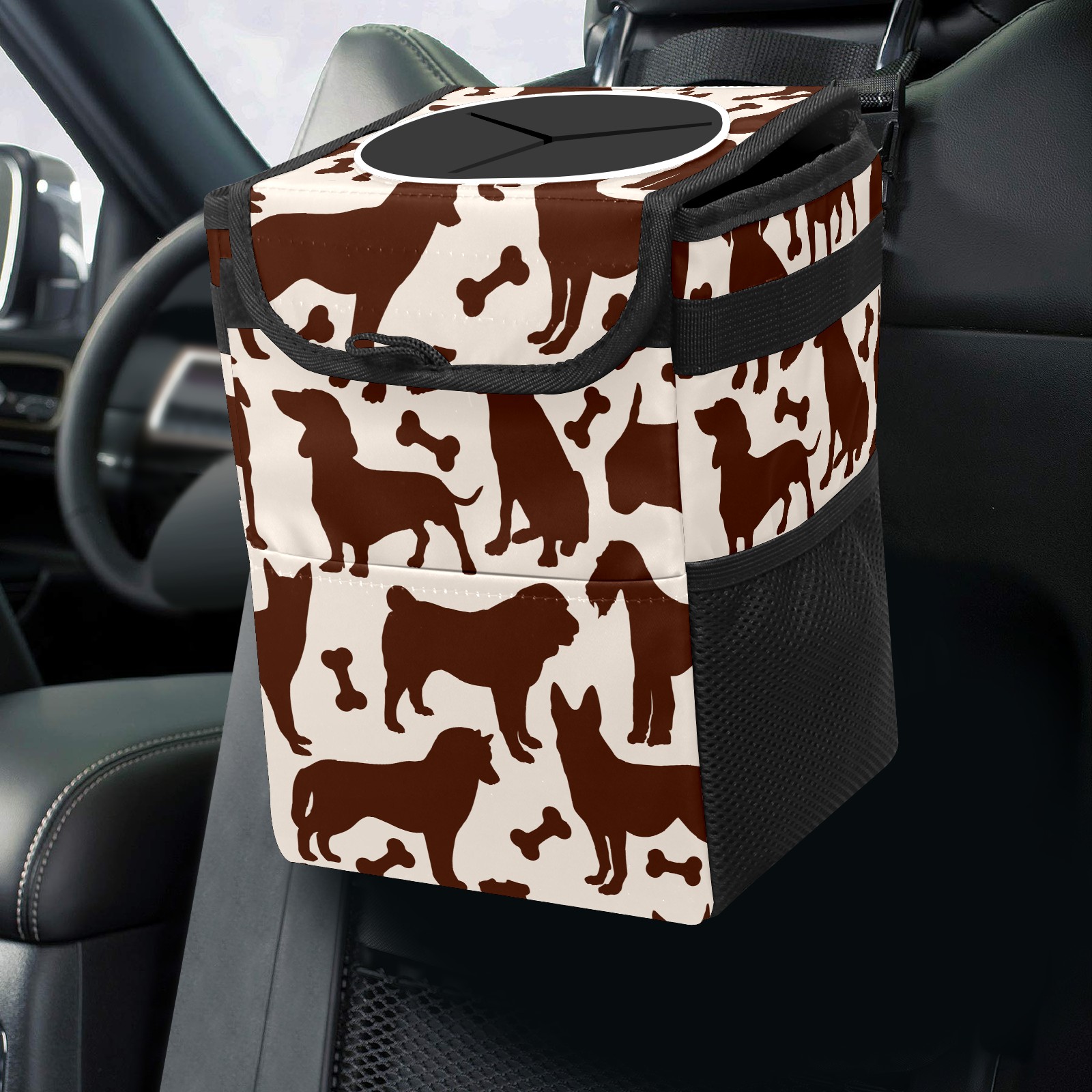 Car Garbage Can — Multi-functional, Lightweight Portable, Reusable Vehicle Trash Can, Waterproof with Sufficient Storage Capacity Dachshund Bones Pattern