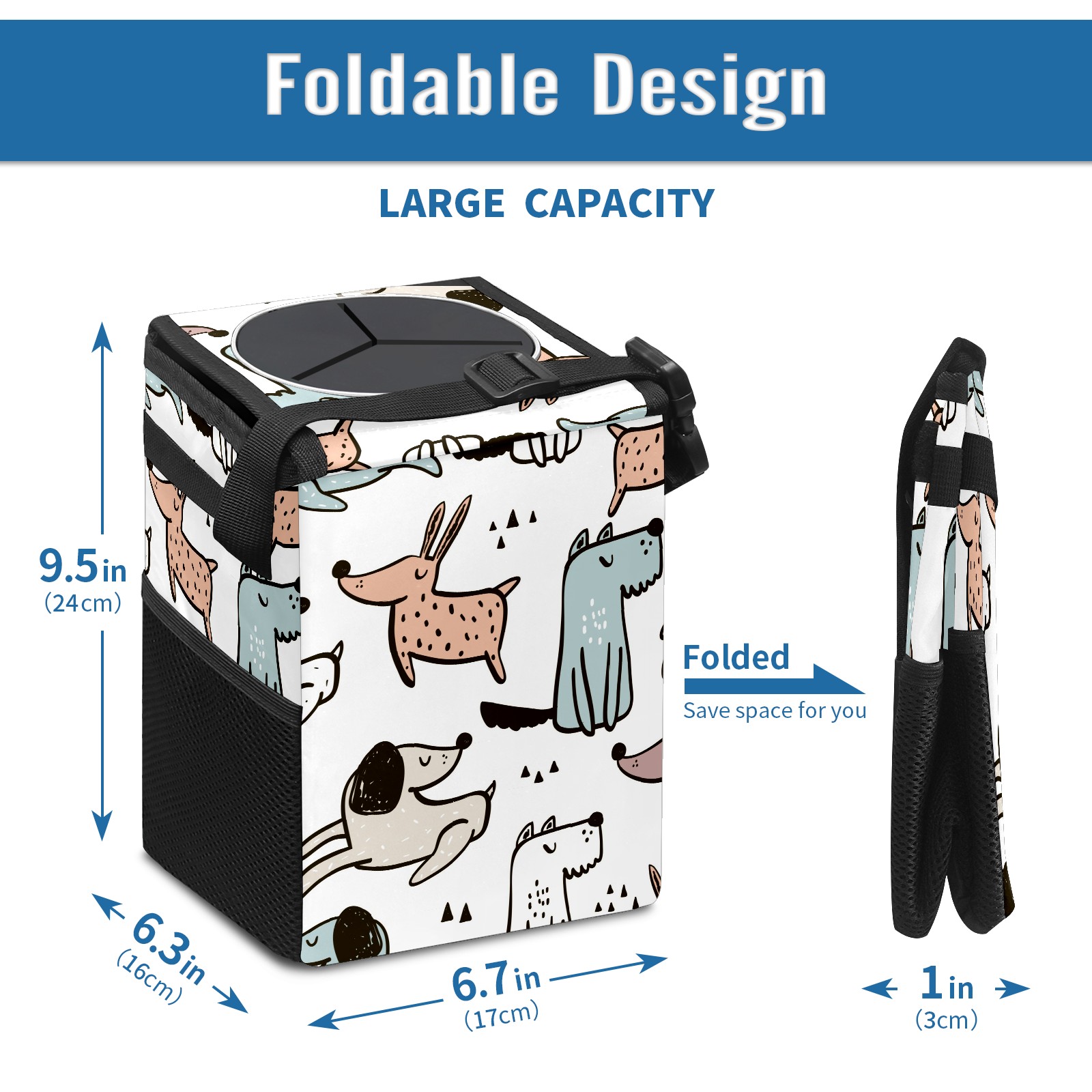 Car Garbage Can — Multi-functional, Lightweight Portable, Reusable Vehicle Trash Can, Waterproof with Sufficient Storage Capacity Cute Dog Dachshund