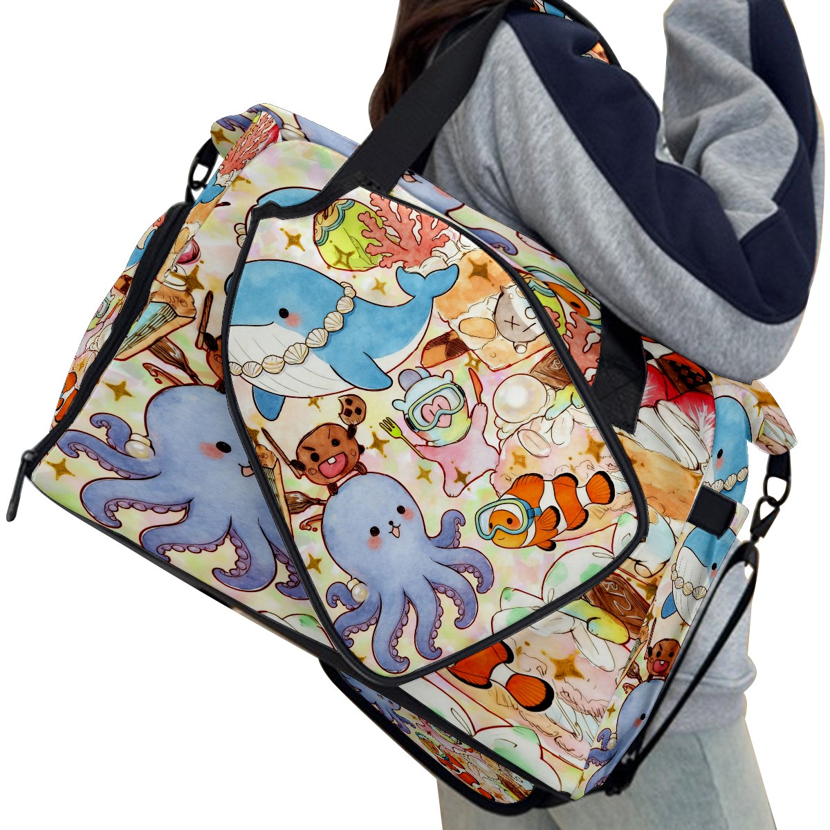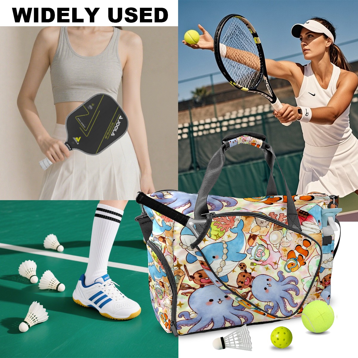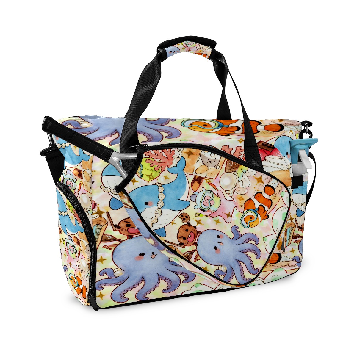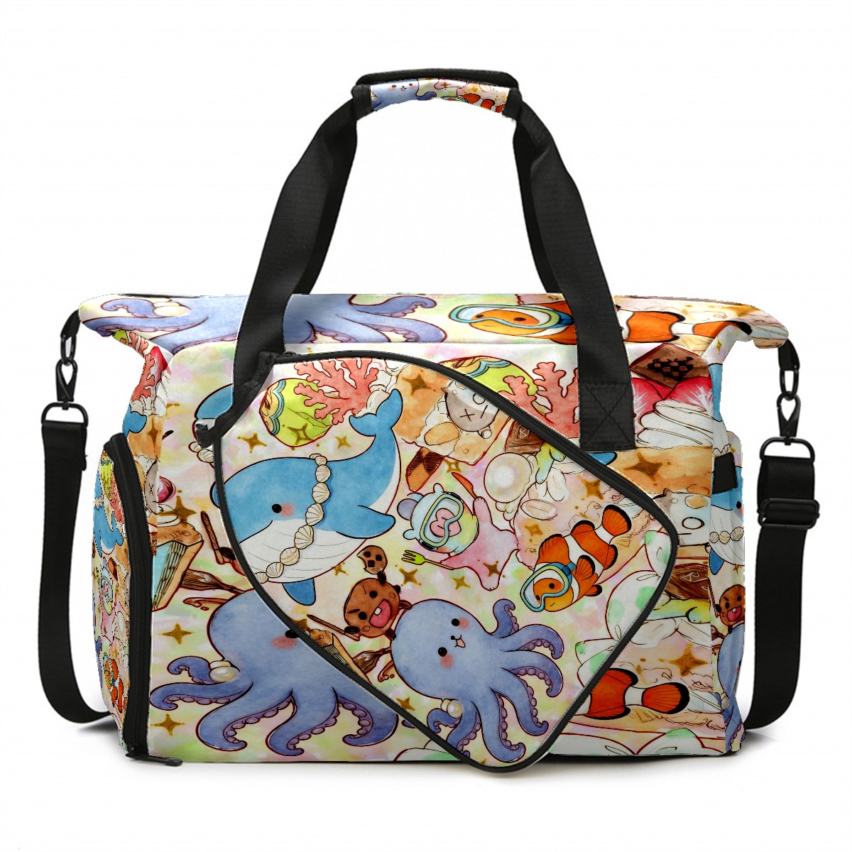 Pickleball Tote Bag Carryall for Paddles Balls and Accessories, Portable Lightweight Gear Bag for Players(Ocean Party)
