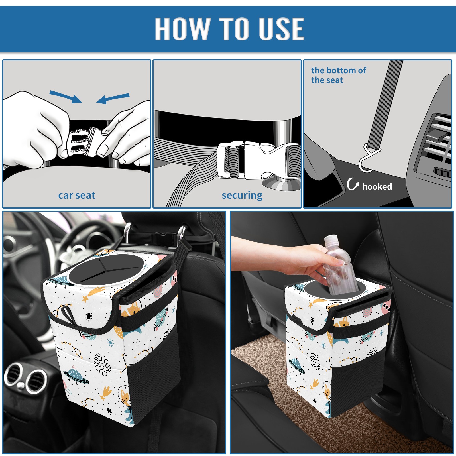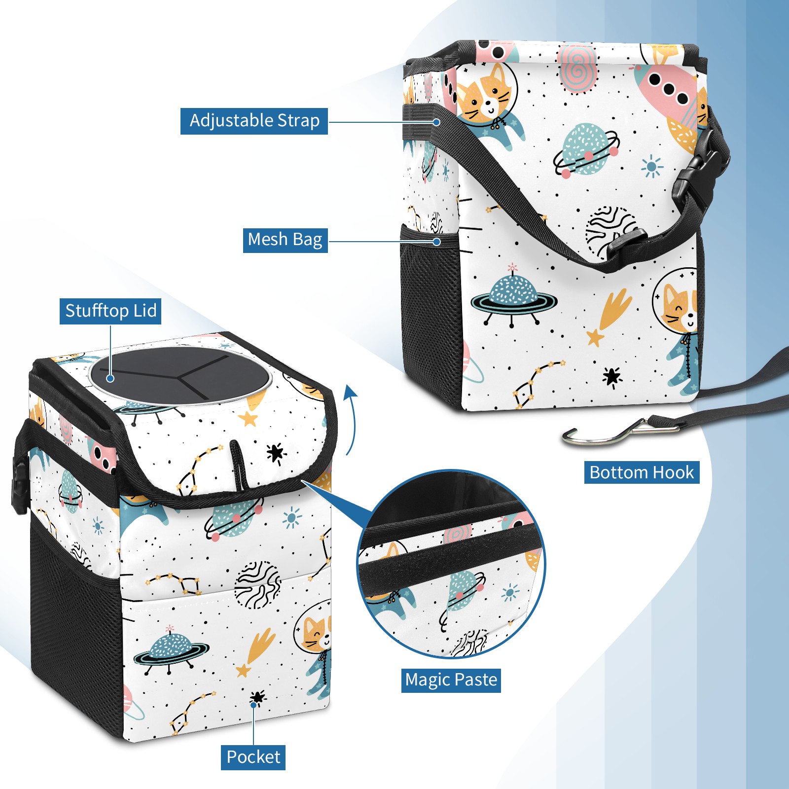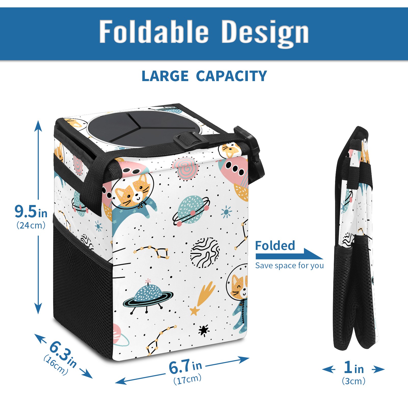 Car Garbage Can — Multi-functional, Lightweight Portable, Reusable Vehicle Trash Can, Waterproof with Sufficient Storage Capacity Cute Cat Space Starry Sky