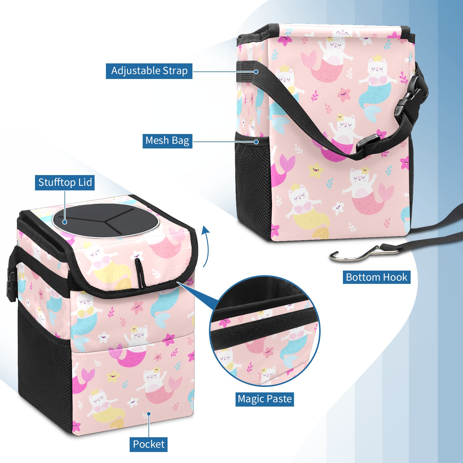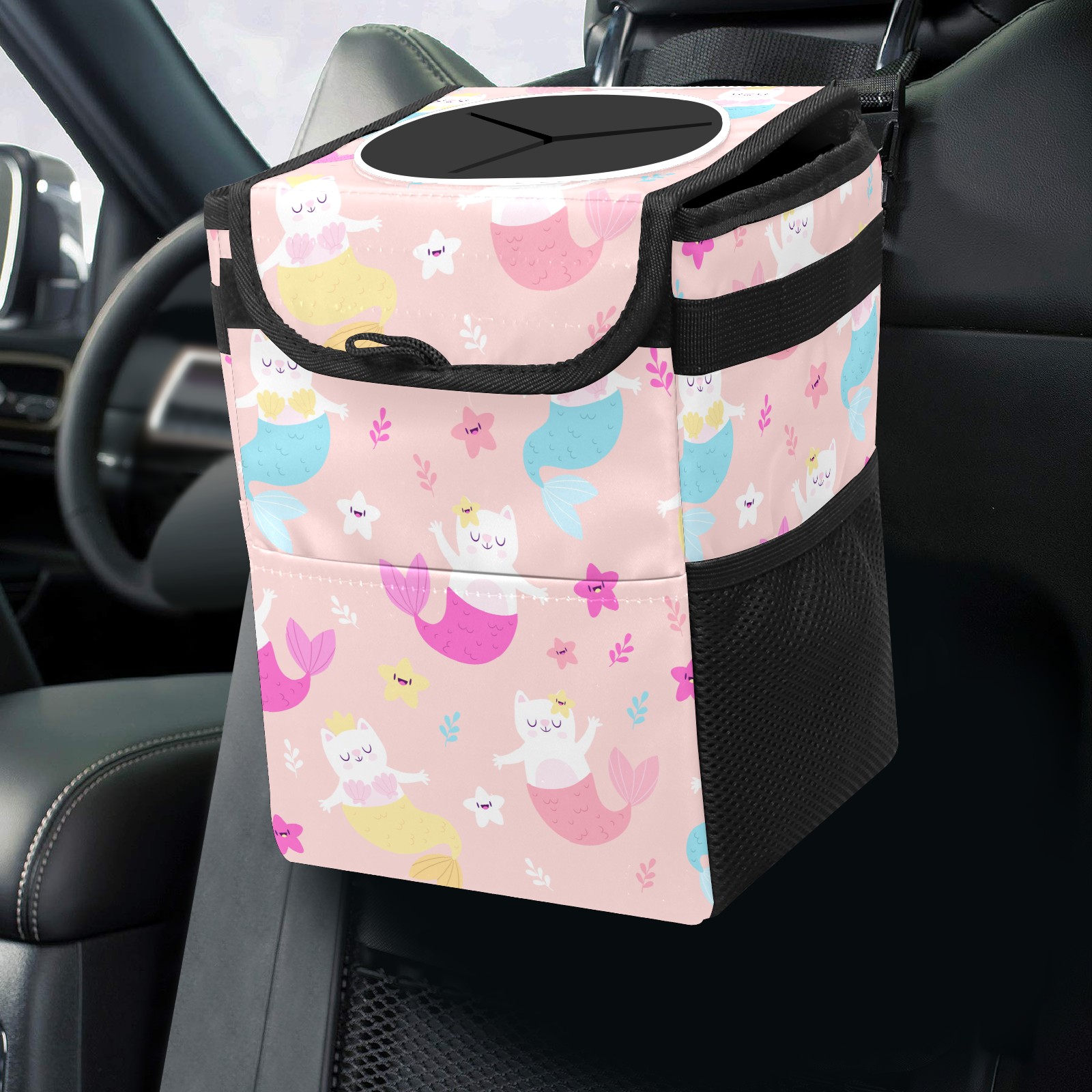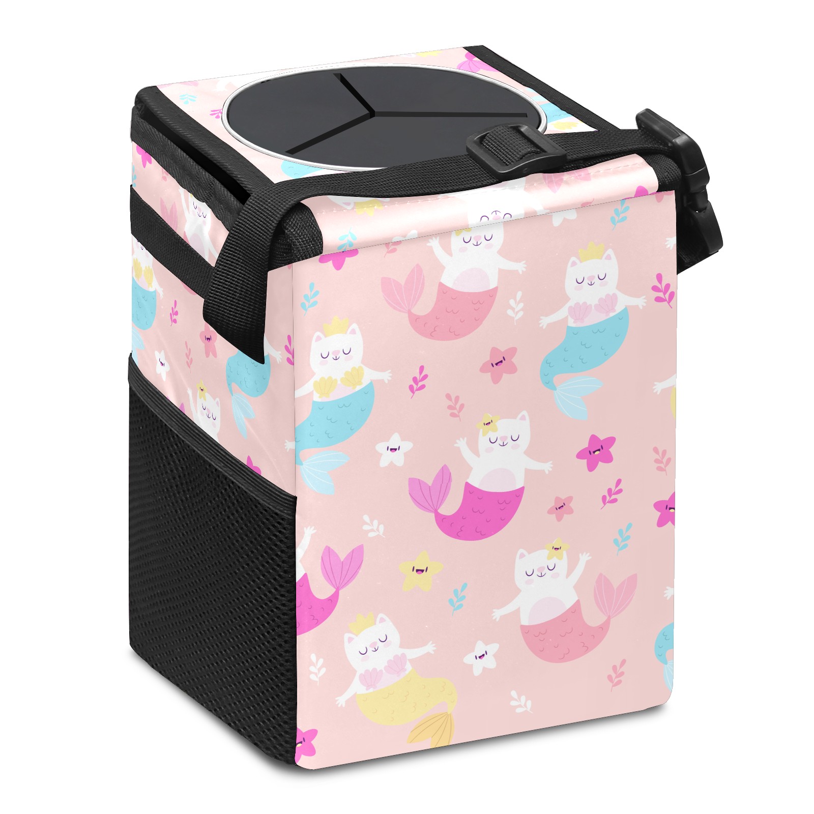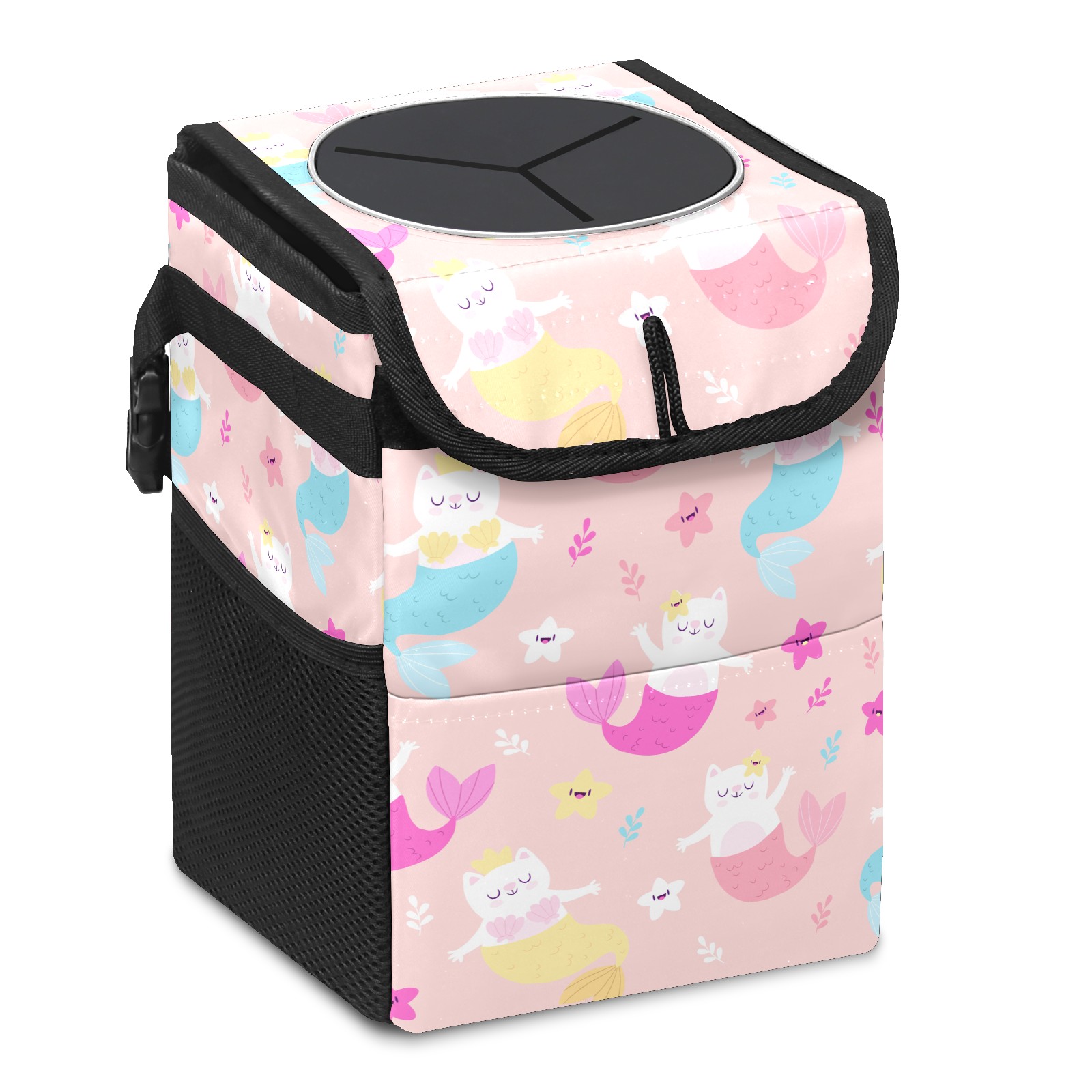 Car Garbage Can — Multi-functional, Lightweight Portable, Reusable Vehicle Trash Can, Waterproof with Sufficient Storage Capacity Cute Cartoon Cat Kitty Mermaid Scale Stars Pattern