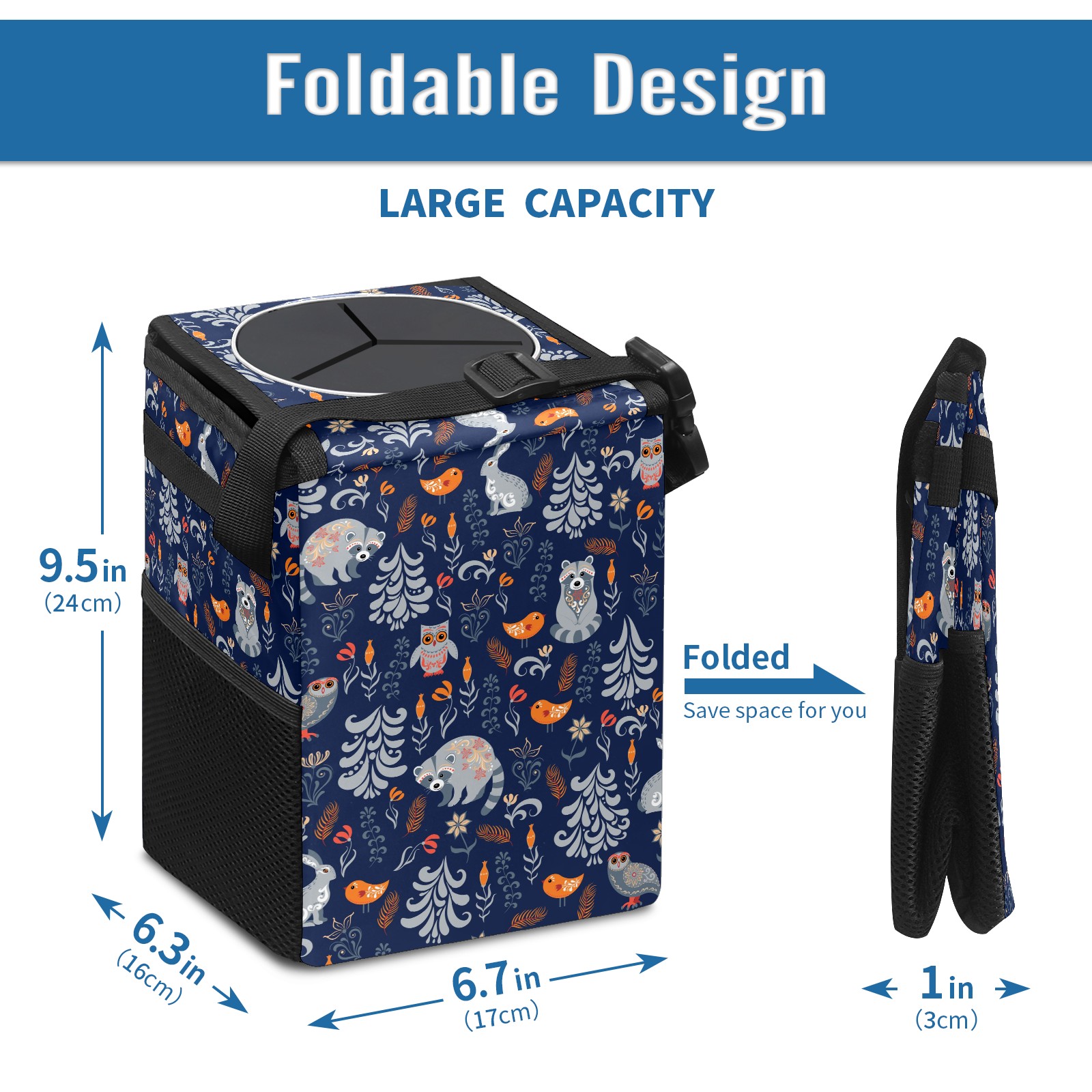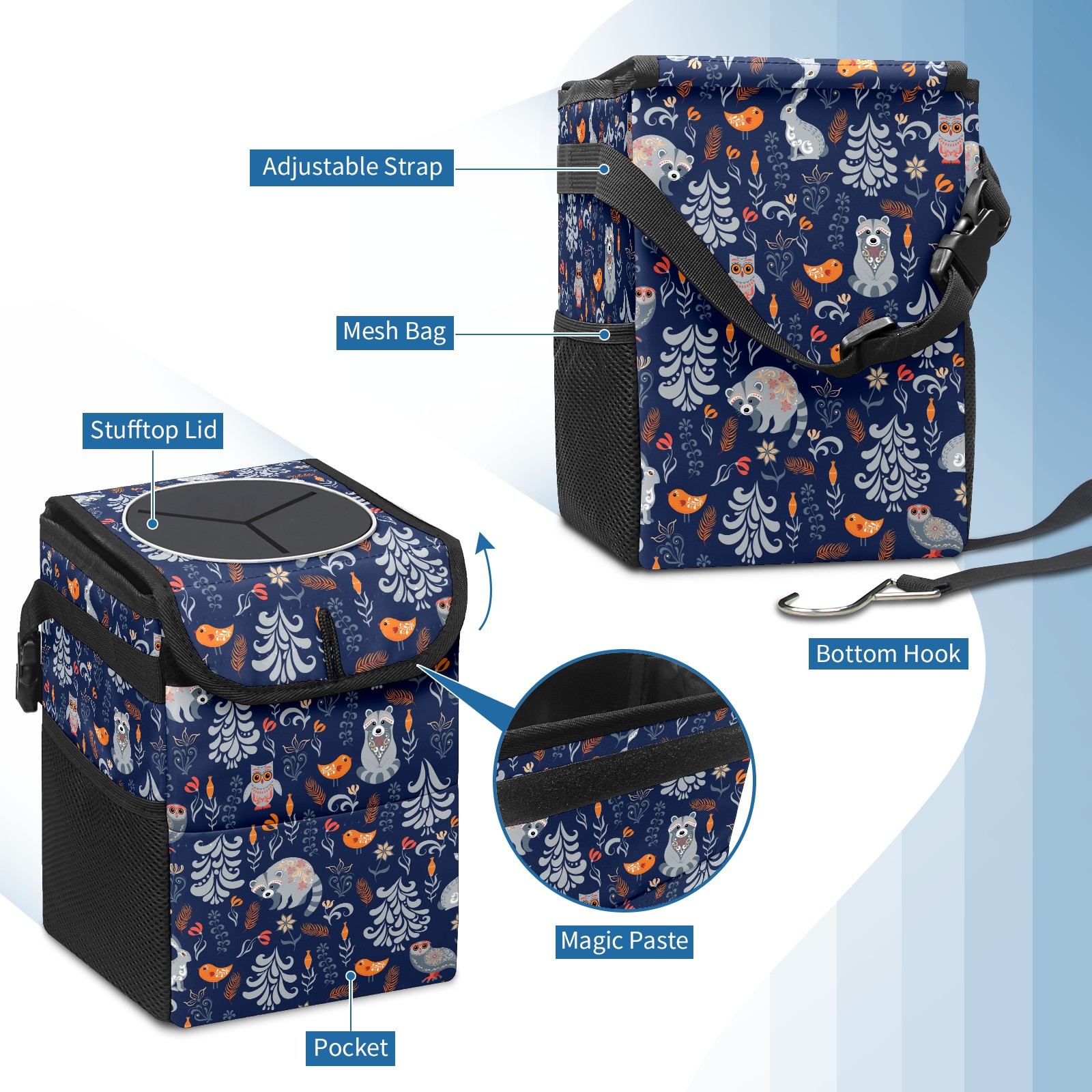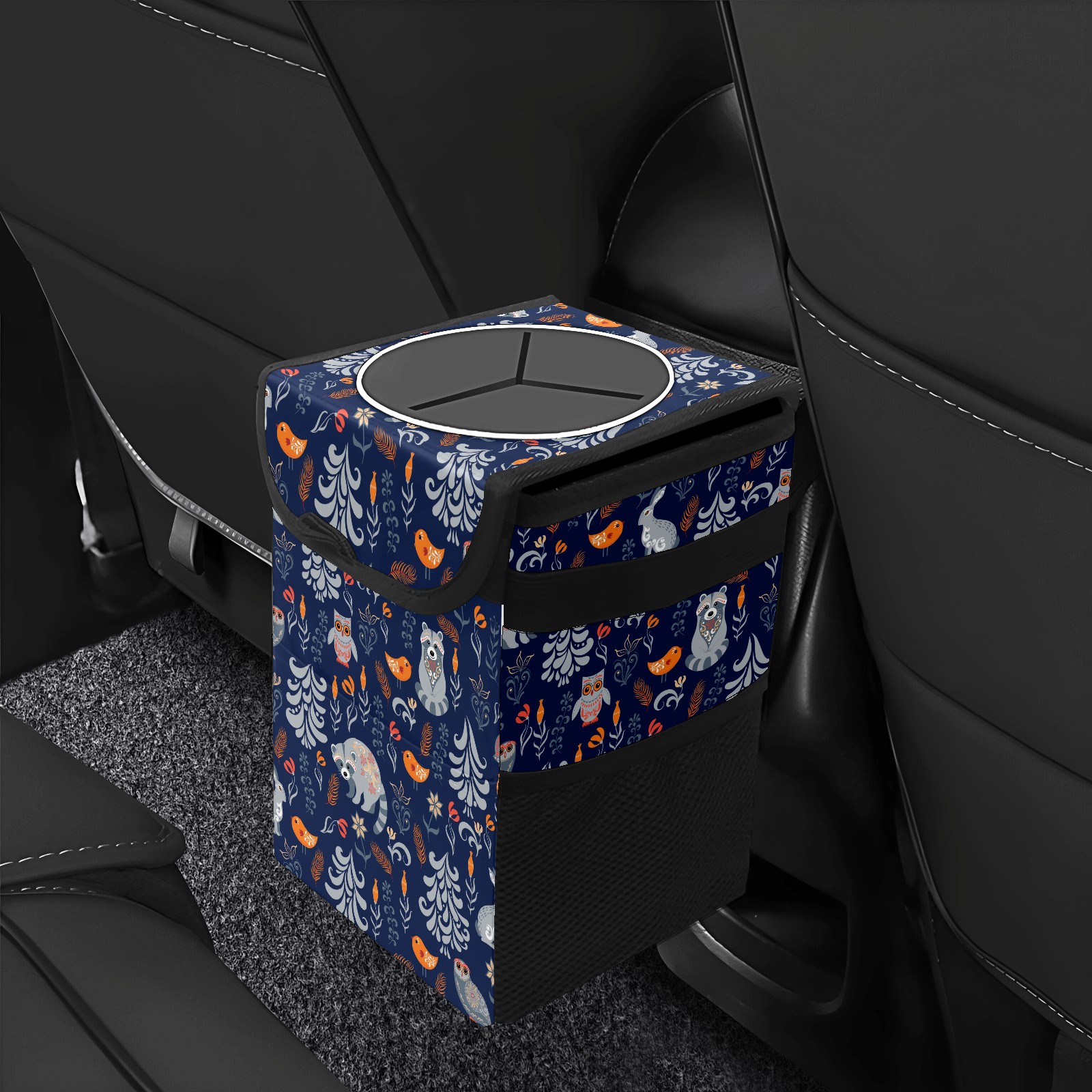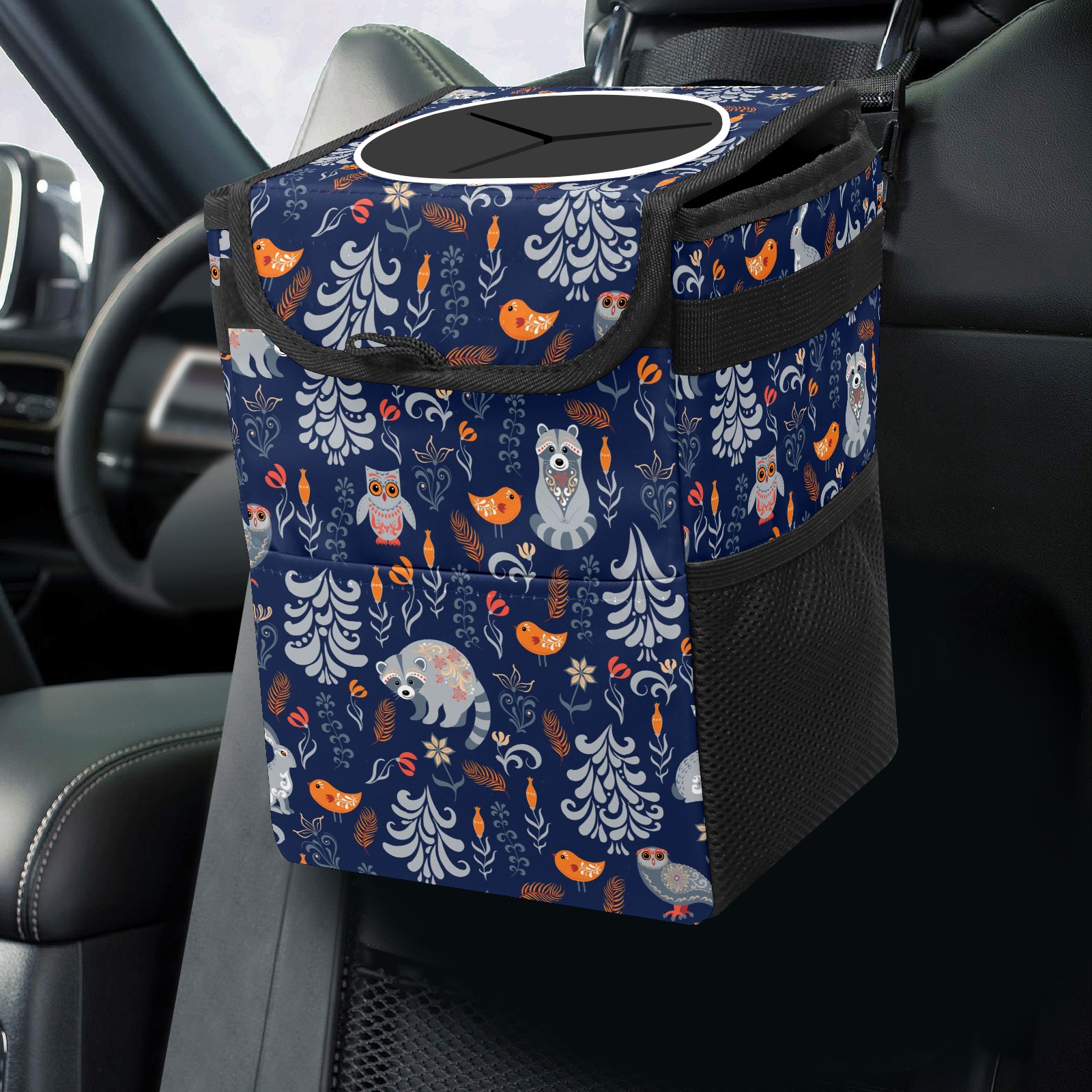 Car Garbage Can — Multi-functional, Lightweight Portable, Reusable Vehicle Trash Can, Waterproof with Sufficient Storage Capacity Cute Animal Raccoon Owl Rabbit