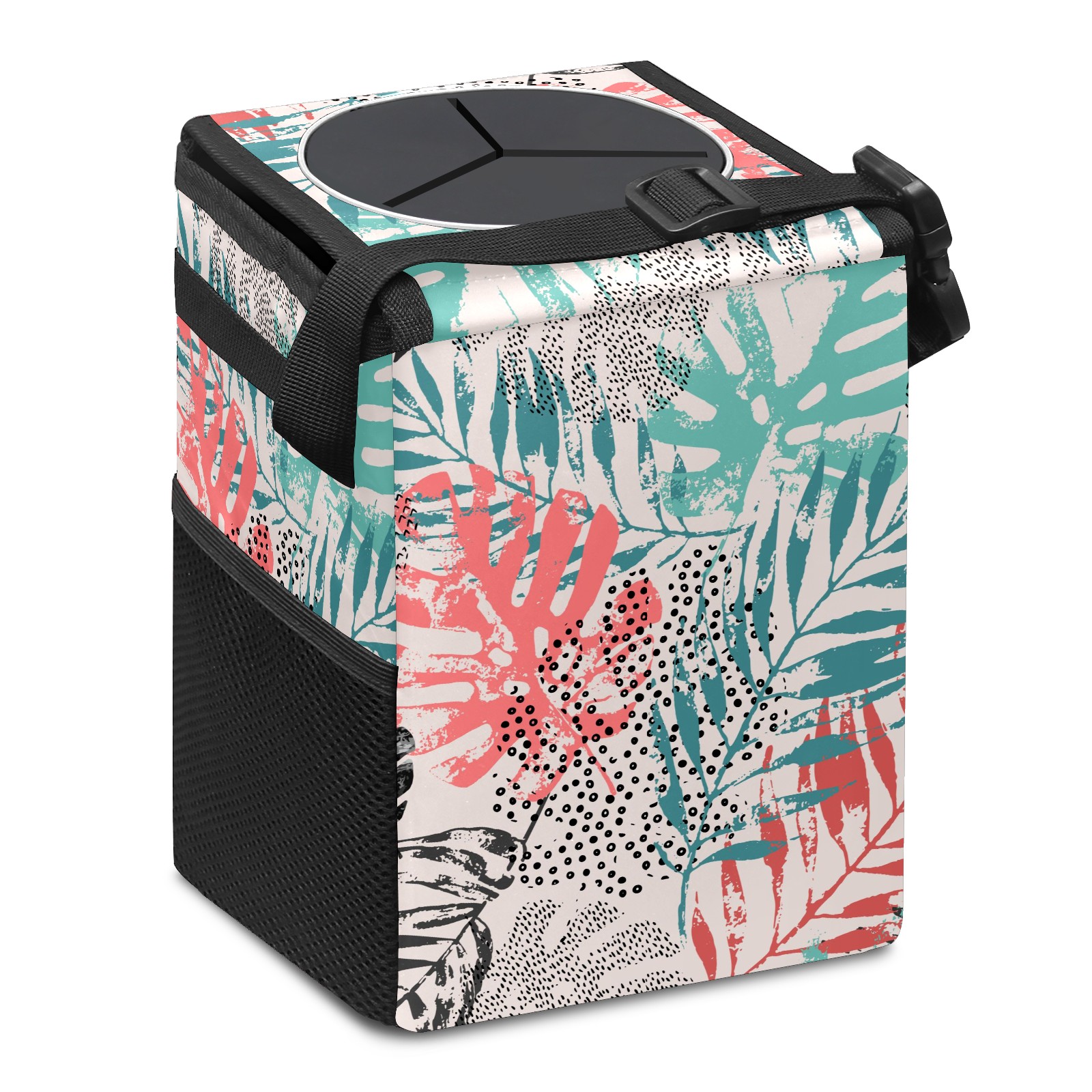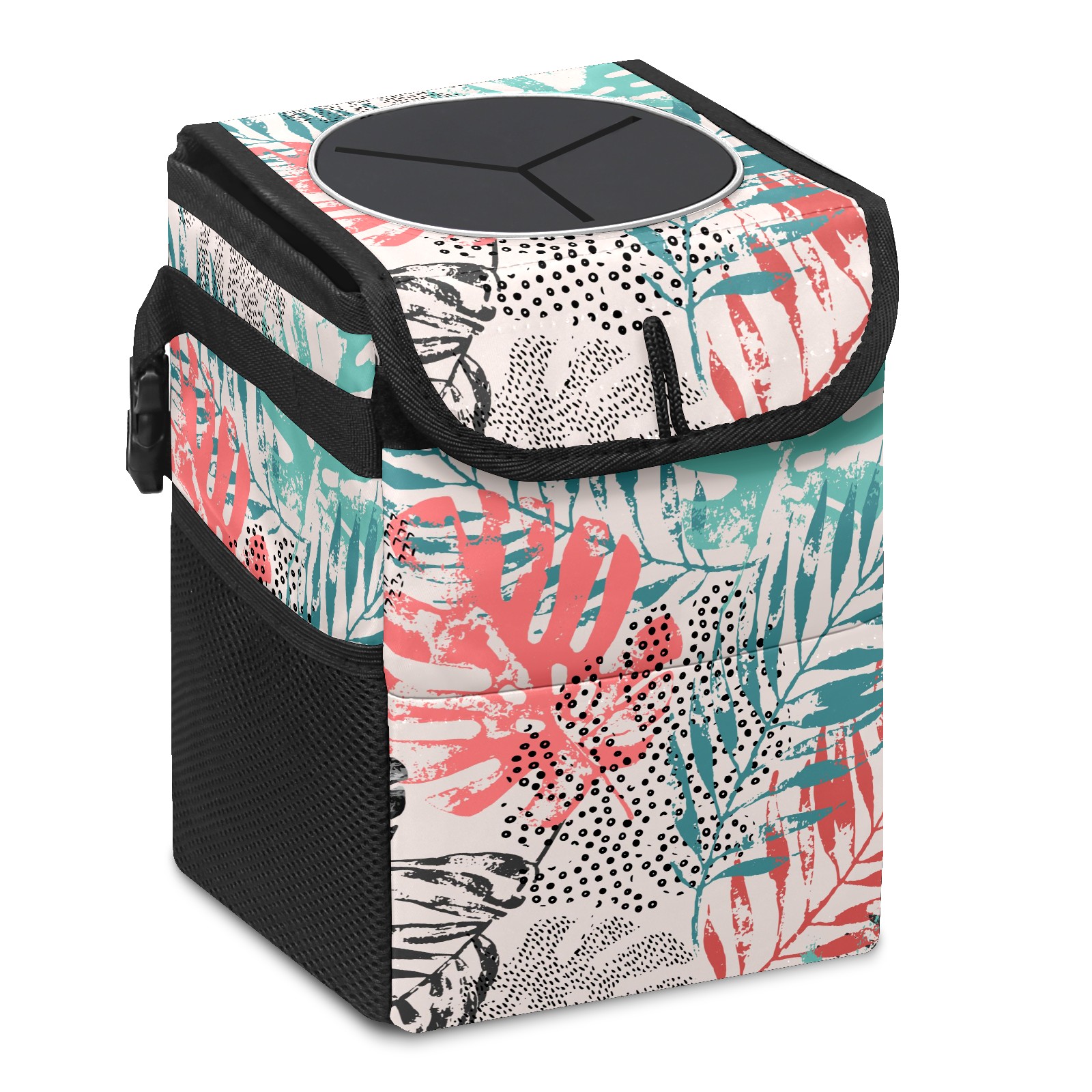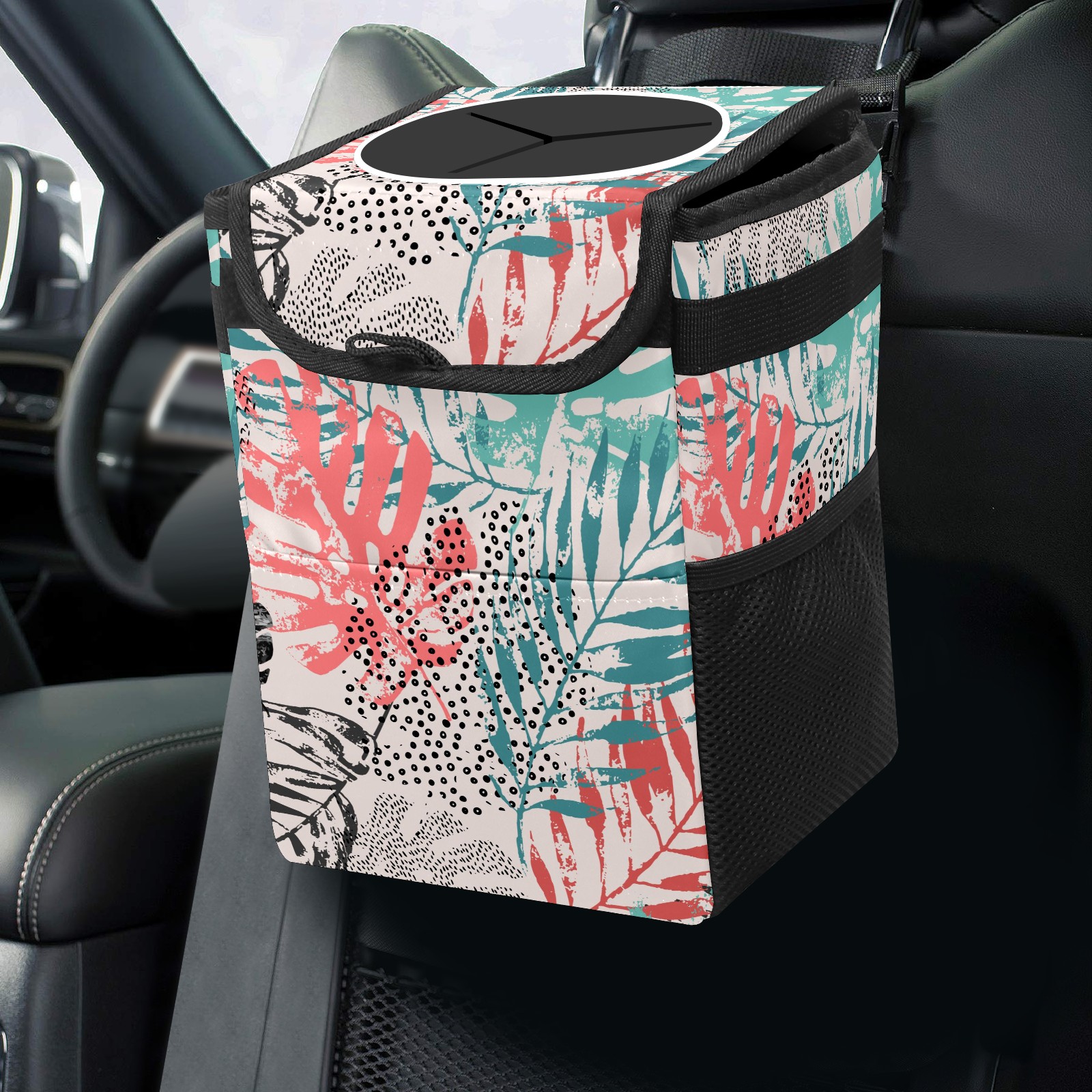Car Garbage Can — Multi-functional, Lightweight Portable, Reusable Vehicle Trash Can, Waterproof with Sufficient Storage Capacity Colorful Plam Leaves Pattern