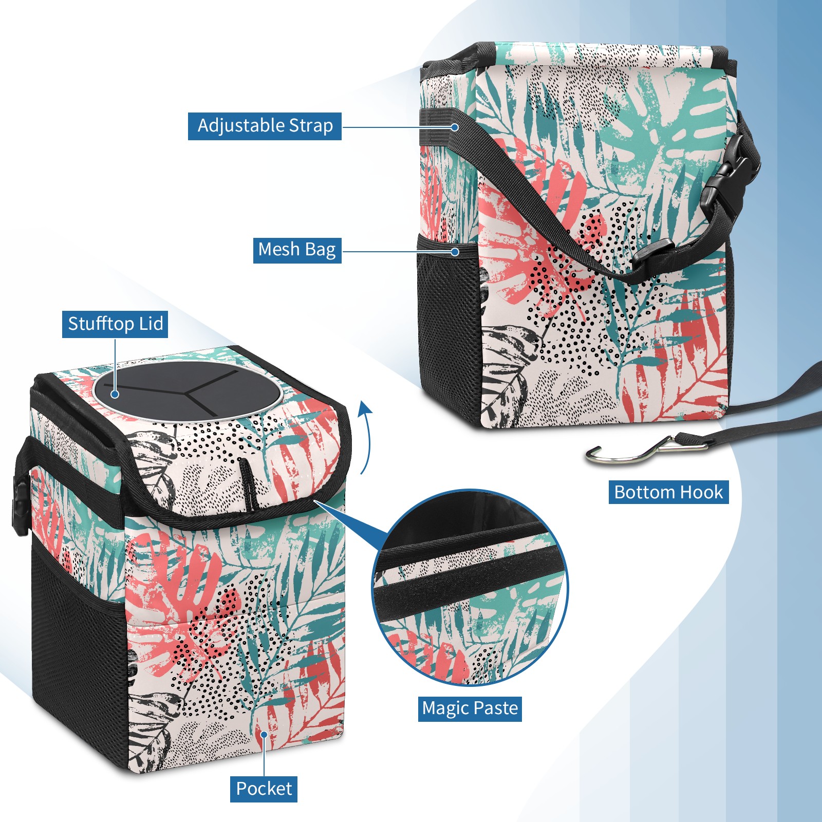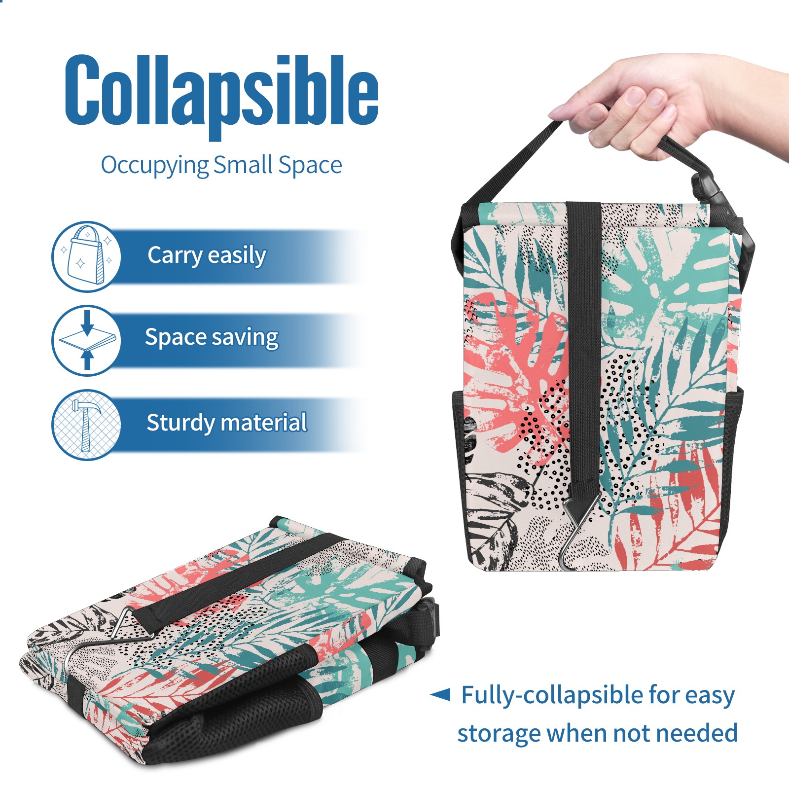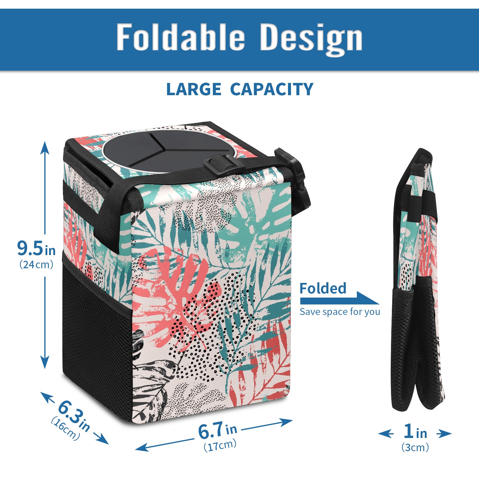Car Garbage Can — Multi-functional, Lightweight Portable, Reusable Vehicle Trash Can, Waterproof with Sufficient Storage Capacity Colorful Plam Leaves Pattern