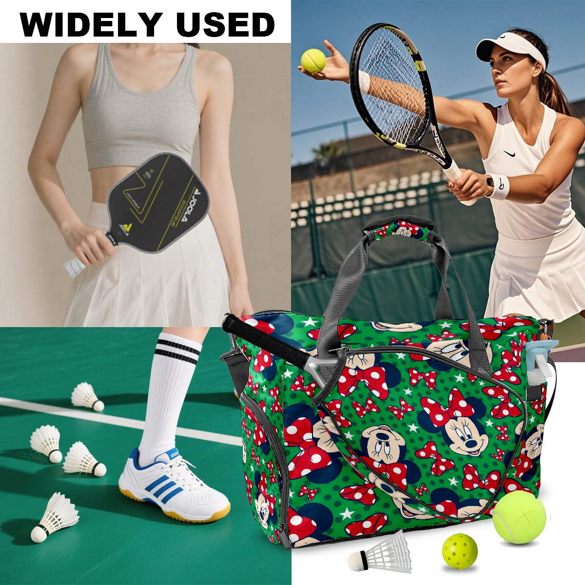 Pickleball Tote Bag Carryall for Paddles Balls and Accessories, Portable Lightweight Gear Bag for Players(Mickey Green)