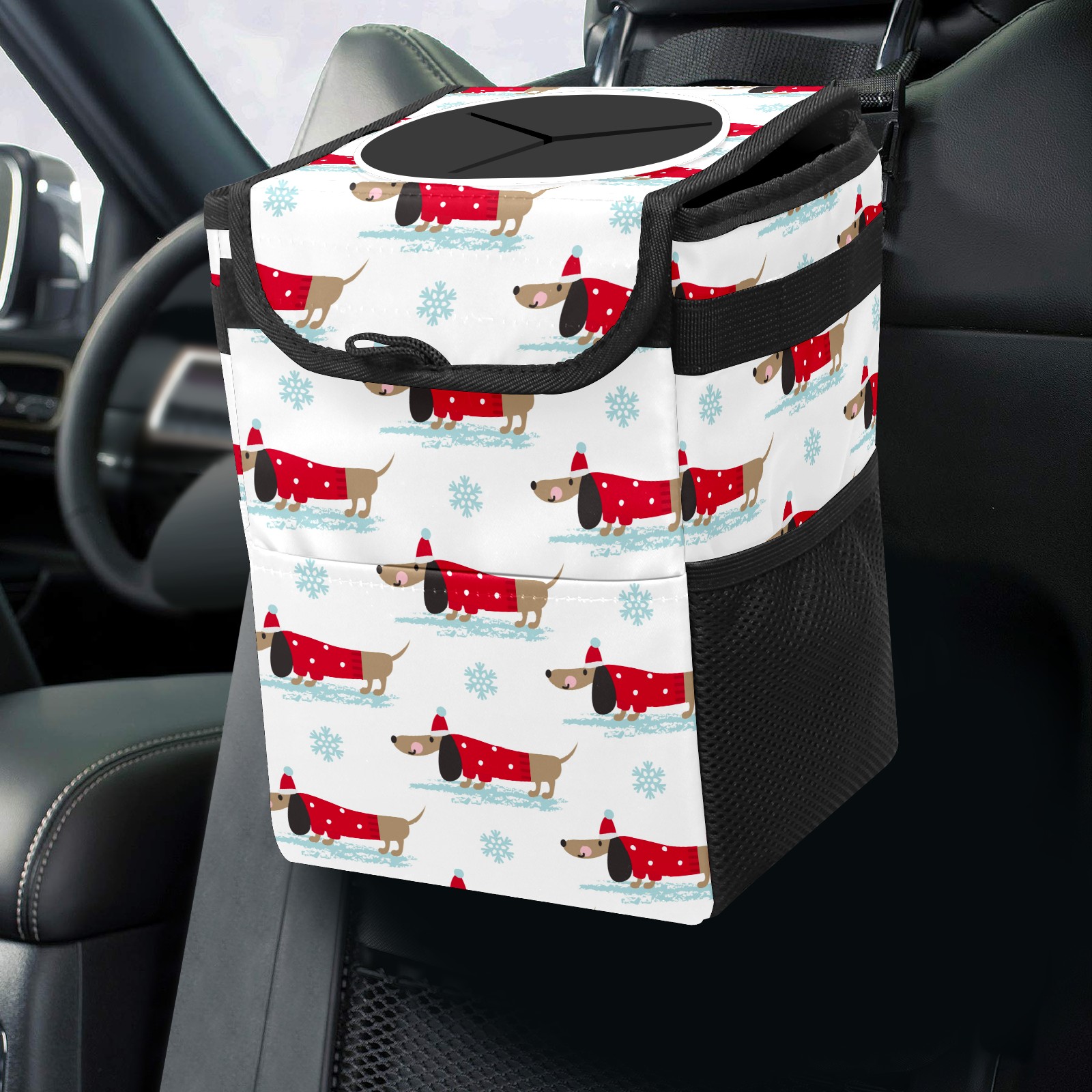 Car Garbage Can — Multi-functional, Lightweight Portable, Reusable Vehicle Trash Can, Waterproof with Sufficient Storage Capacity Cartoon Dog Dachshund Cute