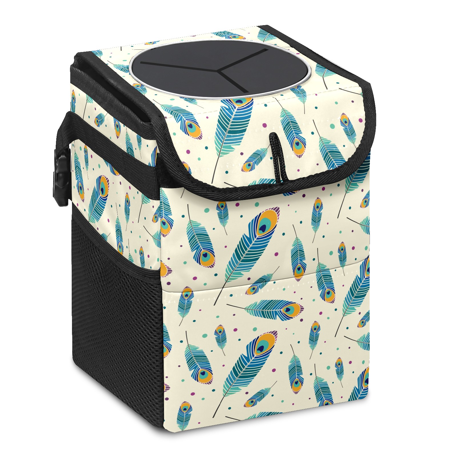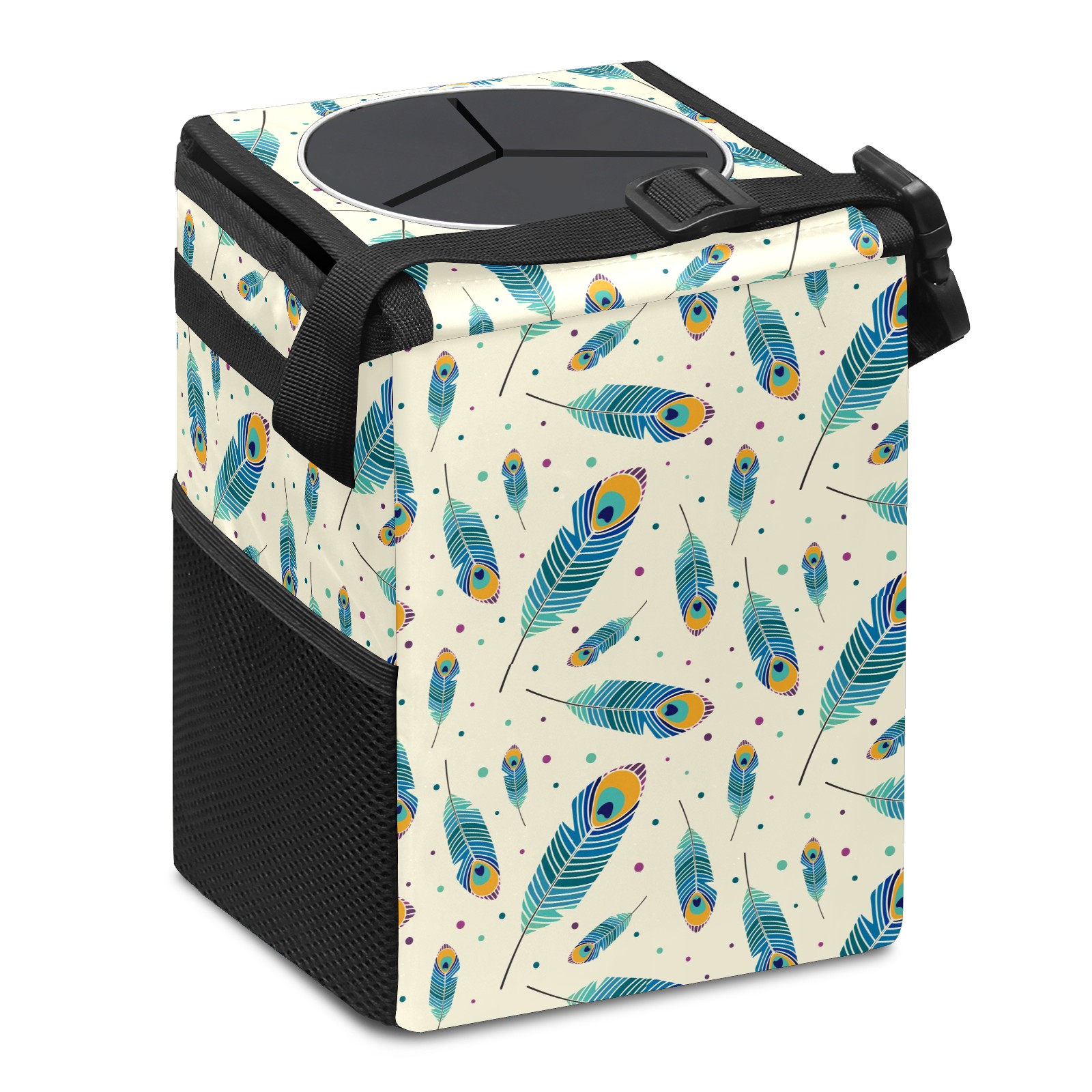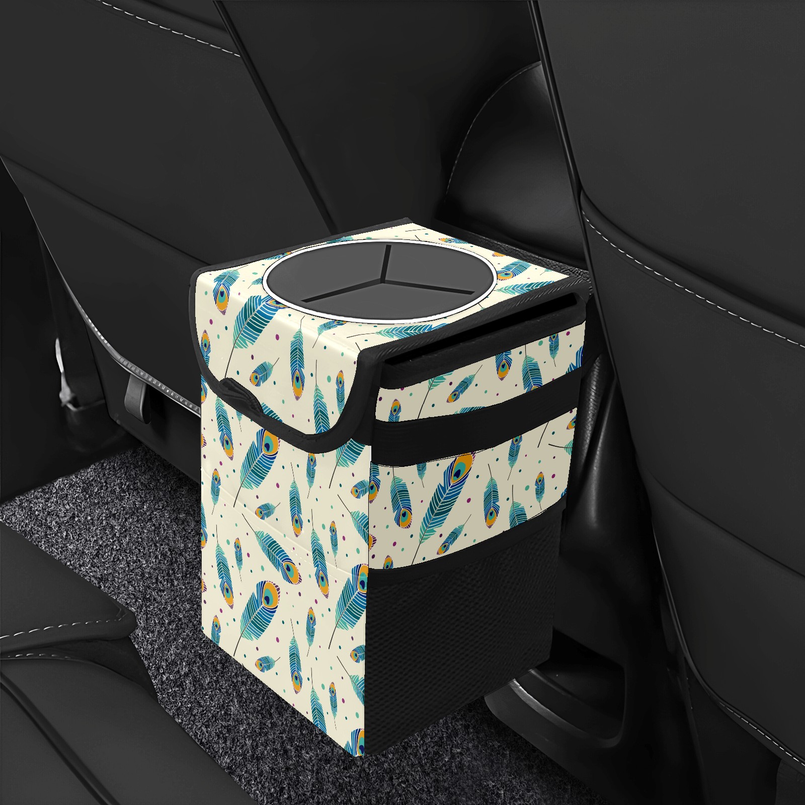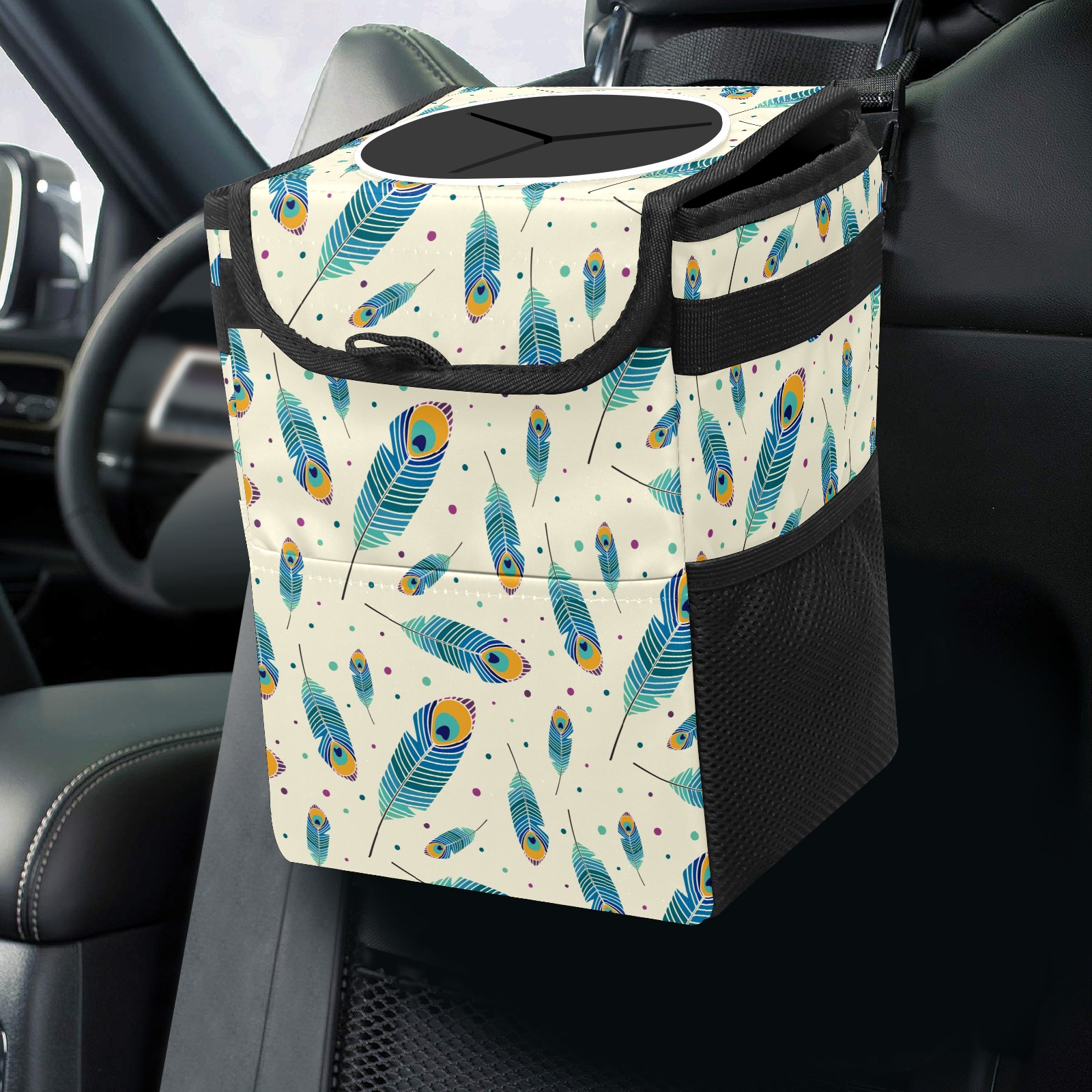 Car Garbage Can — Multi-functional, Lightweight Portable, Reusable Vehicle Trash Can, Waterproof with Sufficient Storage Capacity Blue Peacock Feathers Pattern