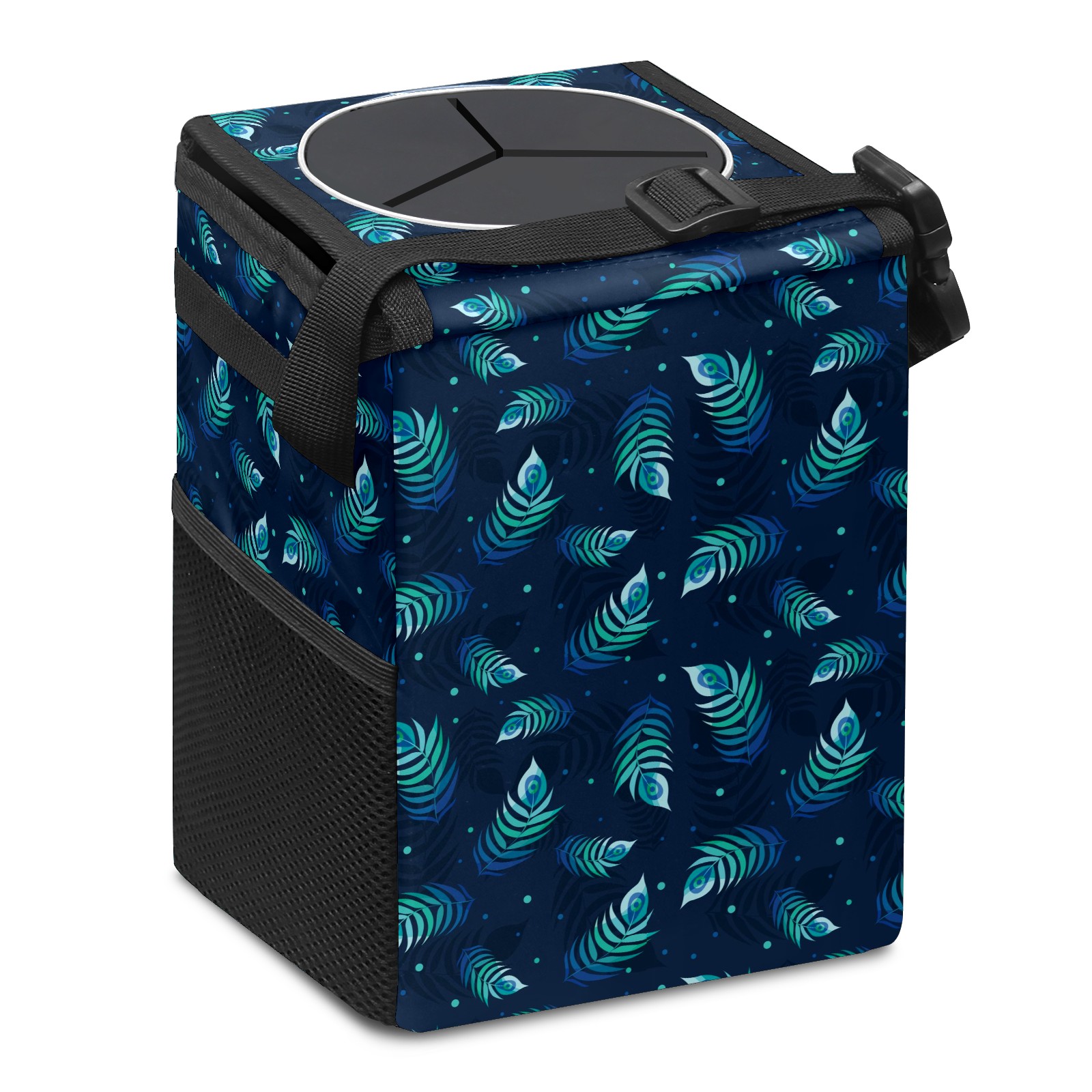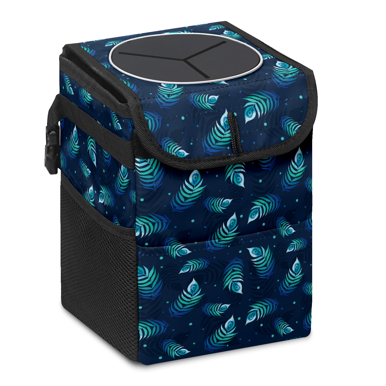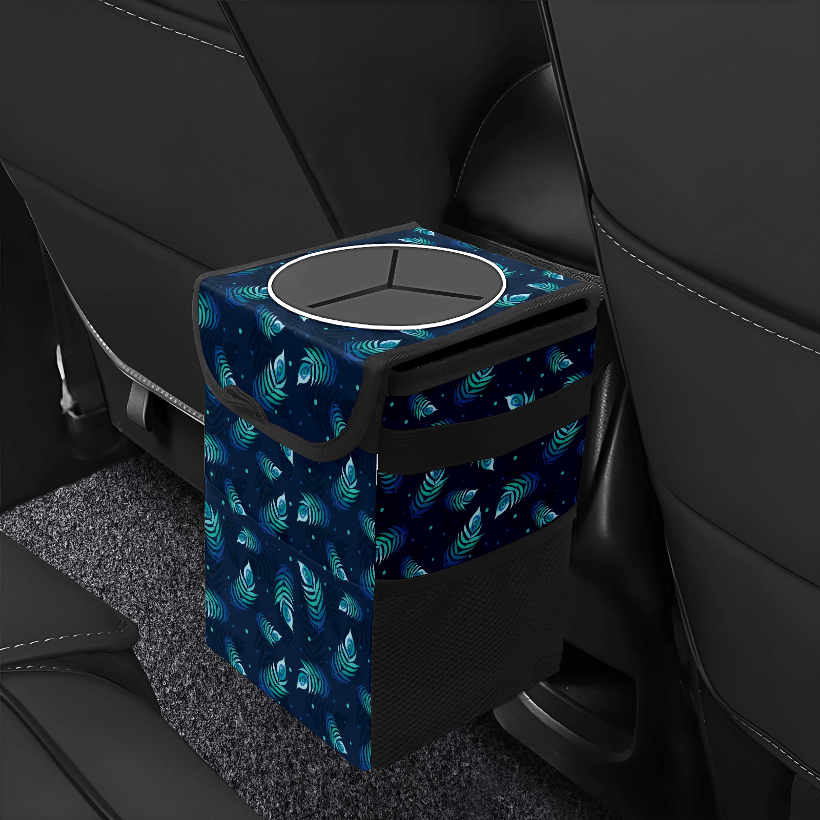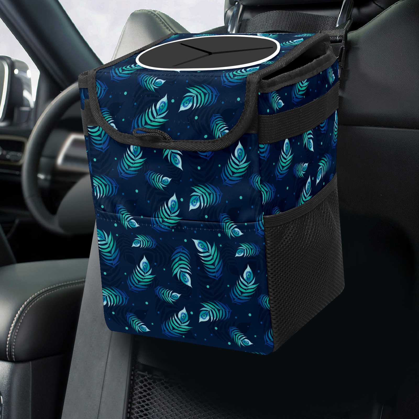 Car Garbage Can — Multi-functional, Lightweight Portable, Reusable Vehicle Trash Can, Waterproof with Sufficient Storage Capacity Beautiful Peacock Feather Pattern