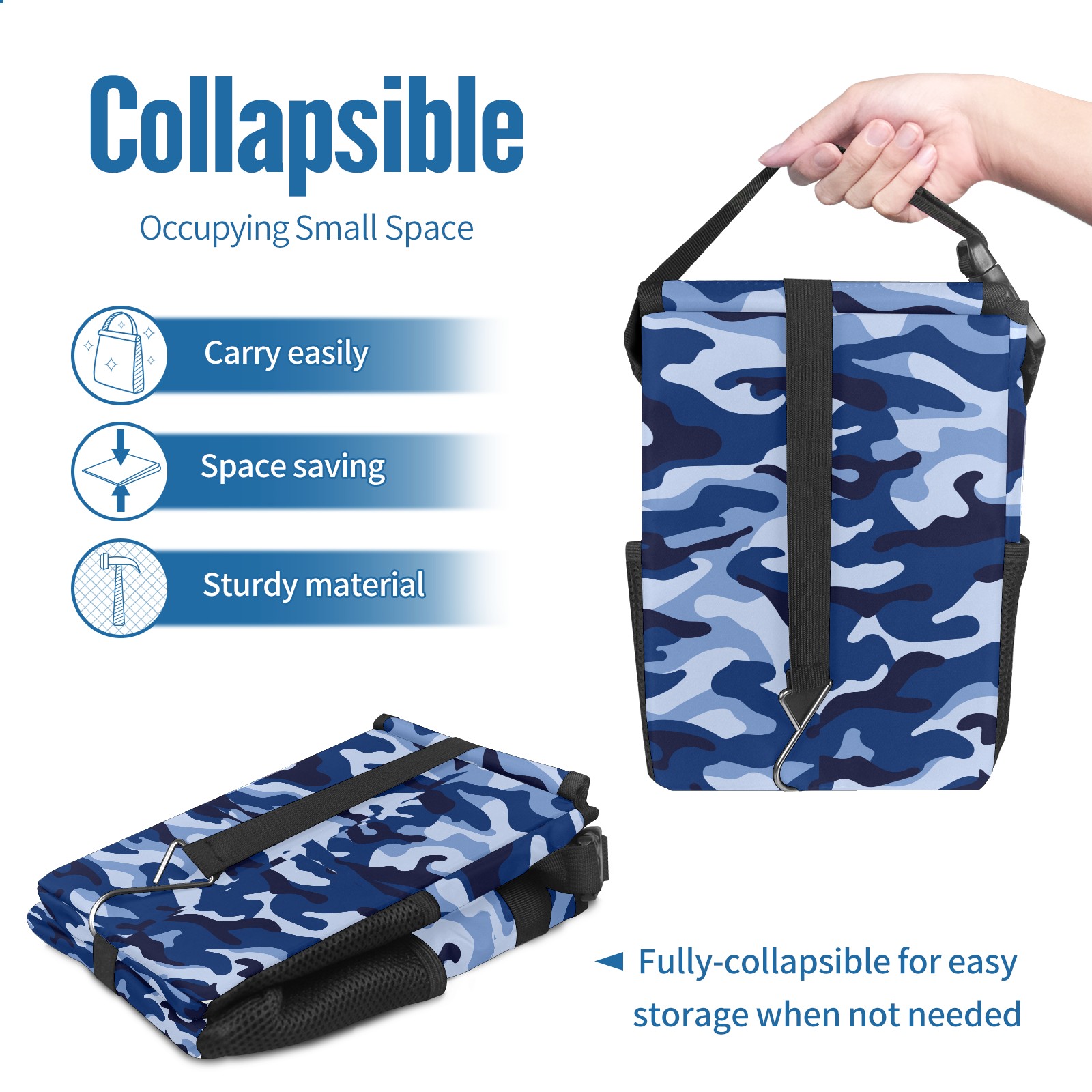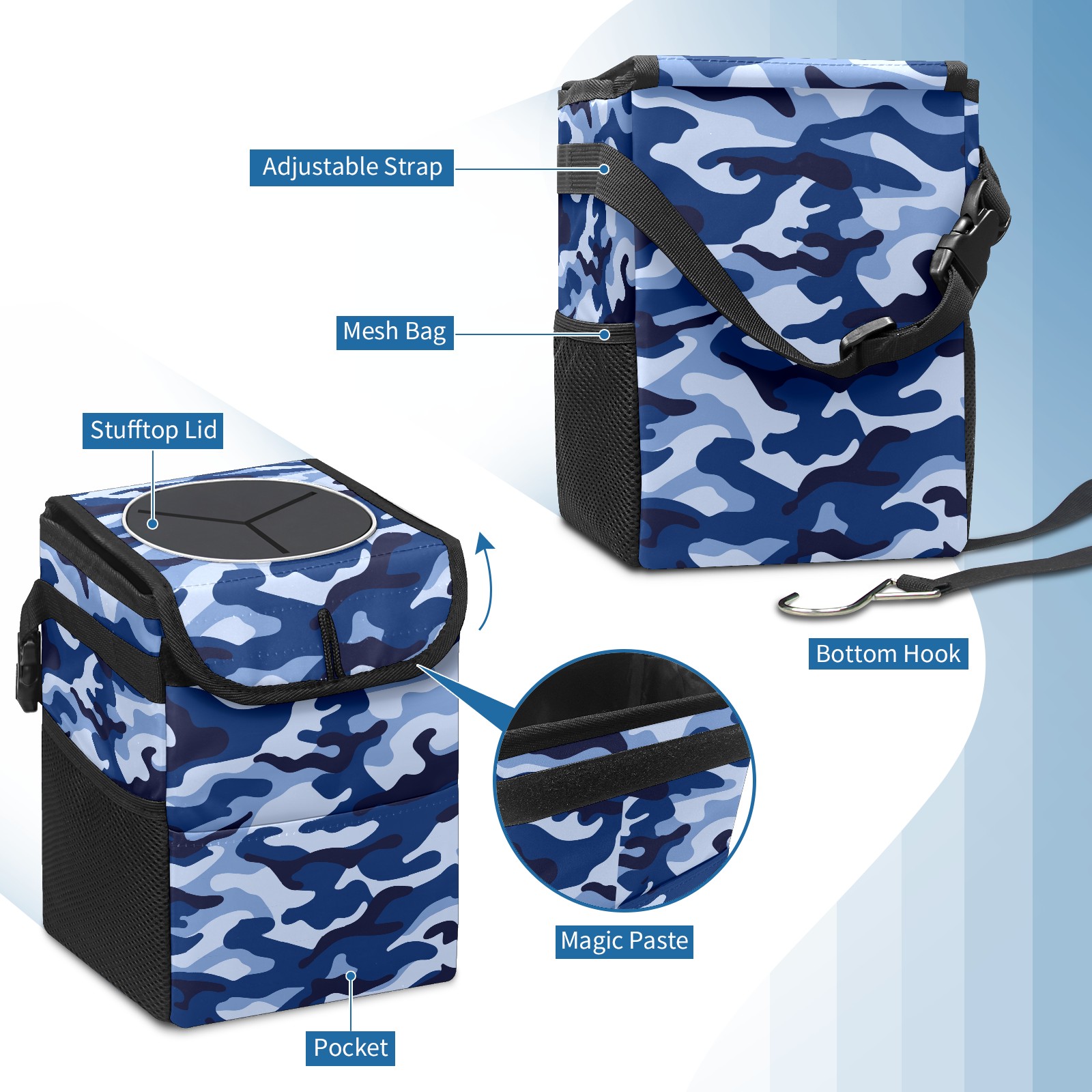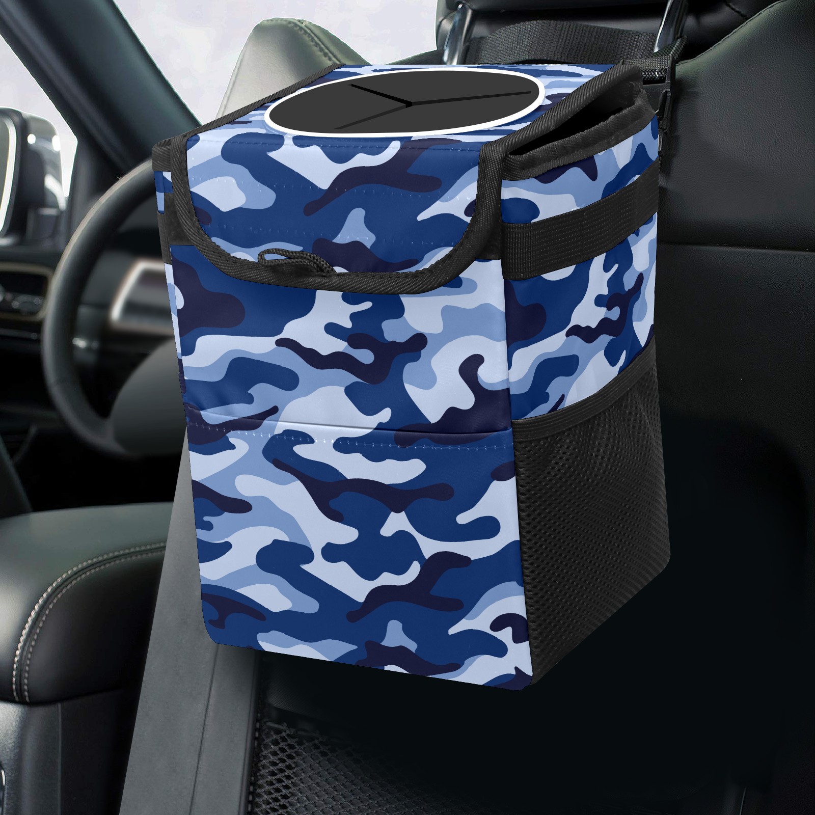 Car Garbage Can — Multi-functional, Lightweight Portable, Reusable Vehicle Trash Can, Waterproof with Sufficient Storage Capacity Army Blue Camouflage