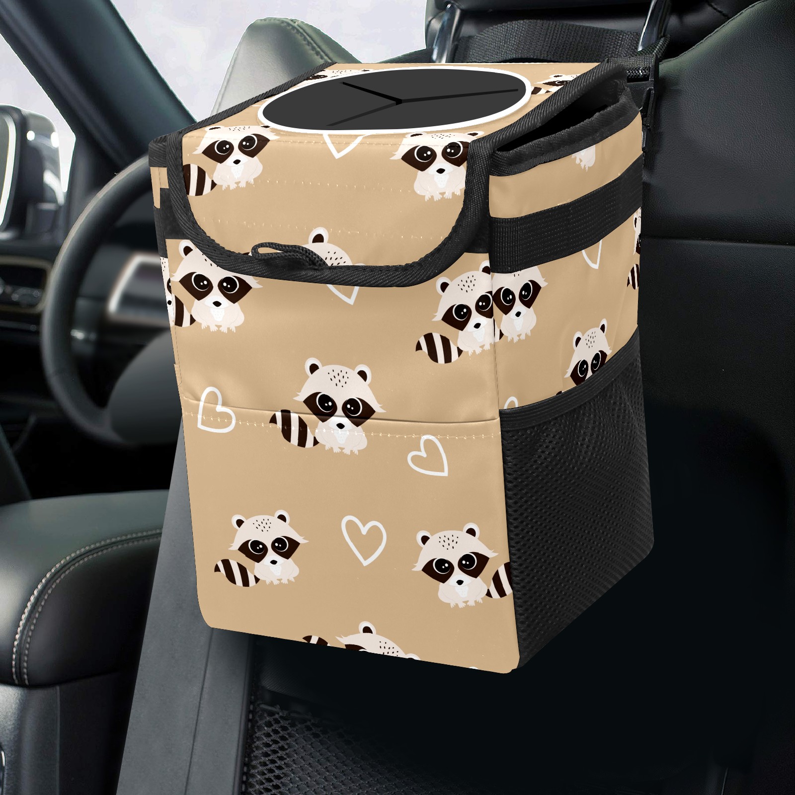 Car Garbage Can — Multi-functional, Lightweight Portable, Reusable Vehicle Trash Can, Waterproof with Sufficient Storage Capacity Animal Cute Raccoon