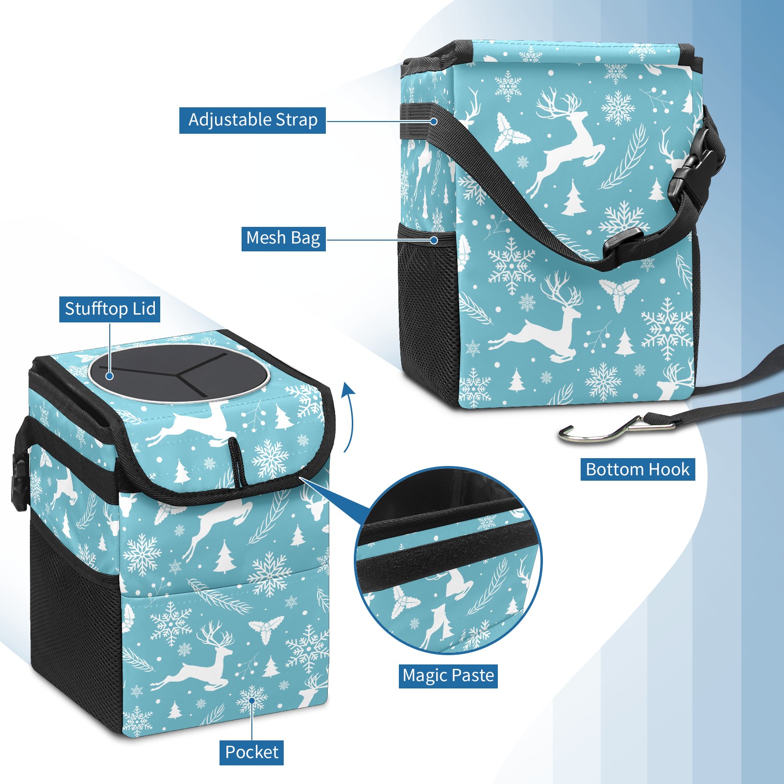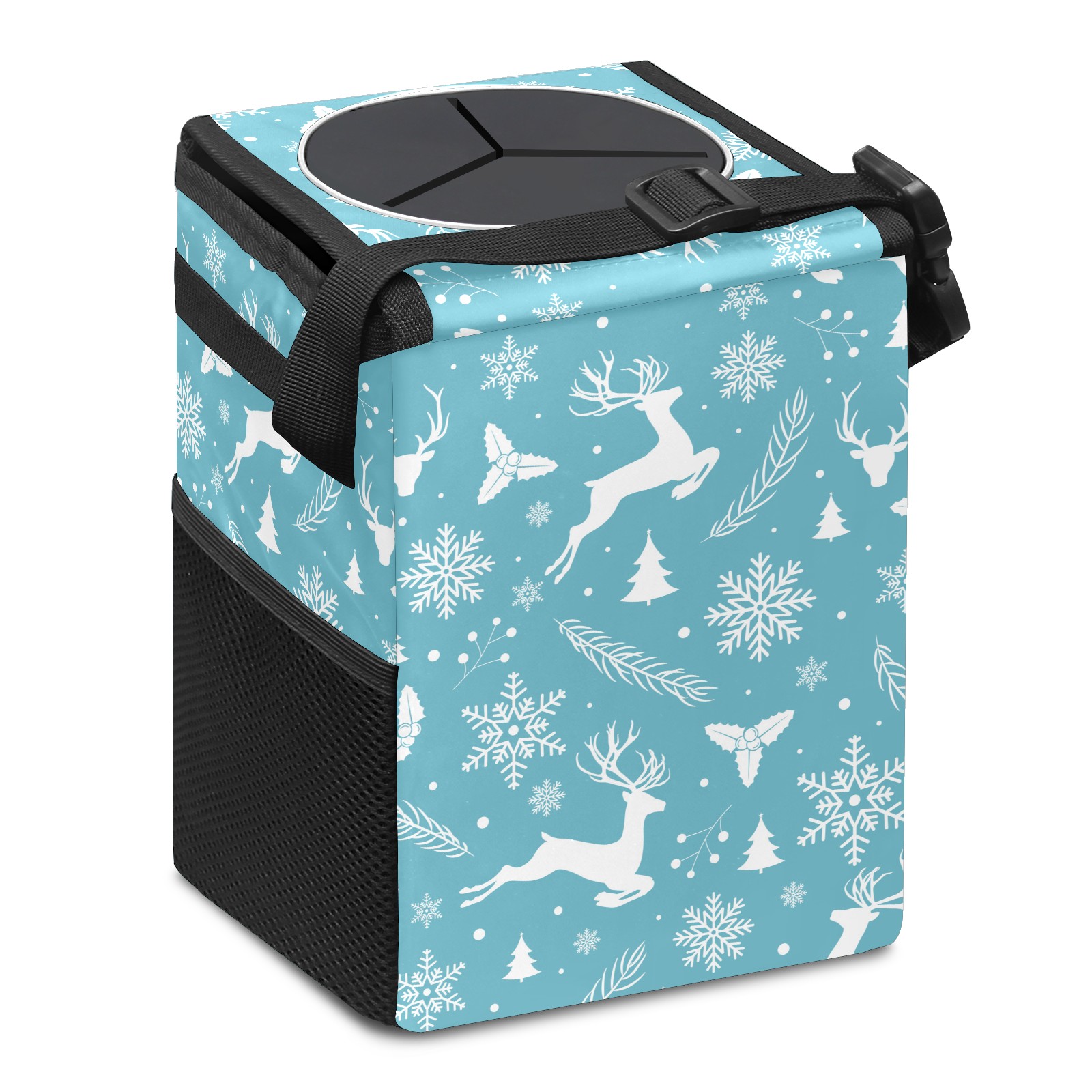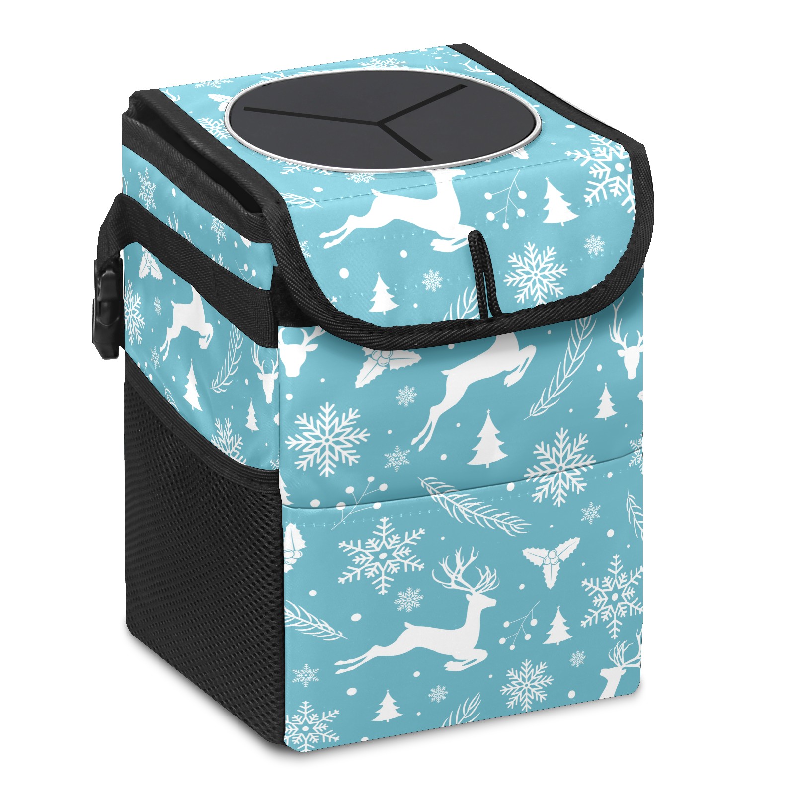 Car Garbage Can — Multi-functional, Lightweight Portable, Reusable Vehicle Trash Can, Waterproof with Sufficient Storage Capacity Christmas Reindeer Snowflakes