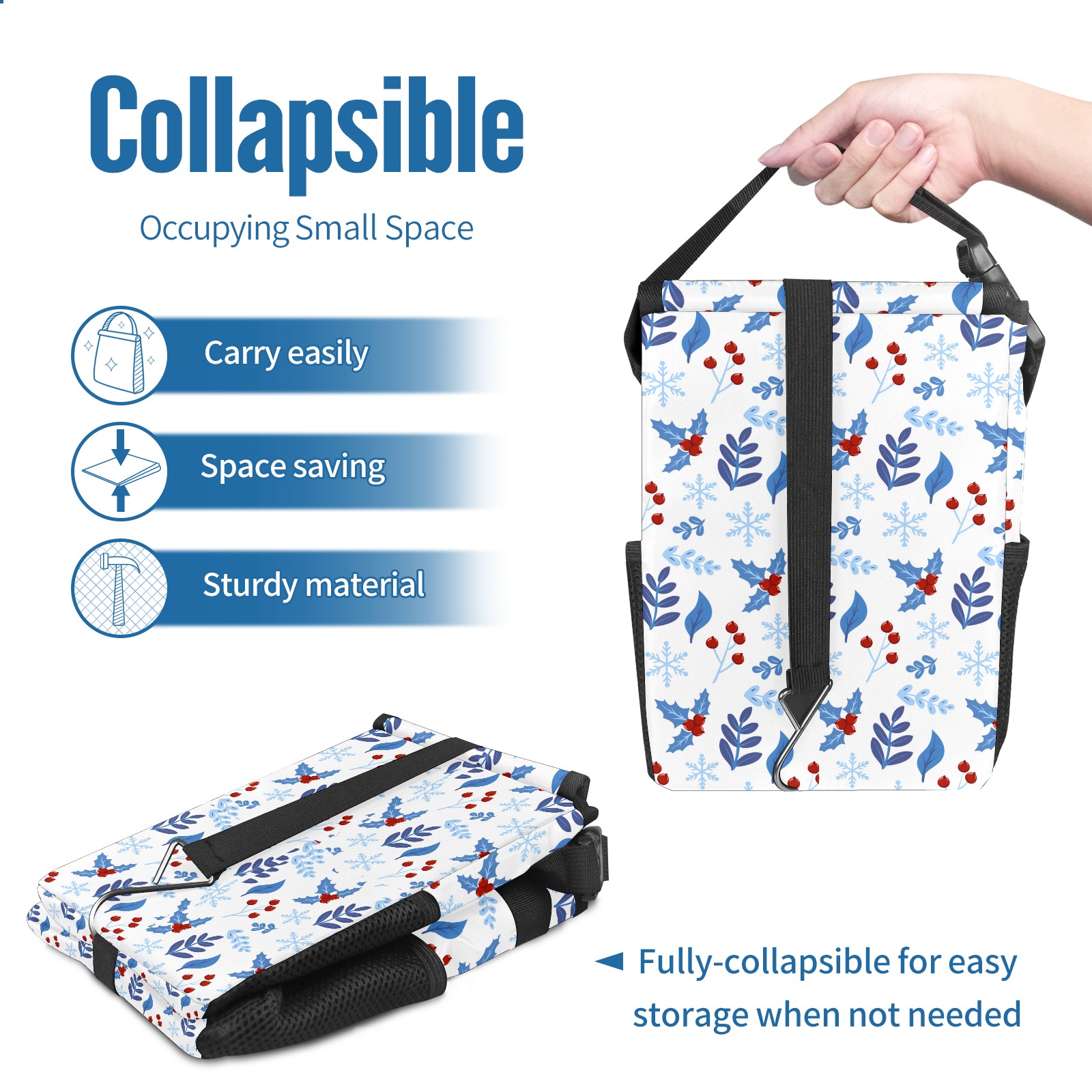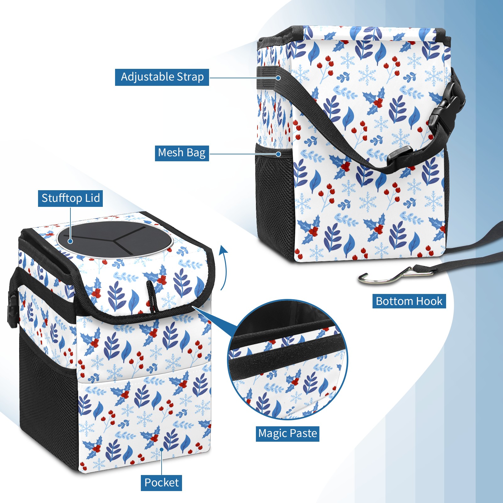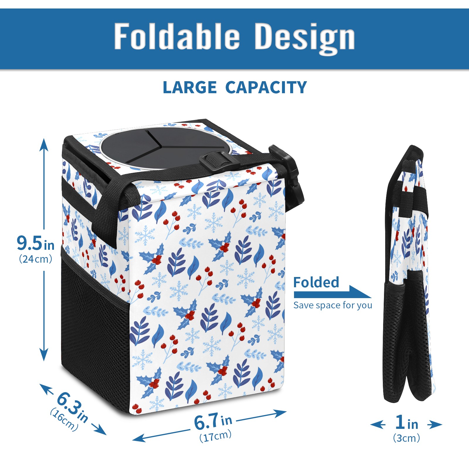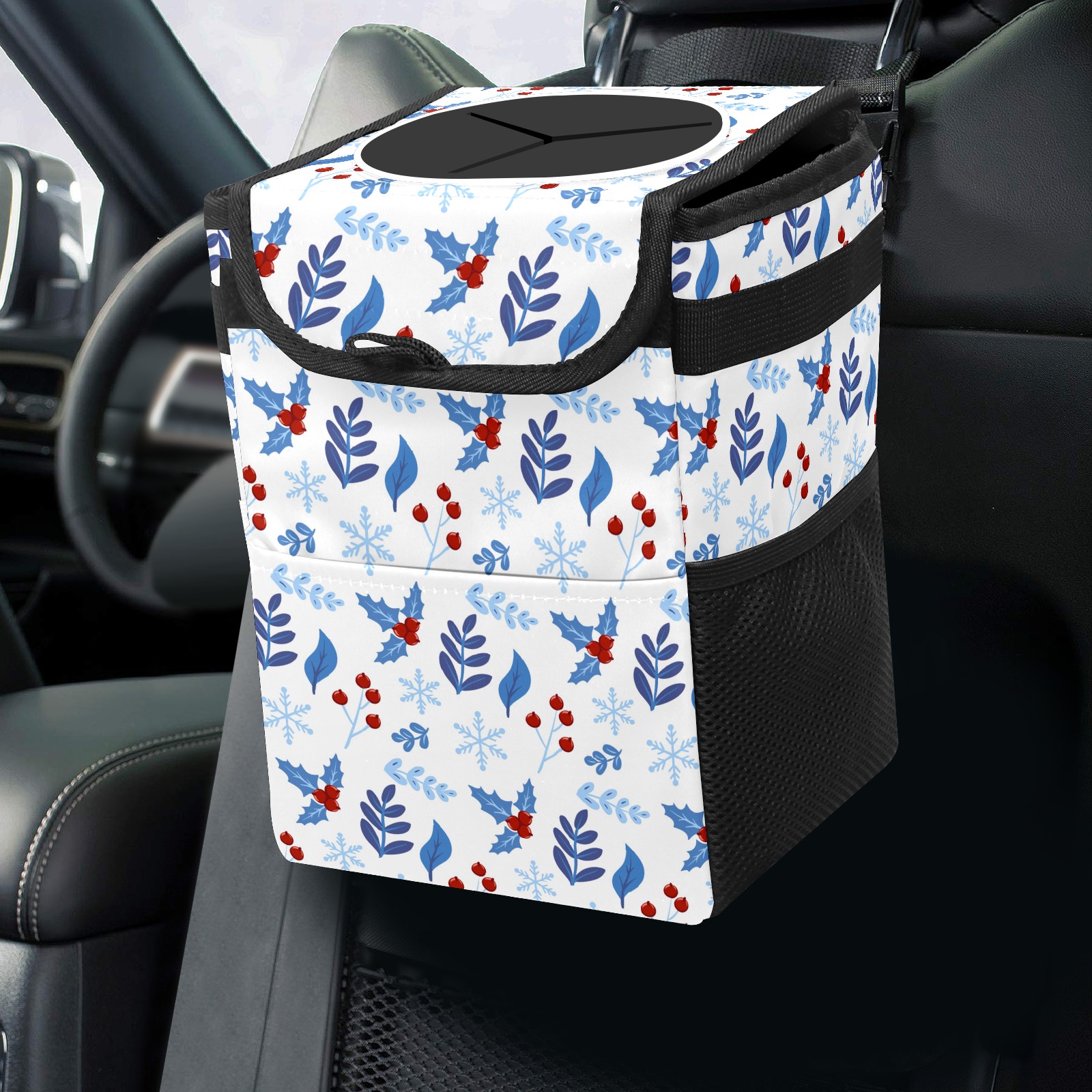 Car Garbage Can — Multi-functional, Lightweight Portable, Reusable Vehicle Trash Can, Waterproof with Sufficient Storage Capacity Christmas Holly Berries