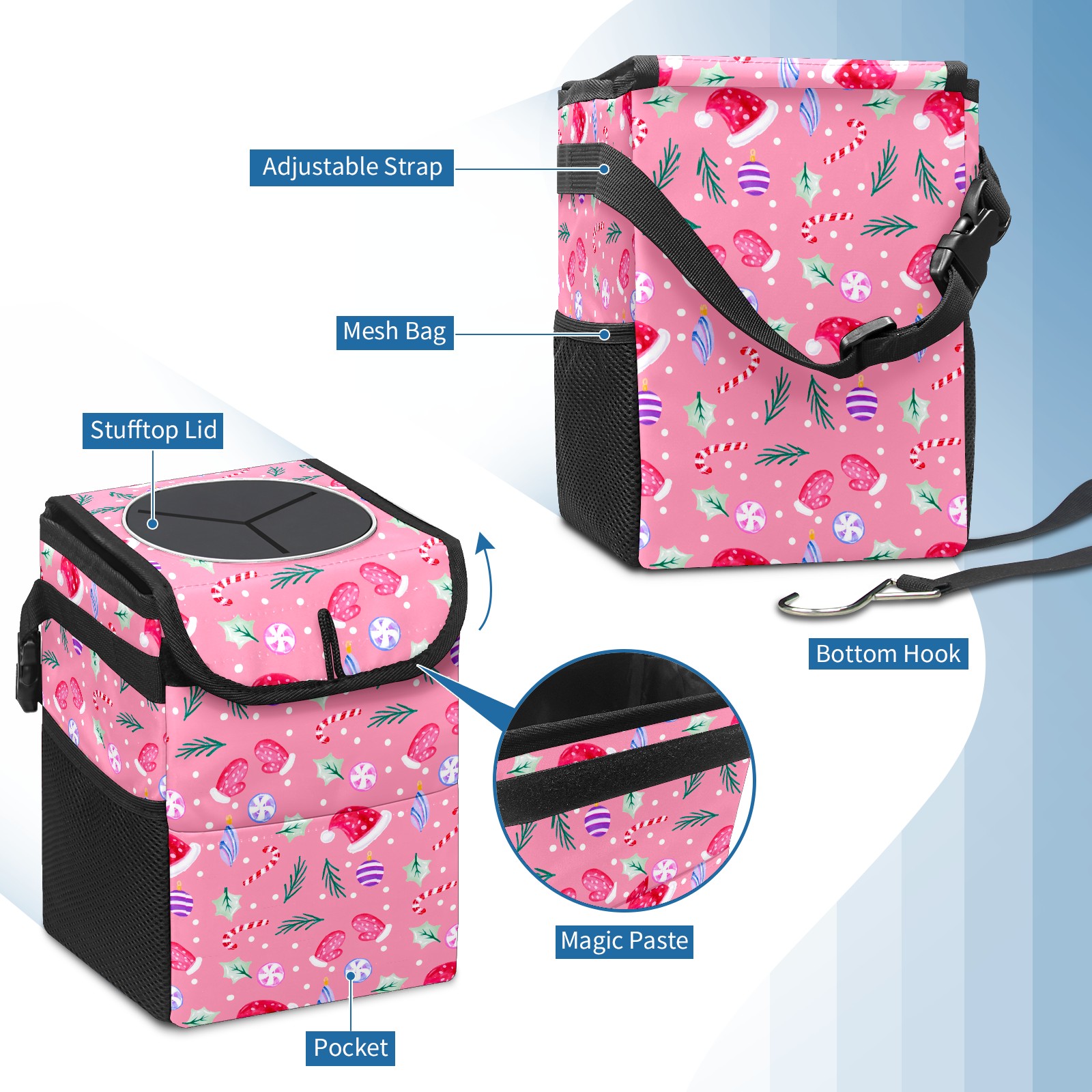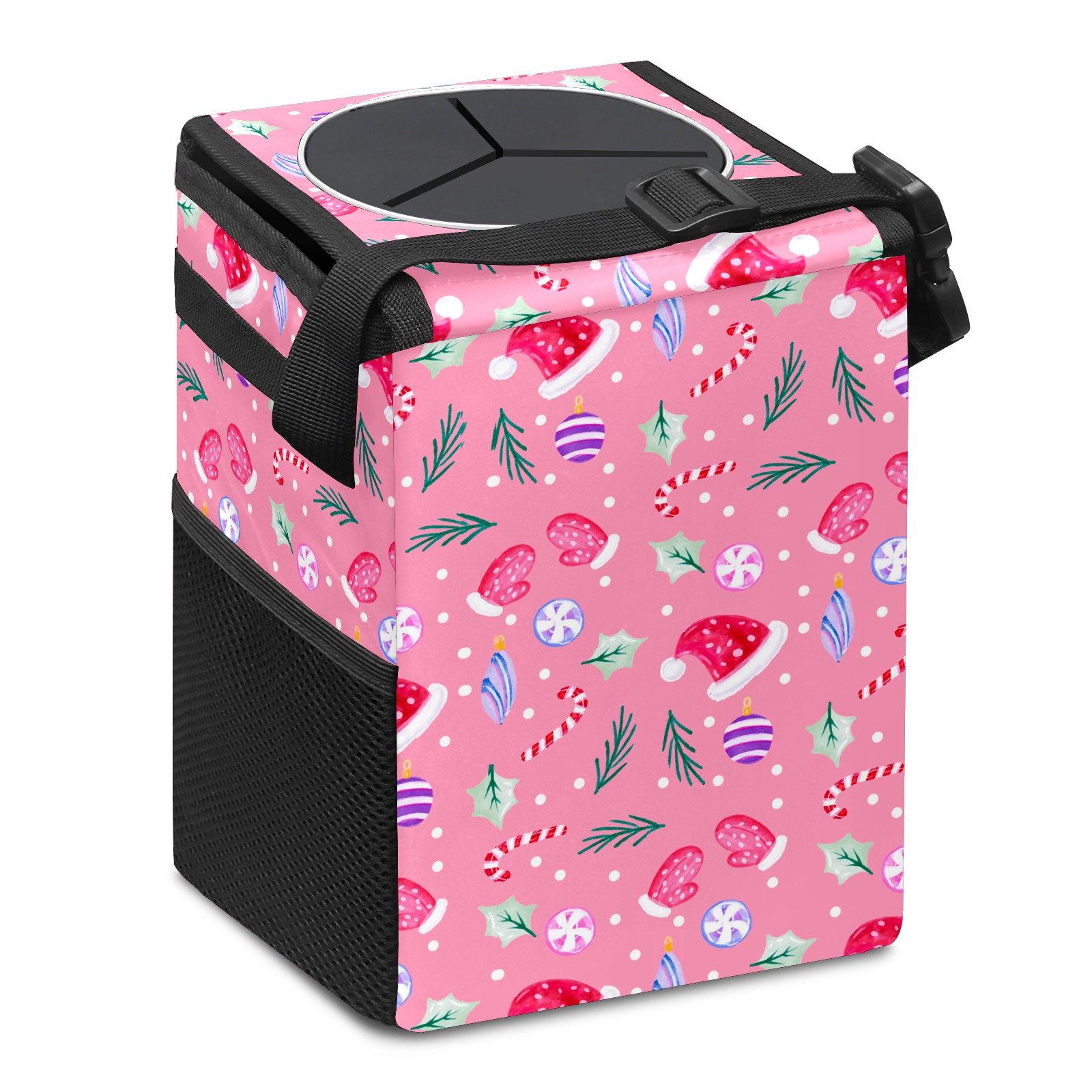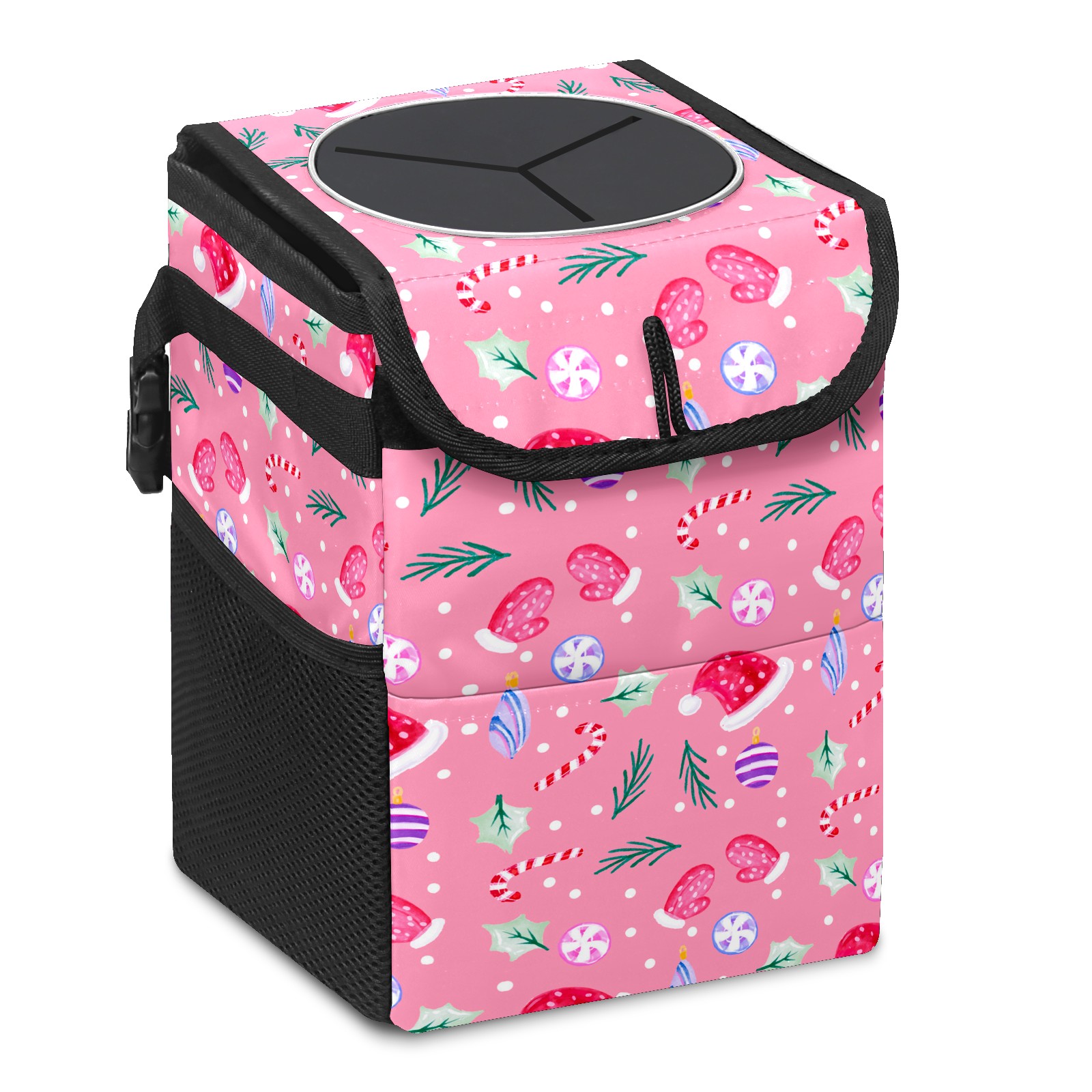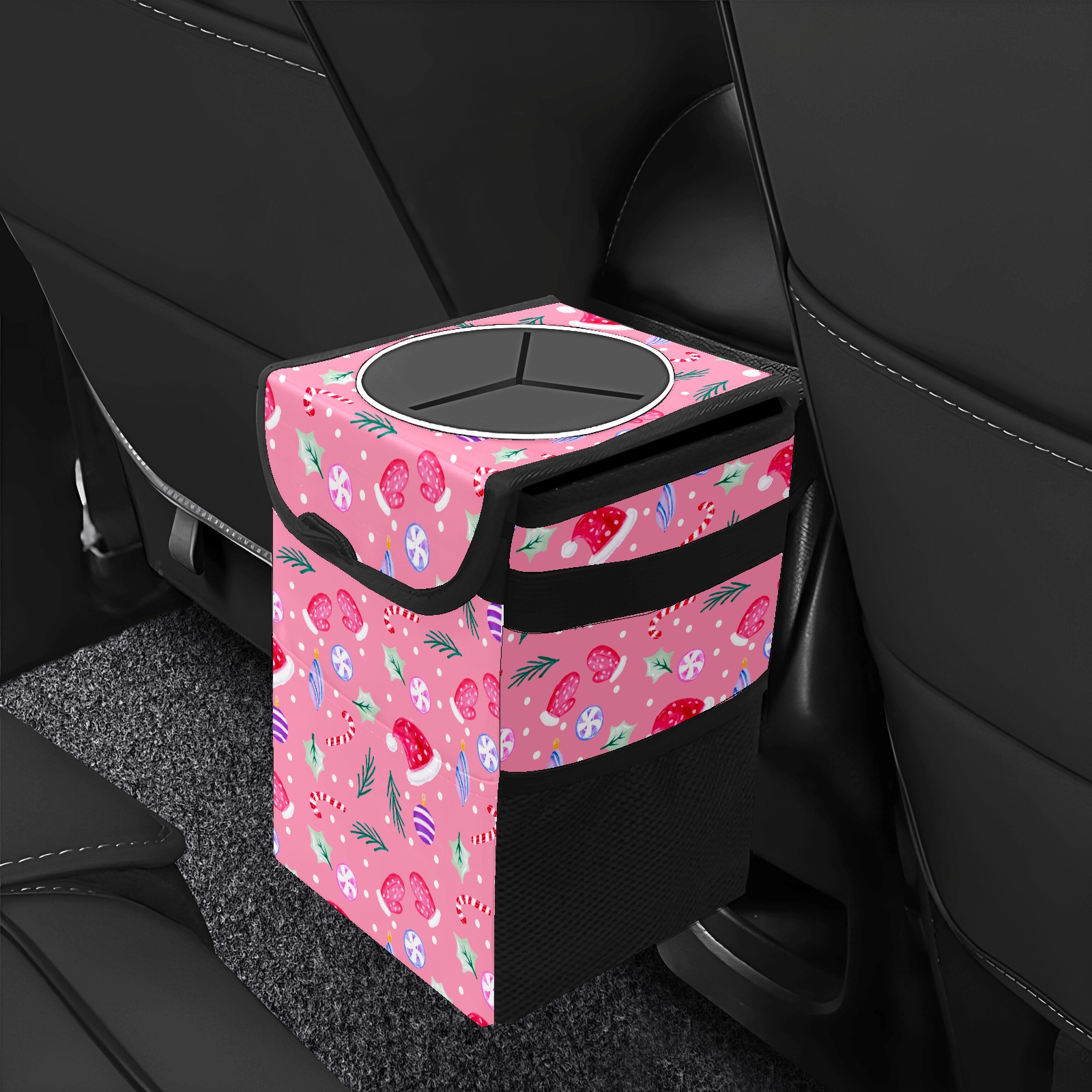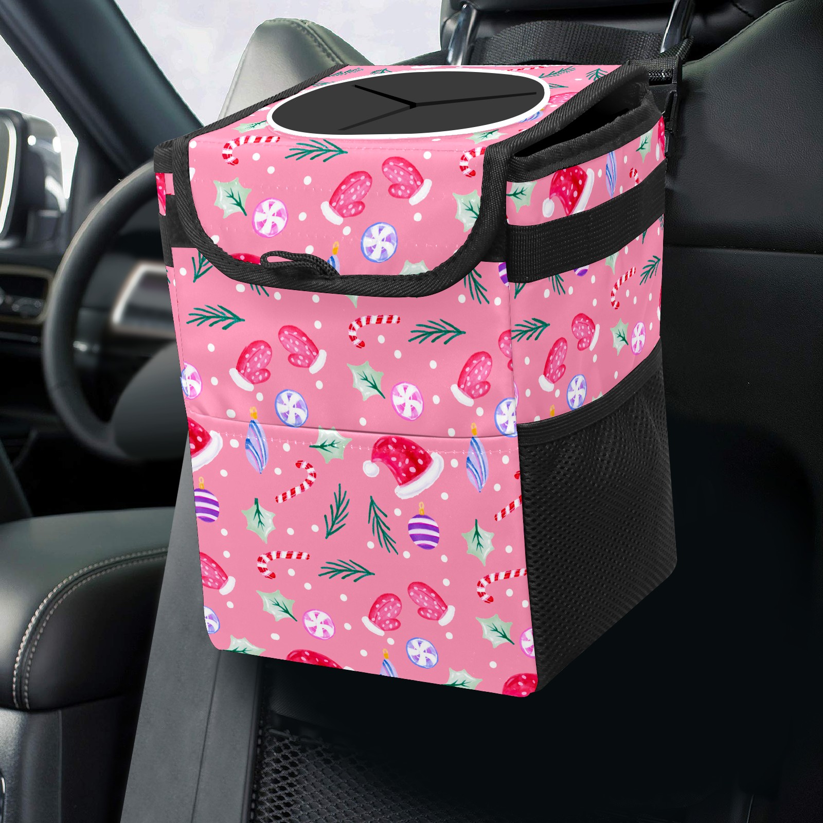 Car Garbage Can — Multi-functional, Lightweight Portable, Reusable Vehicle Trash Can, Waterproof with Sufficient Storage Capacity Christmas Hat Glover Pink