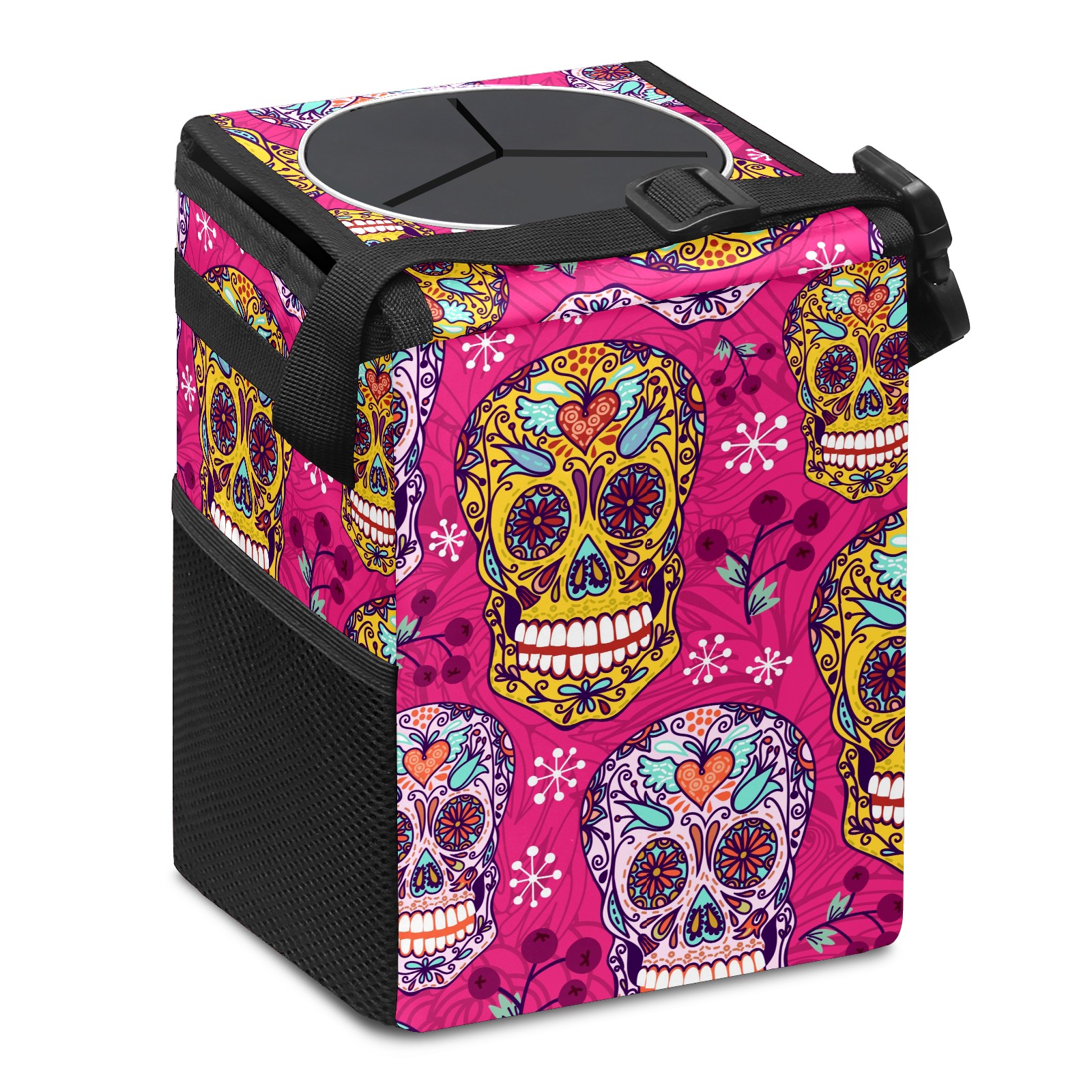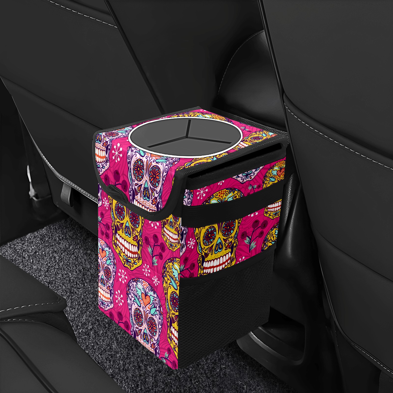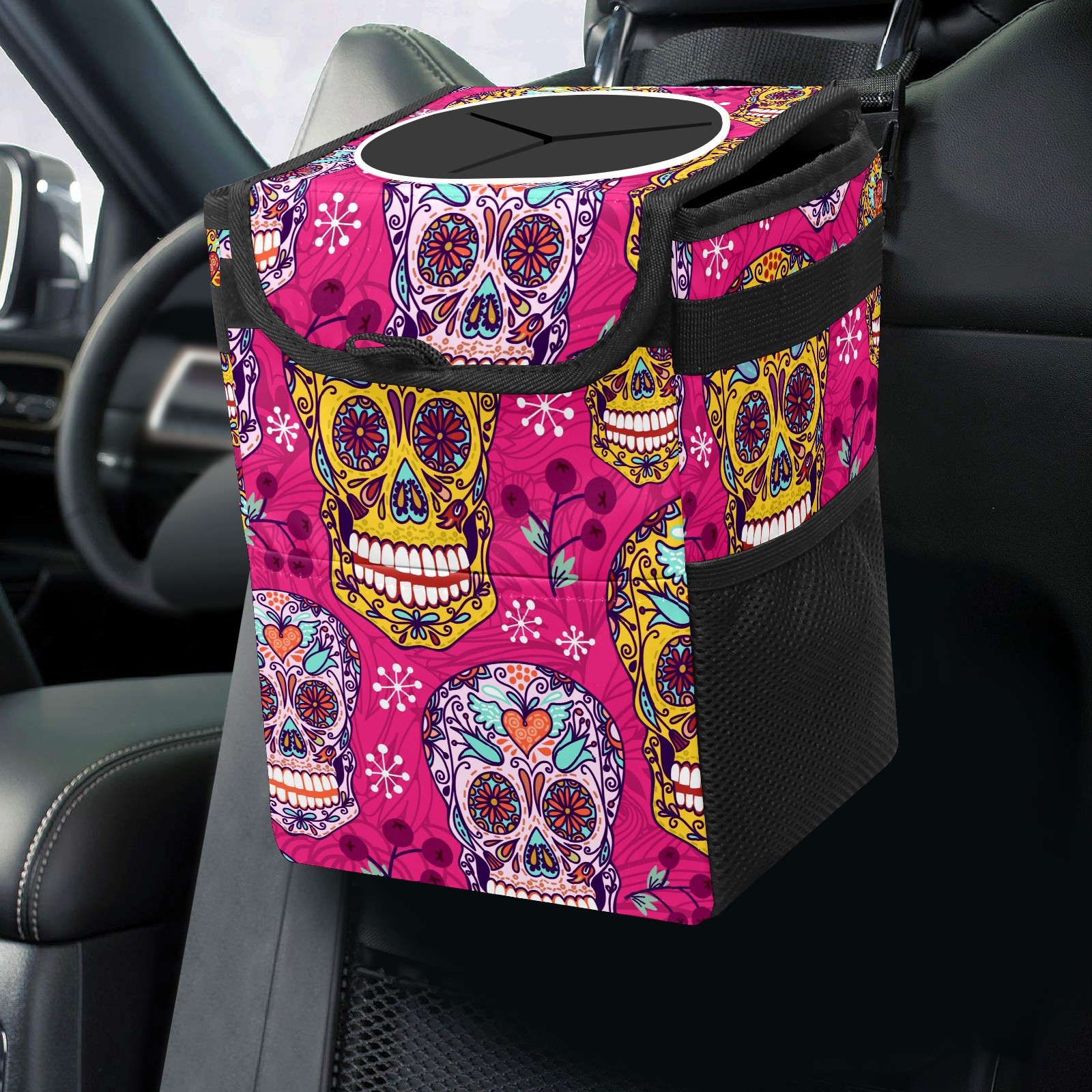 Car Garbage Can — Multi-functional, Lightweight Portable, Reusable Vehicle Trash Can, Waterproof with Sufficient Storage Capacity Pink Skull