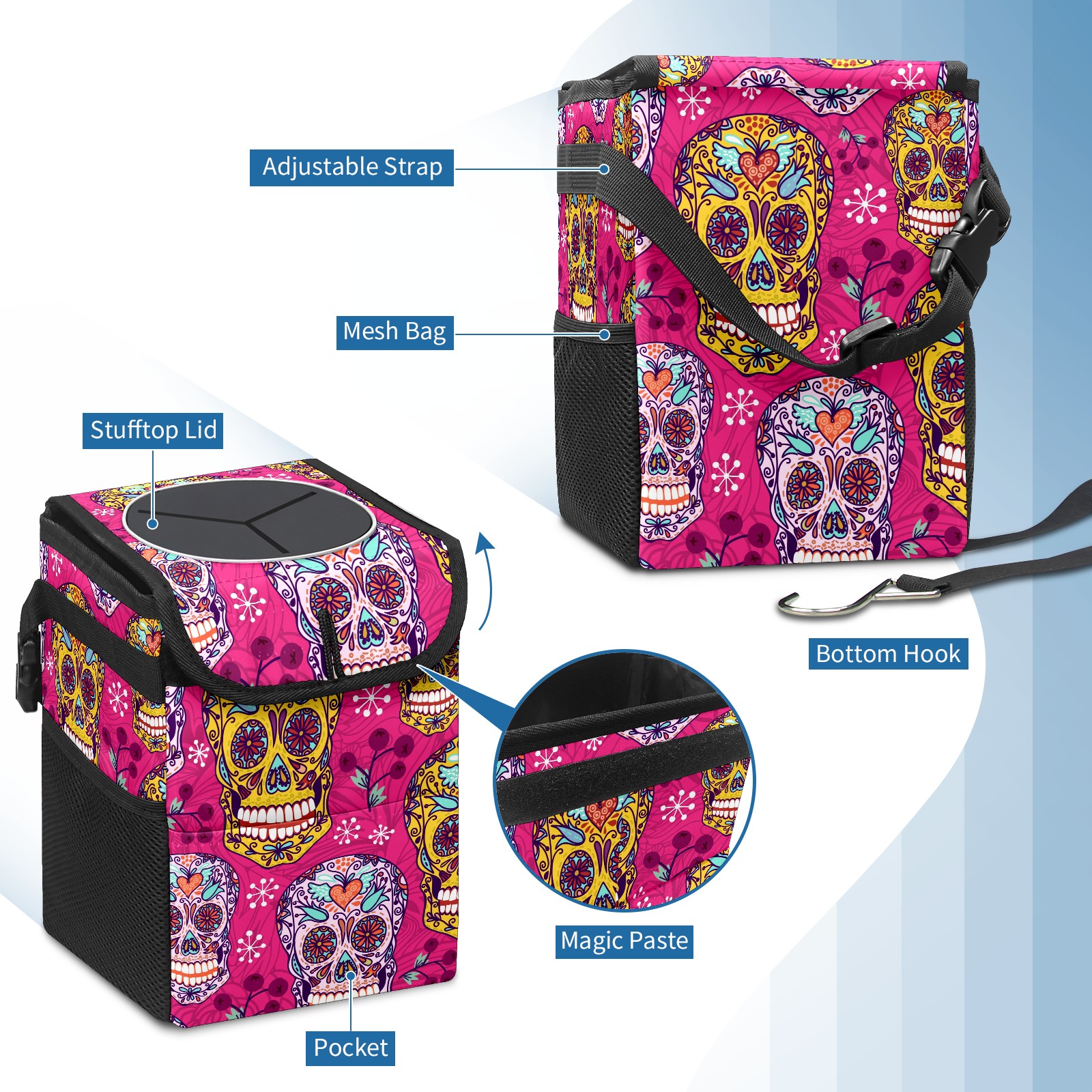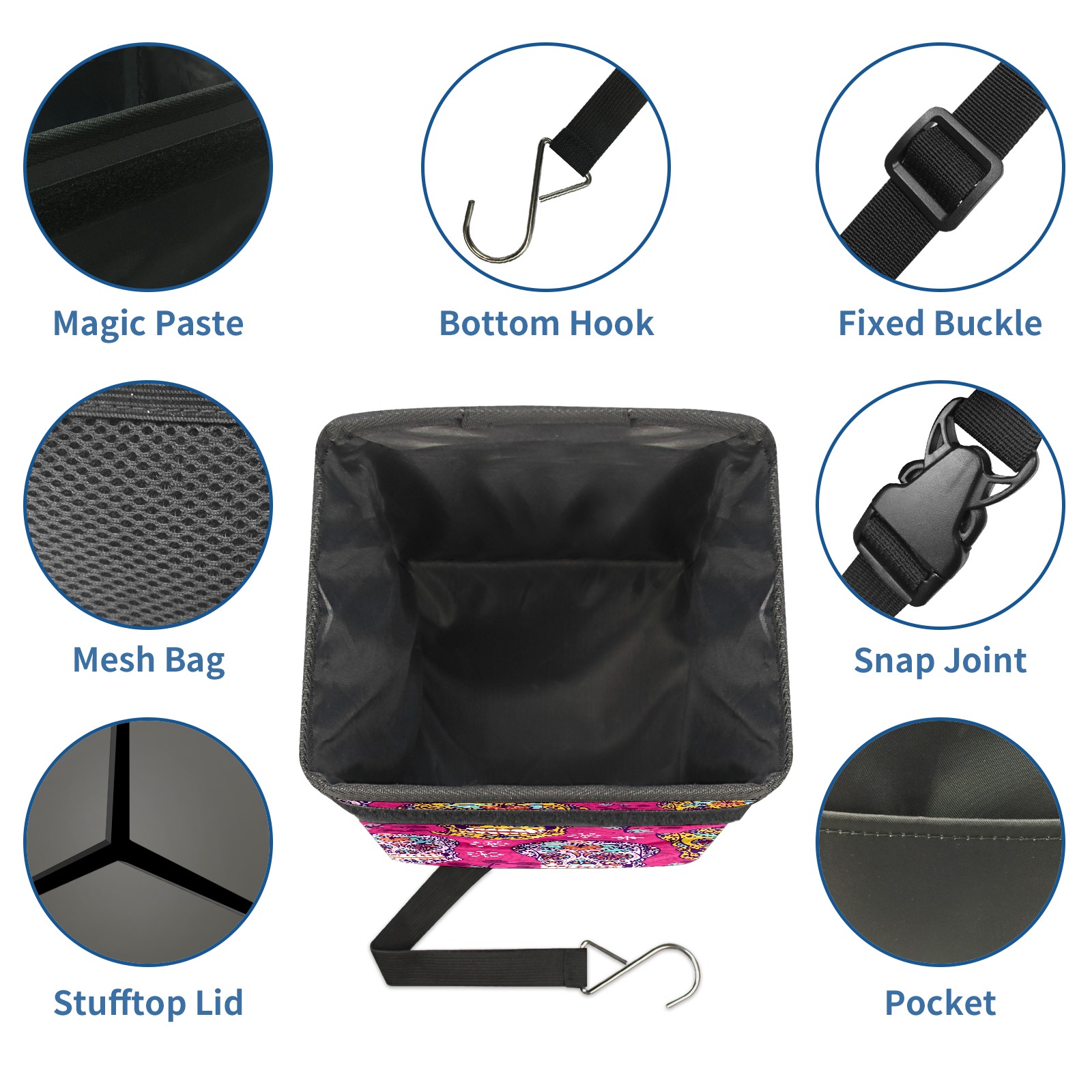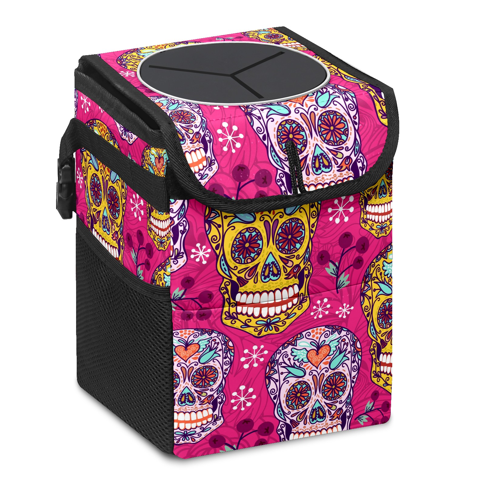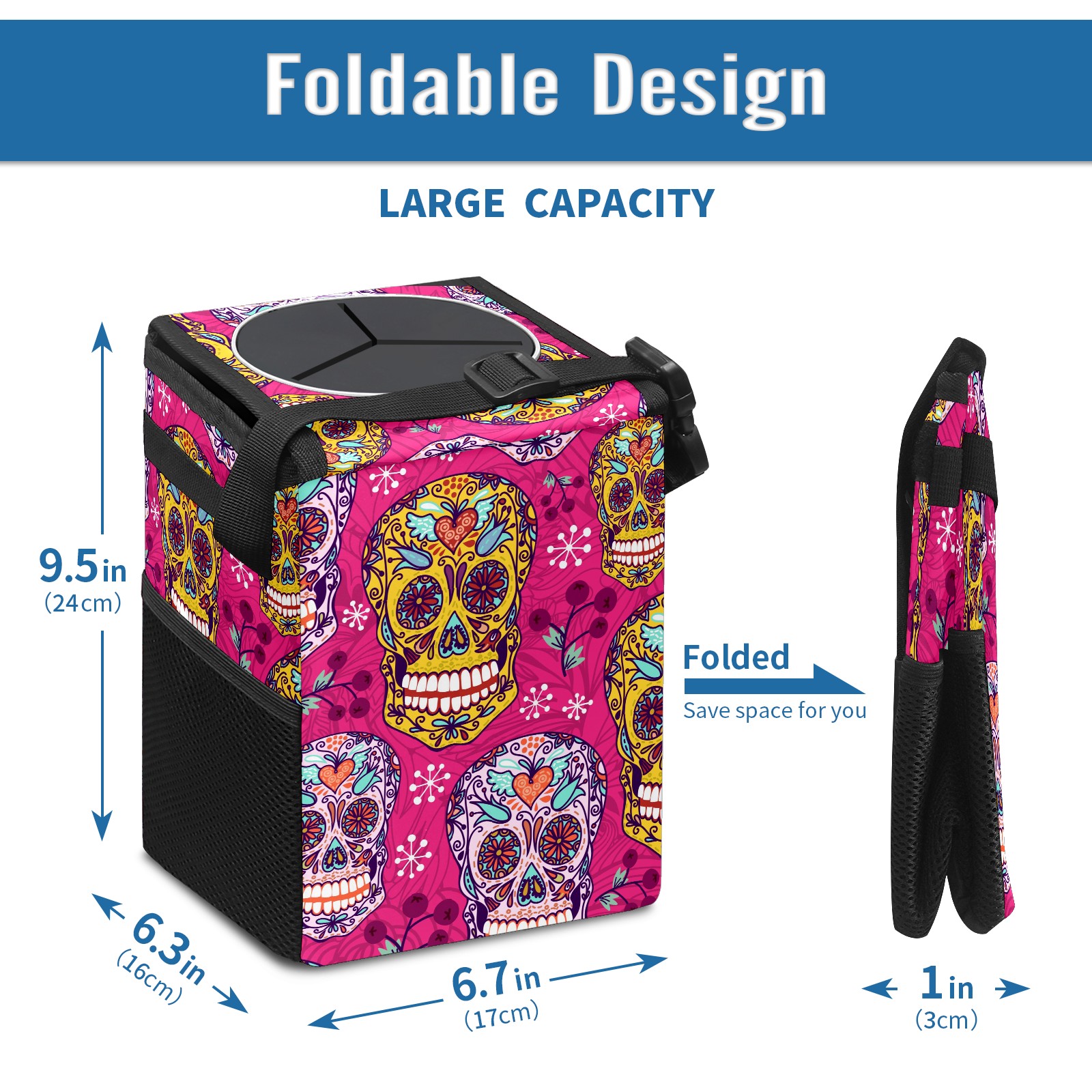 Car Garbage Can — Multi-functional, Lightweight Portable, Reusable Vehicle Trash Can, Waterproof with Sufficient Storage Capacity Pink Skull