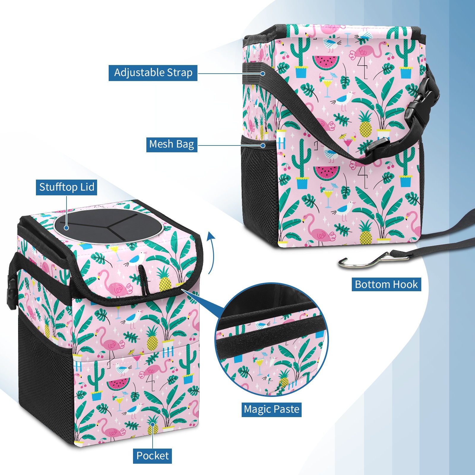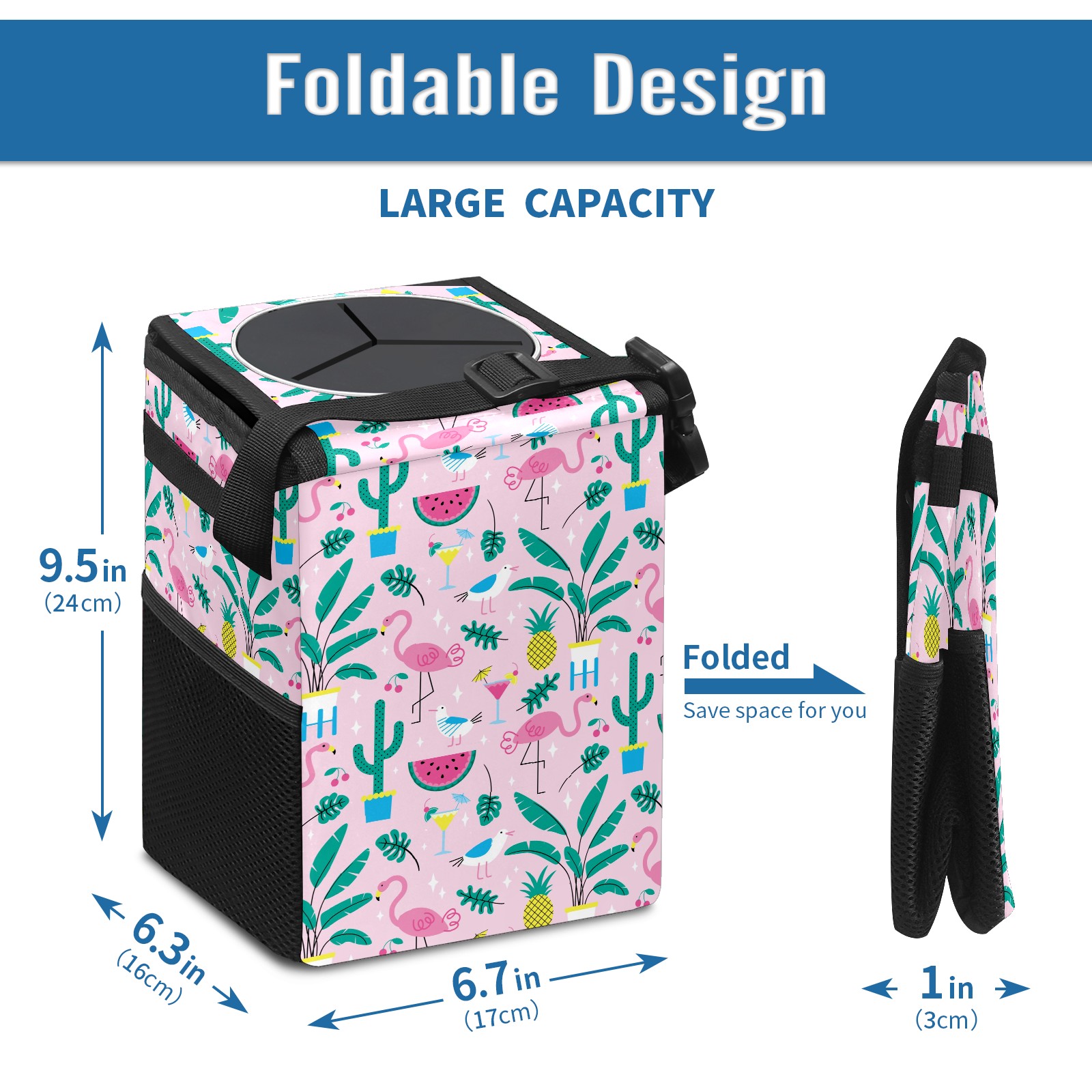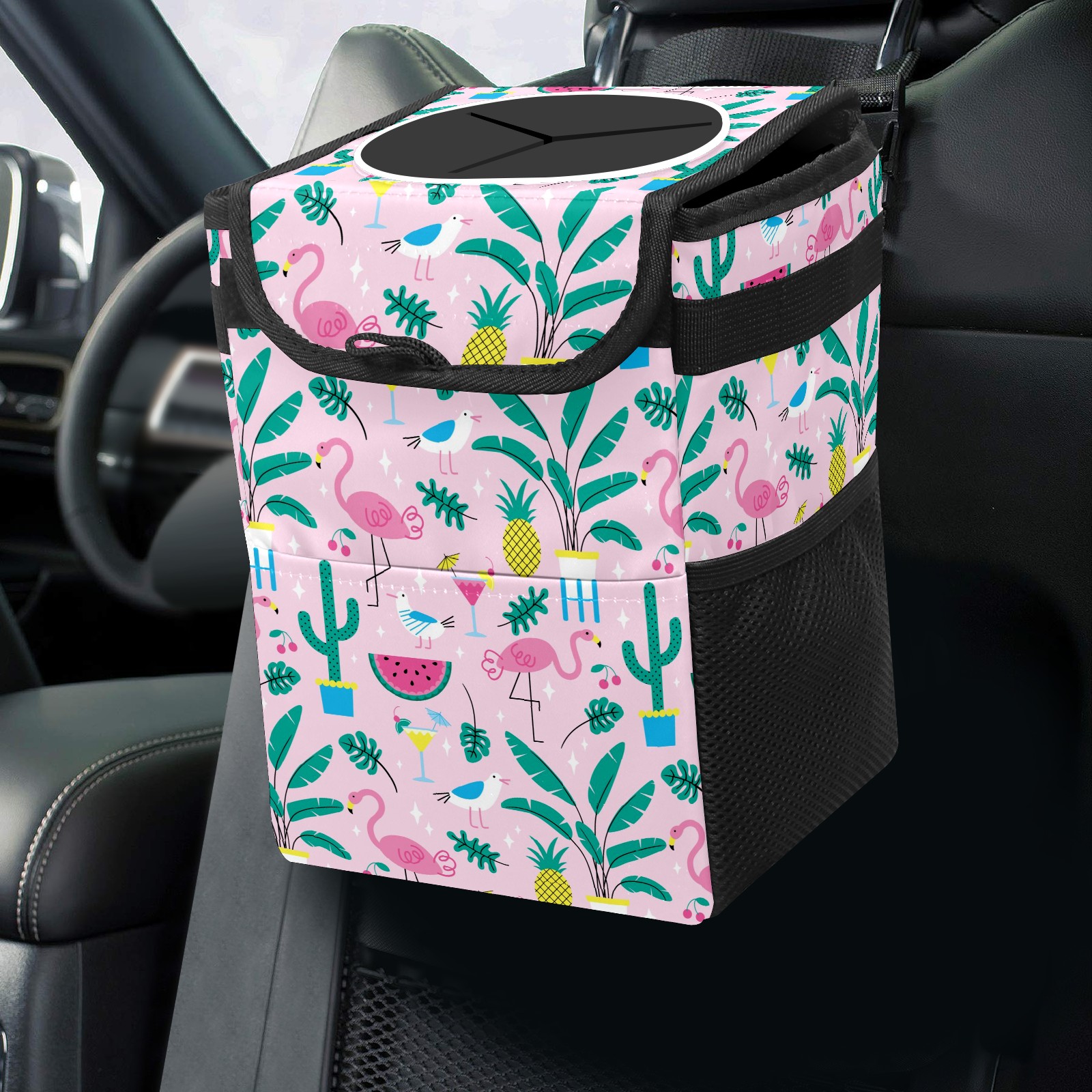 Car Garbage Can — Multi-functional, Lightweight Portable, Reusable Vehicle Trash Can, Waterproof with Sufficient Storage Capacity Flamingo Pineapple
