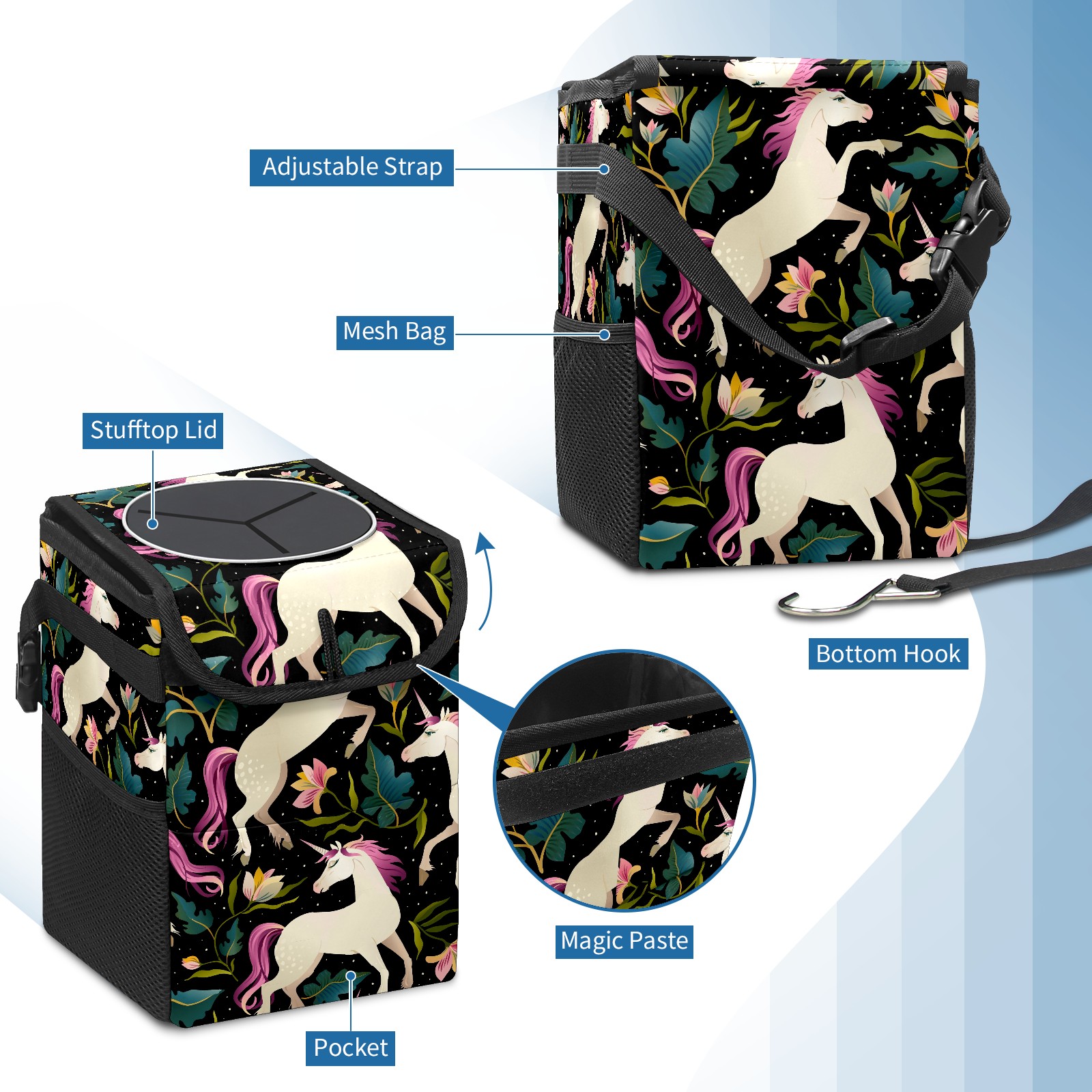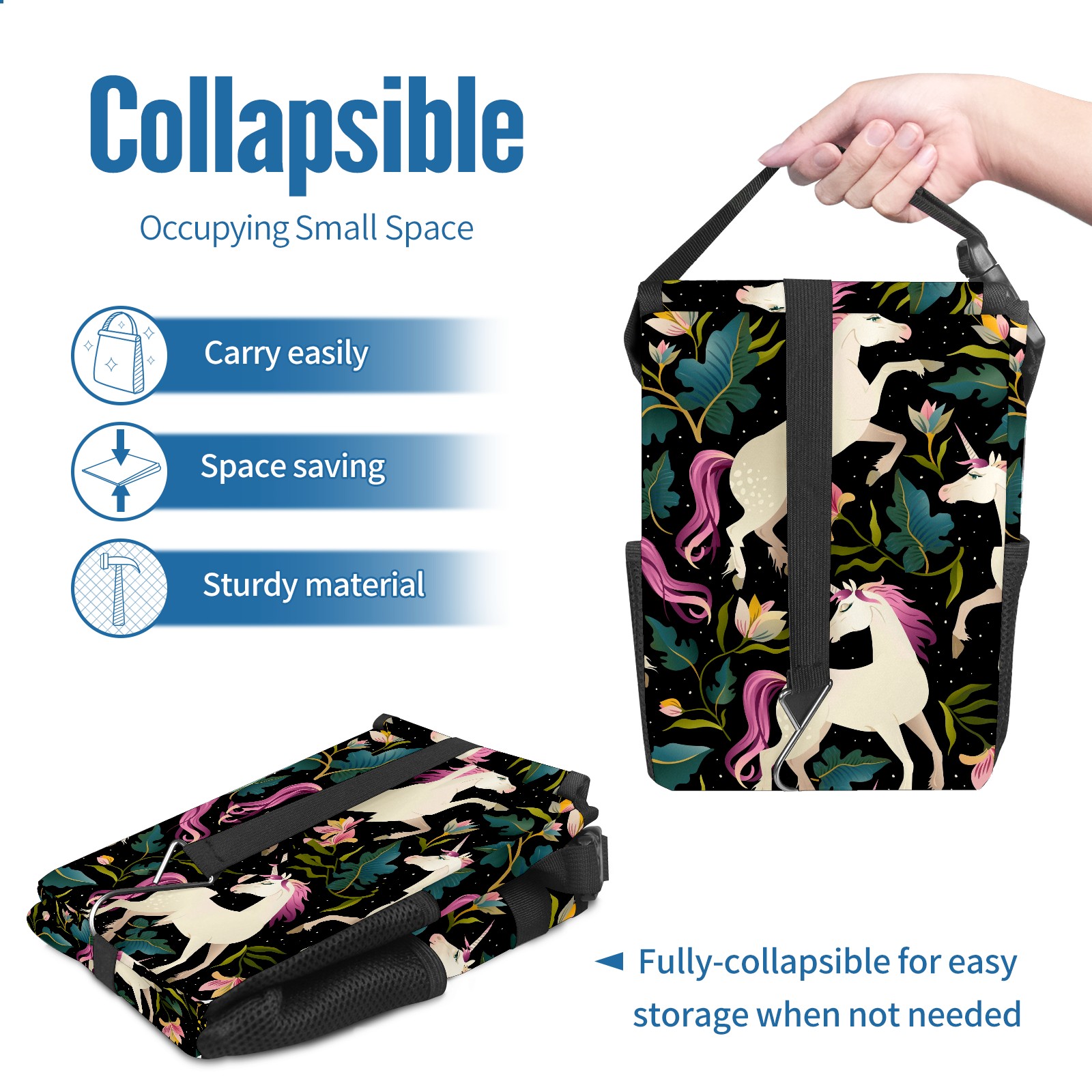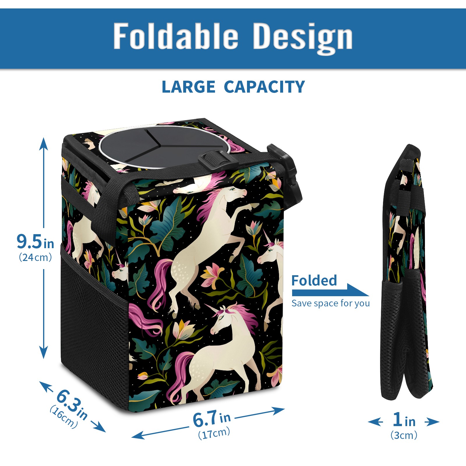 Car Garbage Can — Multi-functional, Lightweight Portable, Reusable Vehicle Trash Can, Waterproof with Sufficient Storage Capacity Elegant Unicorn