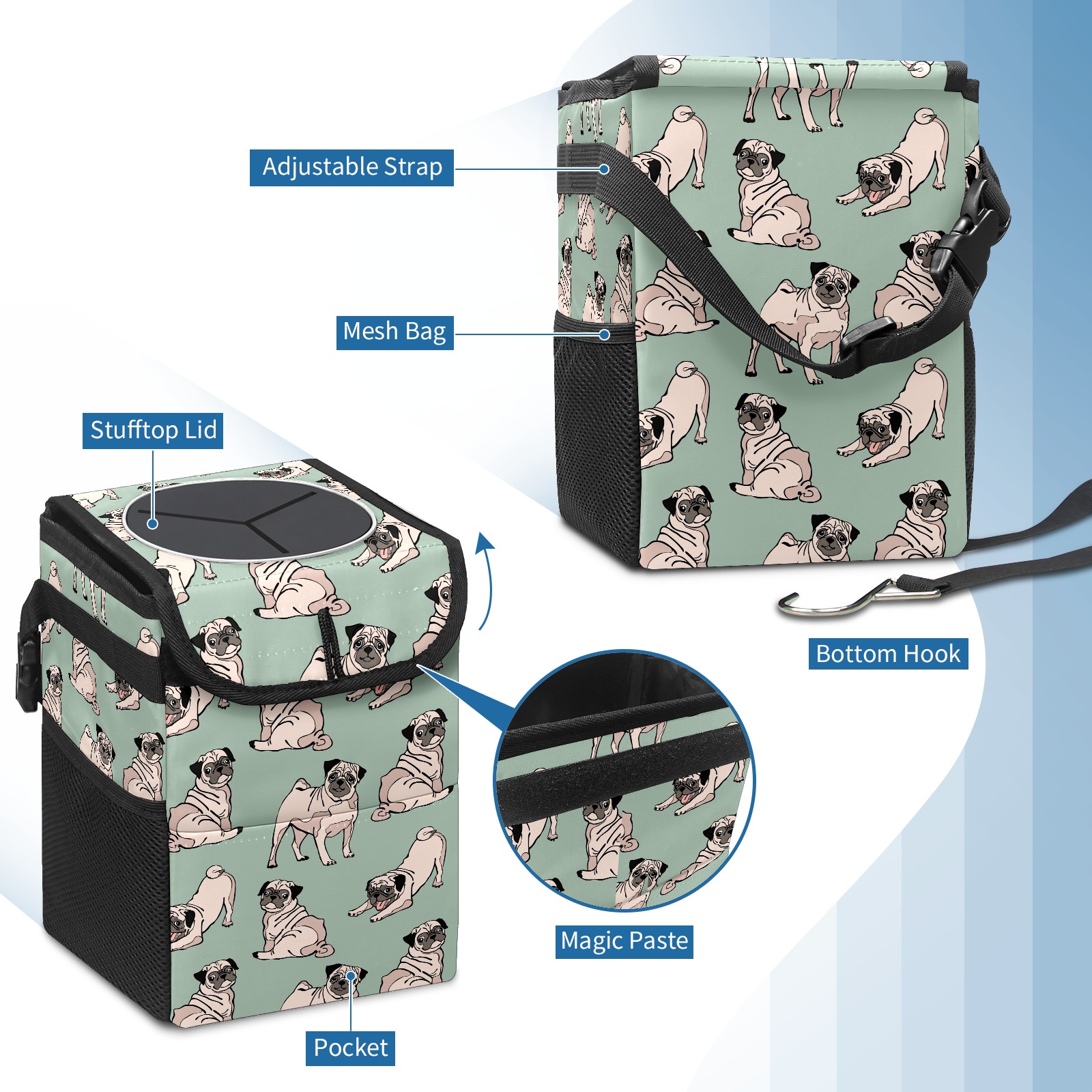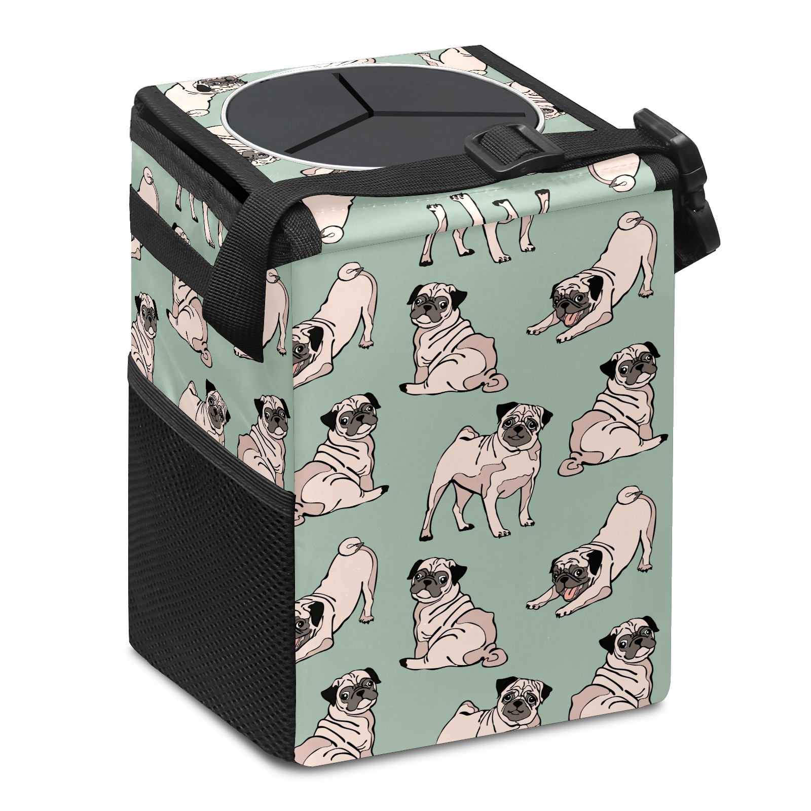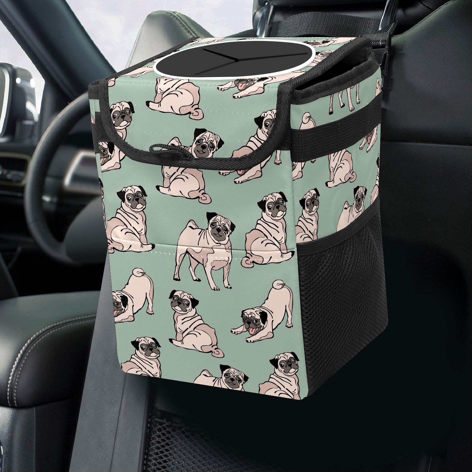 Car Garbage Can — Multi-functional, Lightweight Portable, Reusable Vehicle Trash Can, Waterproof with Sufficient Storage Capacity Cute Pugs