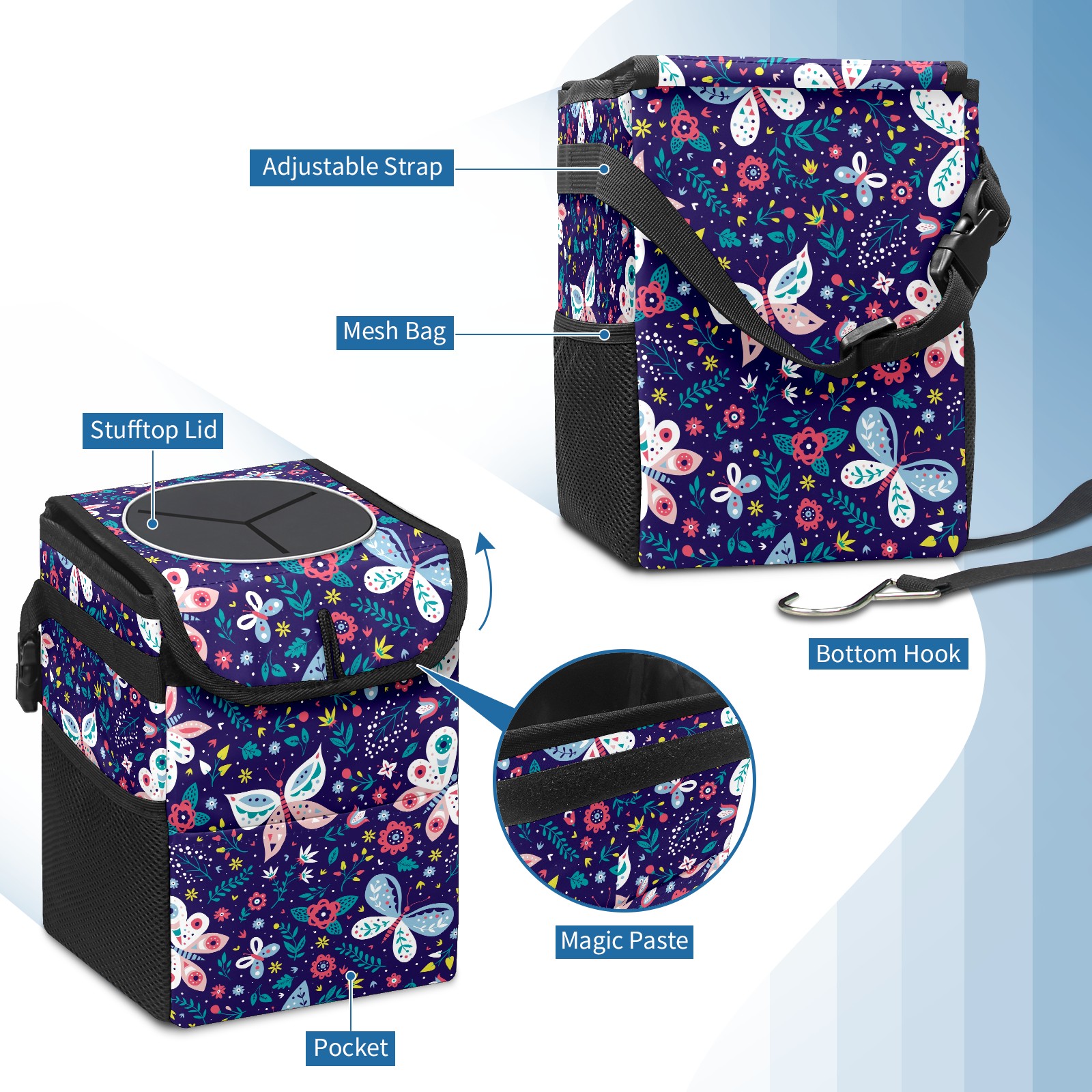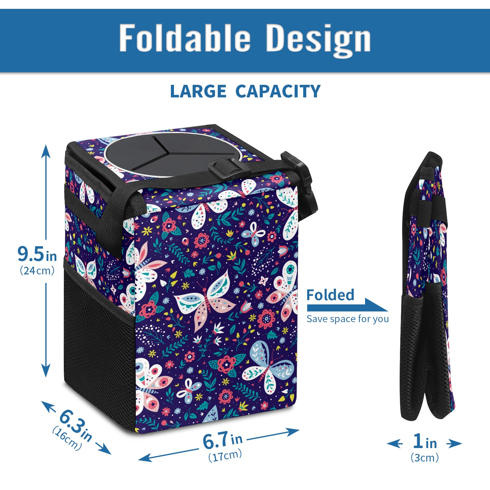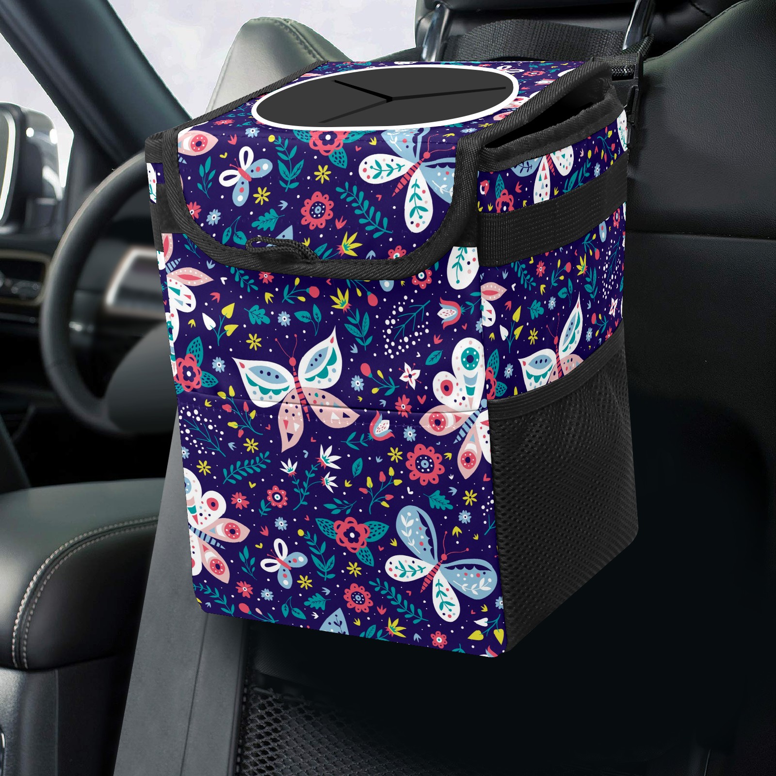 Car Garbage Can — Multi-functional, Lightweight Portable, Reusable Vehicle Trash Can, Waterproof with Sufficient Storage Capacity Butterfly