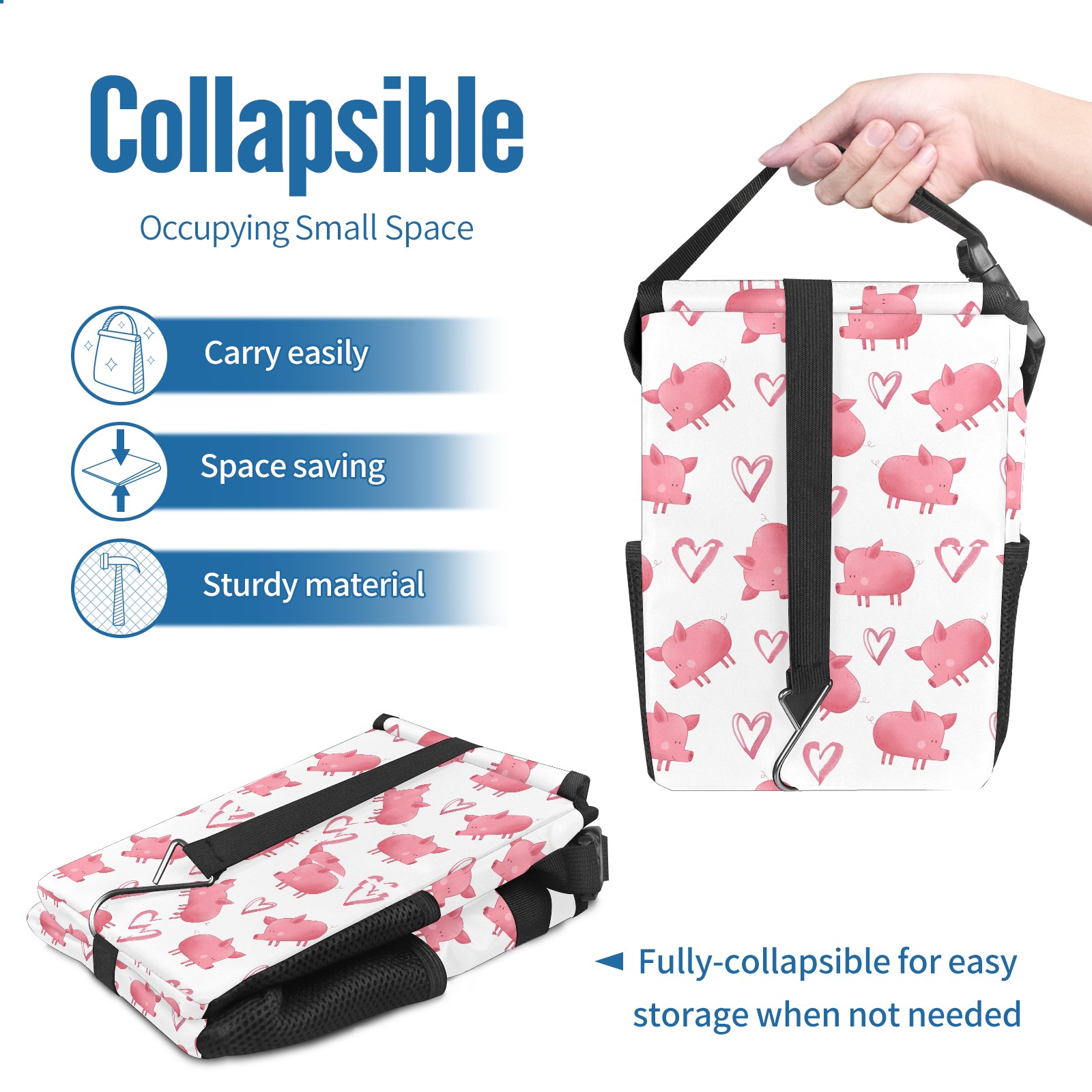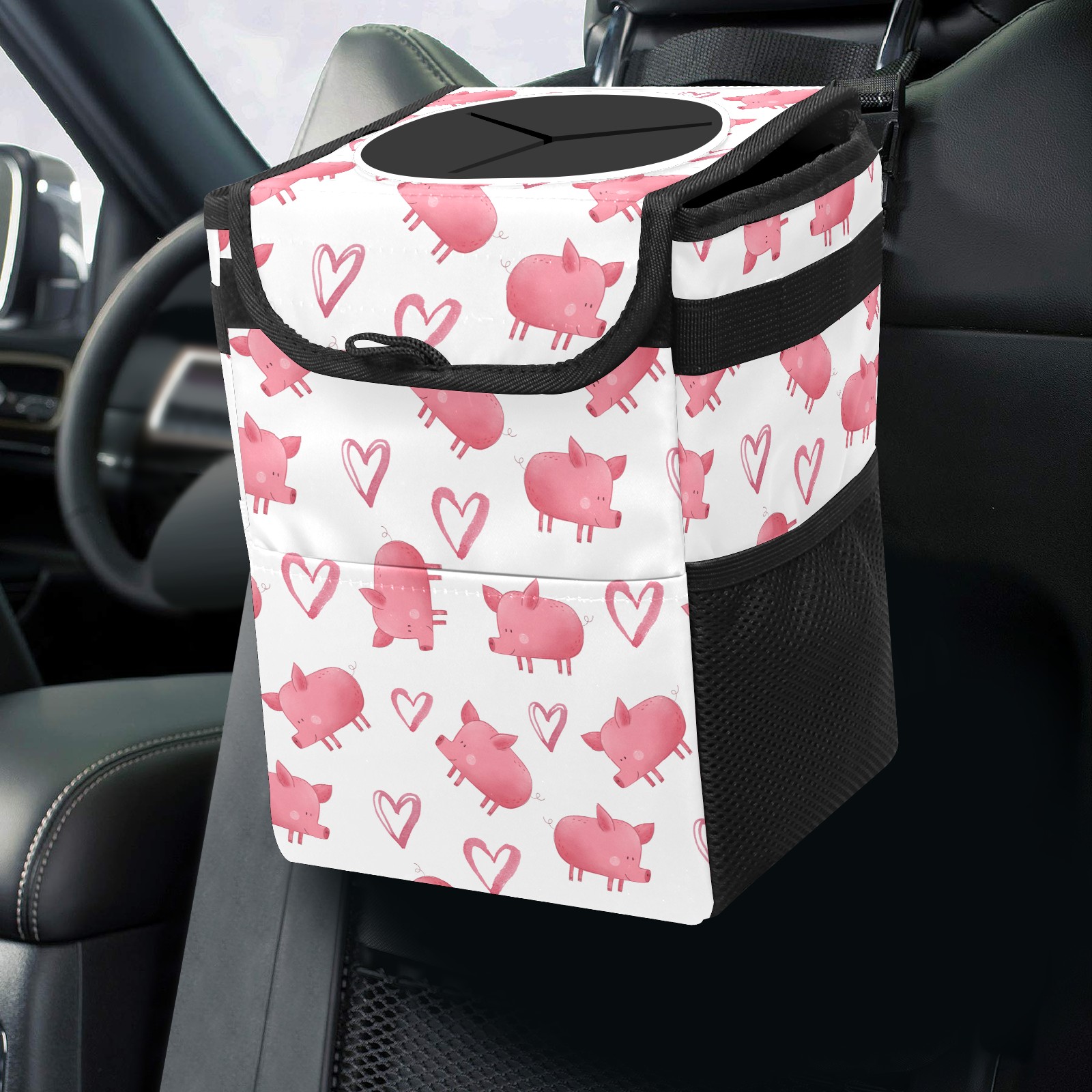 Car Garbage Can — Multi-functional, Lightweight Portable, Reusable Vehicle Trash Can, Waterproof with Sufficient Storage Capacity Animal Pig Pink Cute