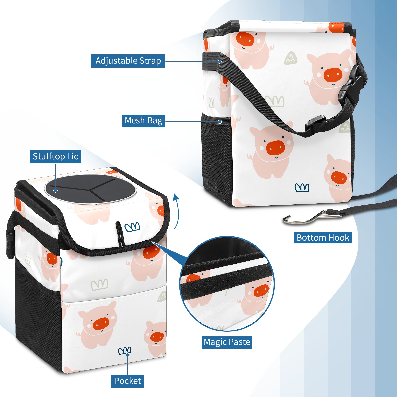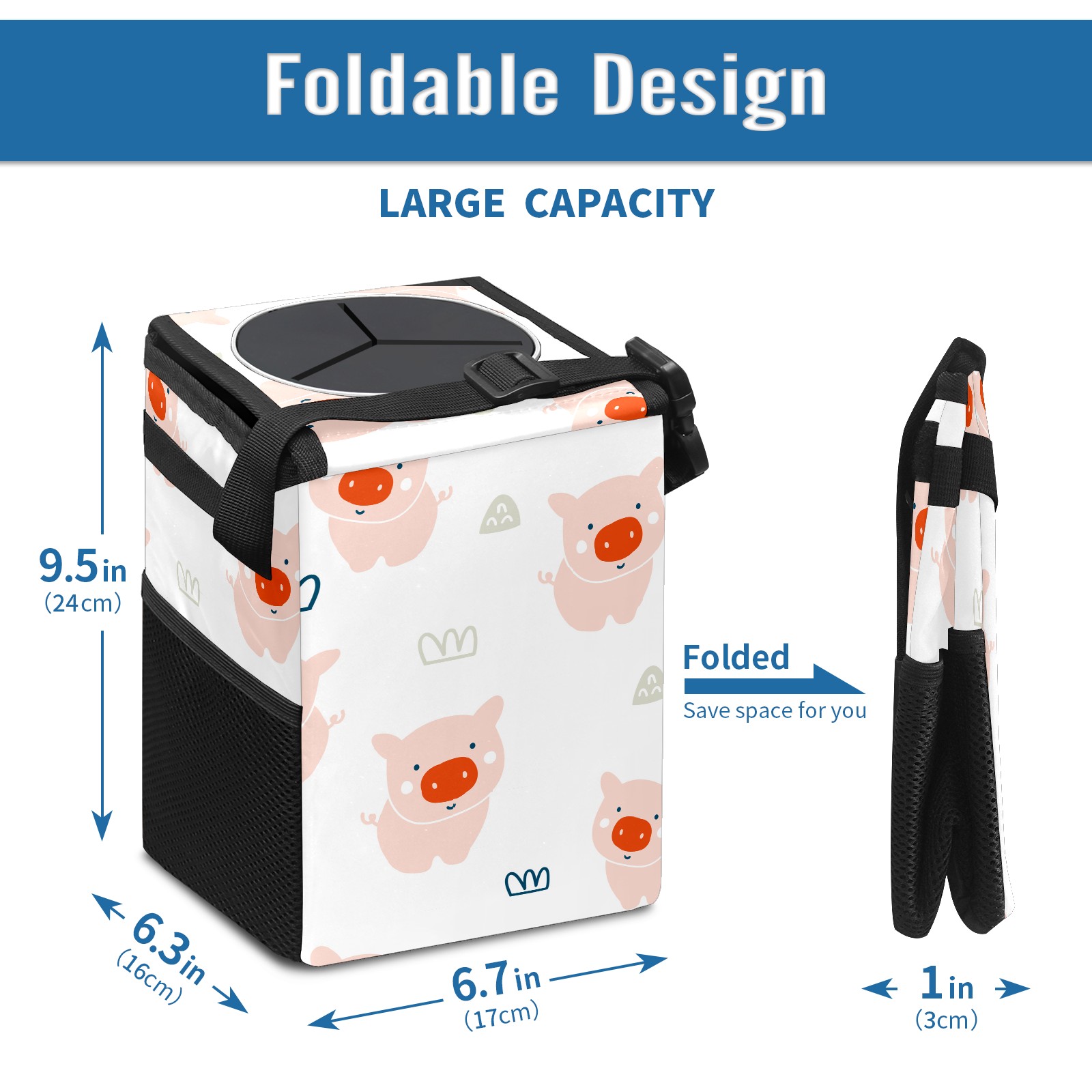 Car Garbage Can — Multi-functional, Lightweight Portable, Reusable Vehicle Trash Can, Waterproof with Sufficient Storage Capacity Animal Cute Pink Pig