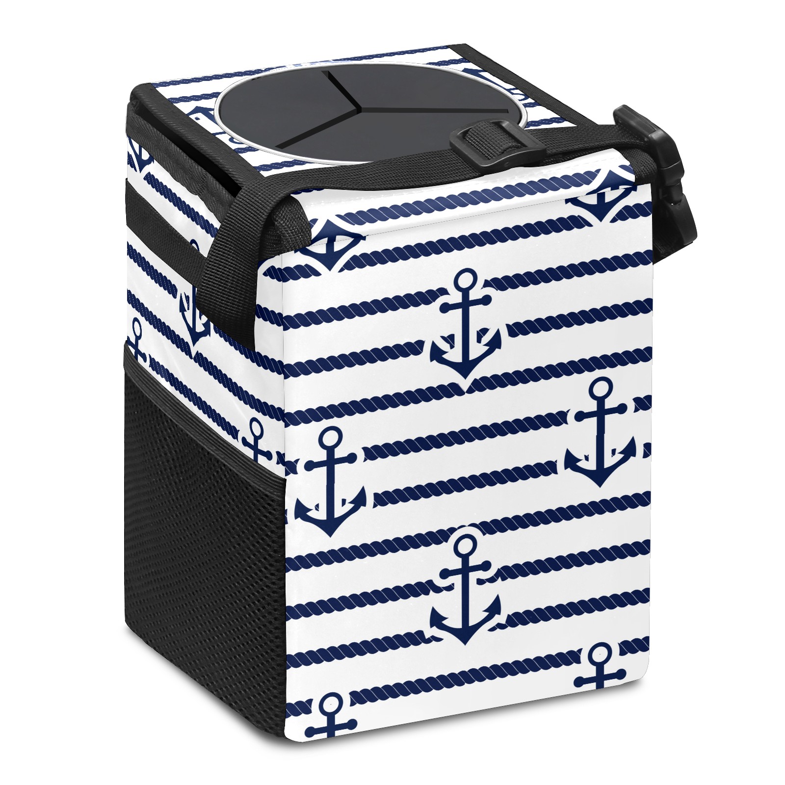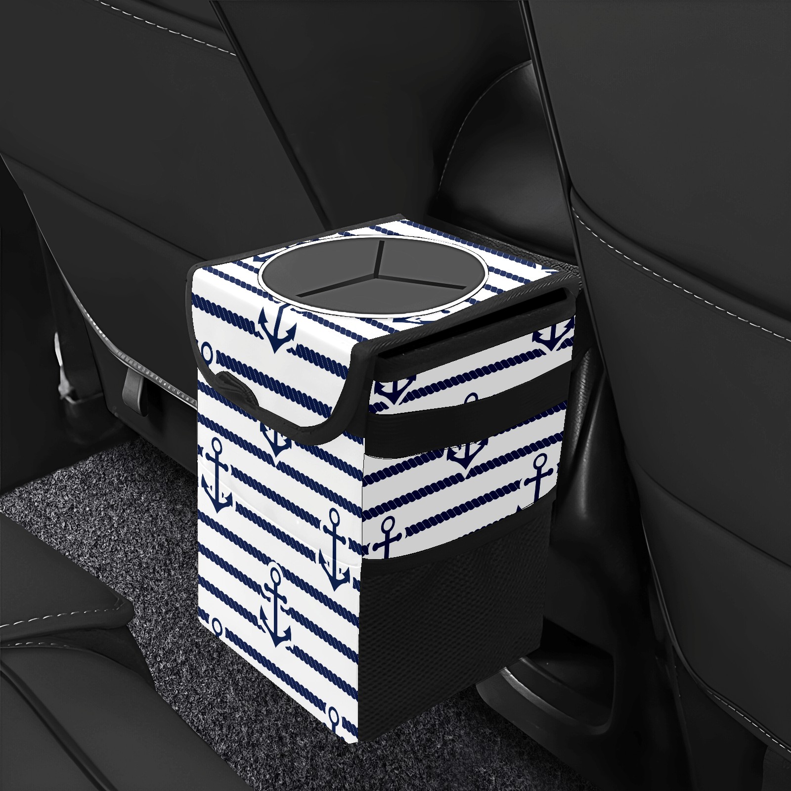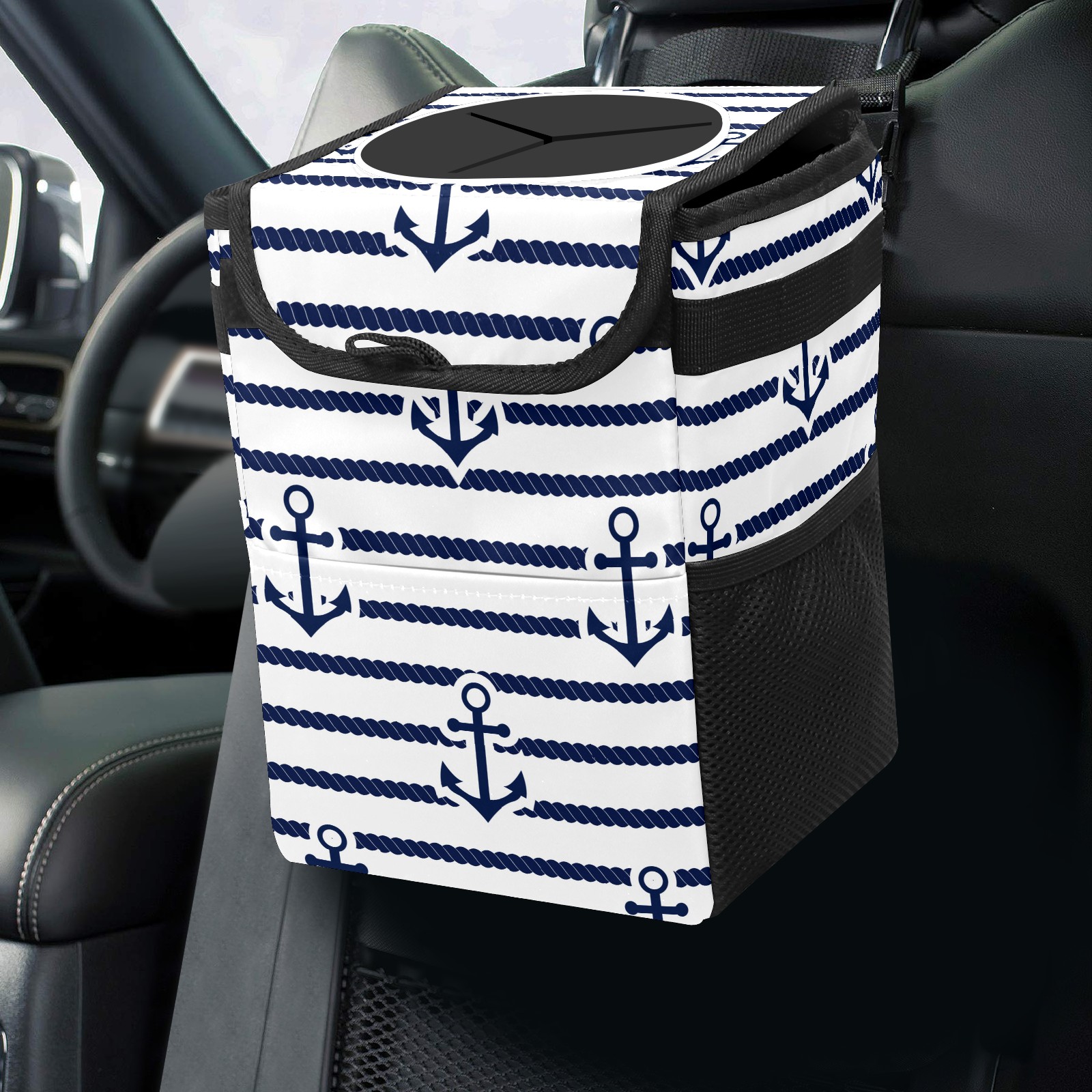 Car Garbage Can — Multi-functional, Lightweight Portable, Reusable Vehicle Trash Can, Waterproof with Sufficient Storage Capacity Anchor Blue And White Stripes Pattern