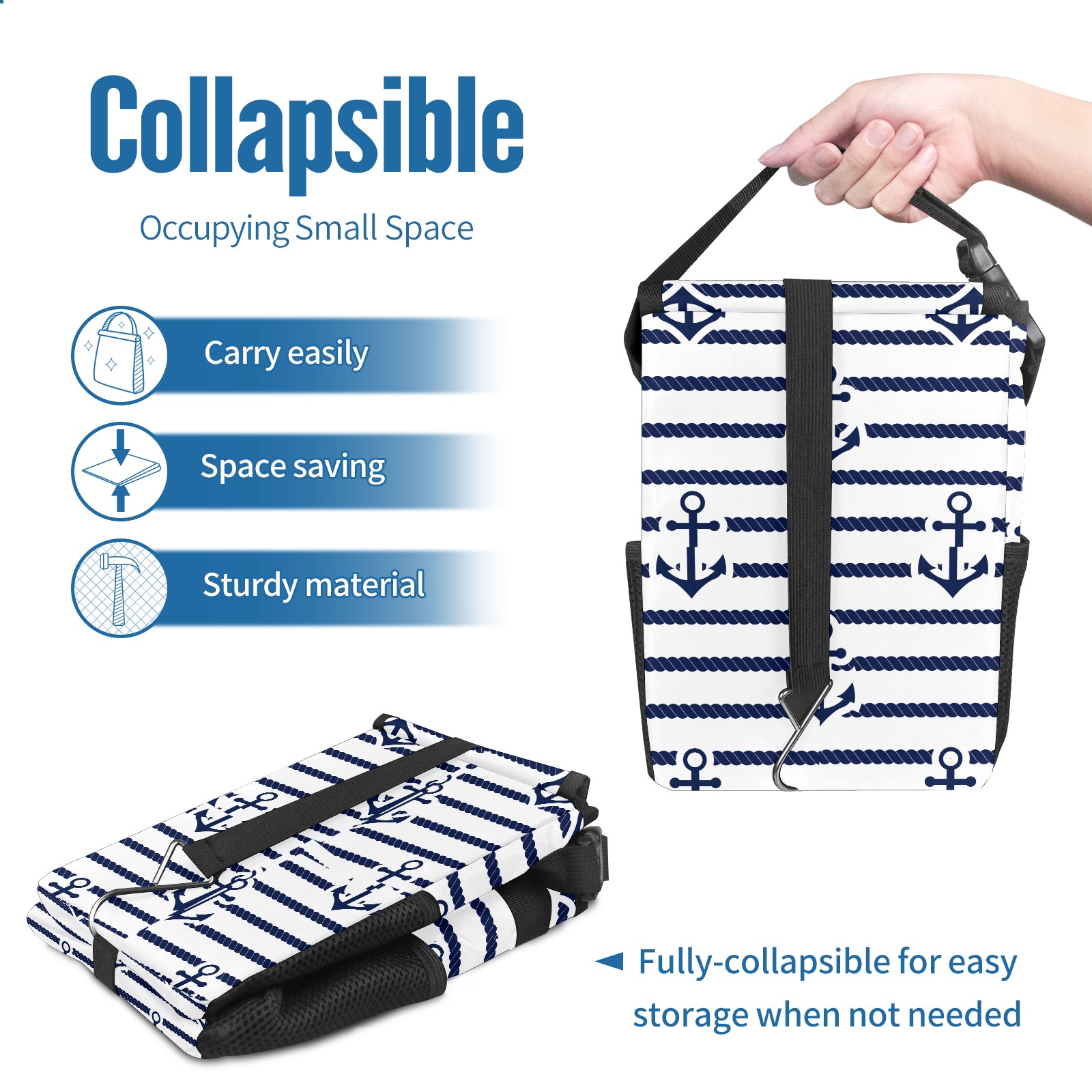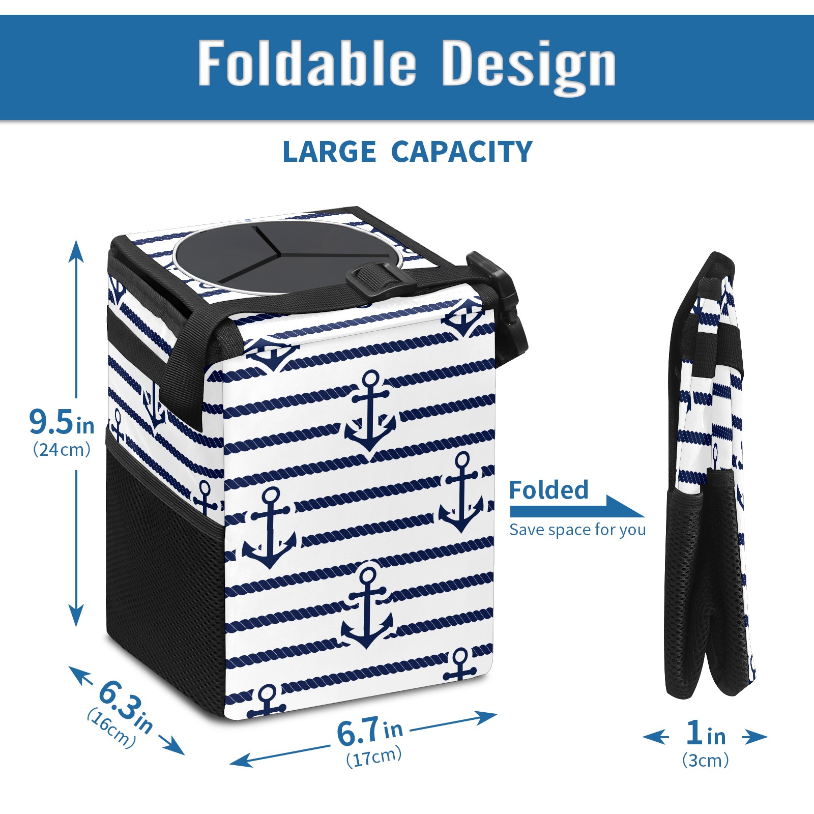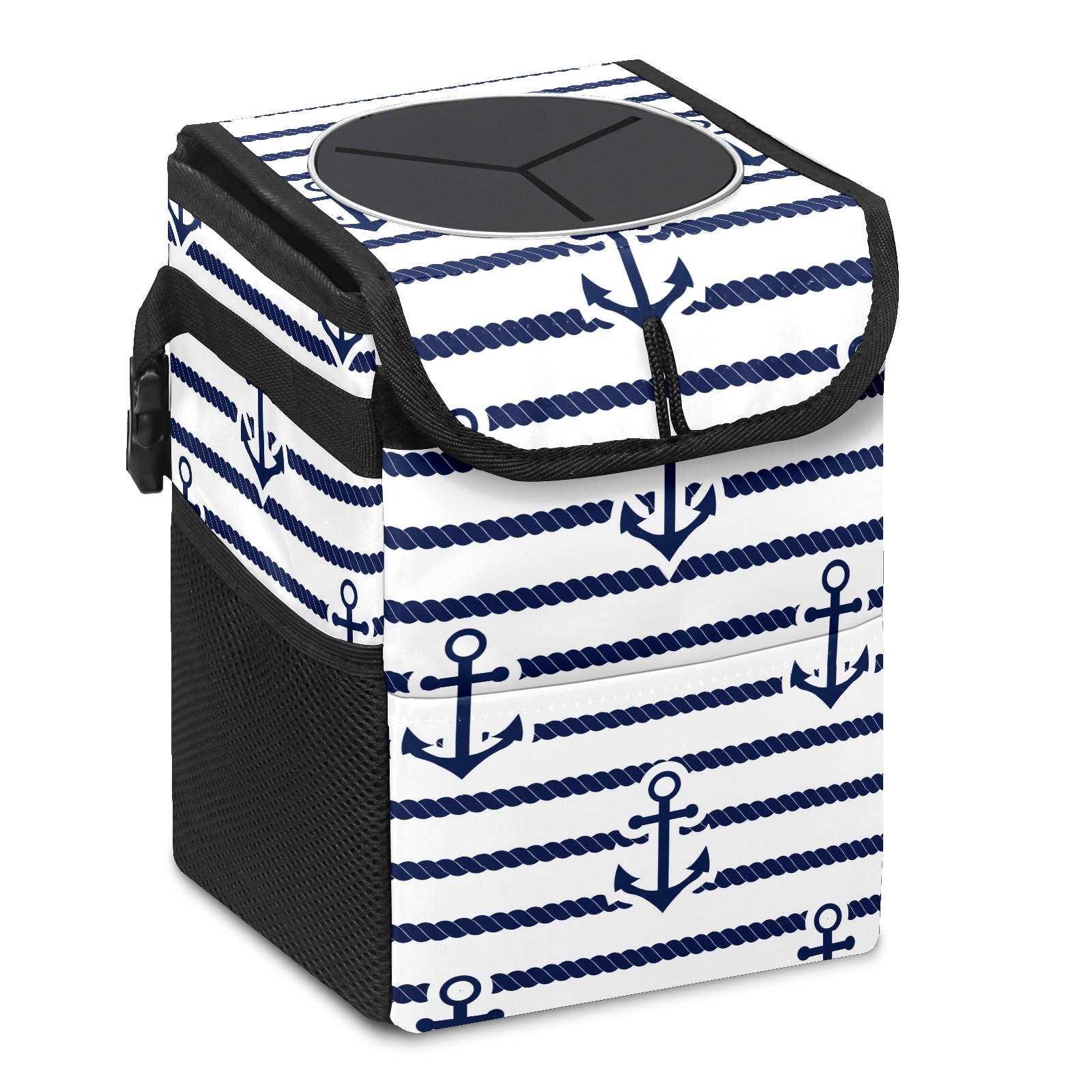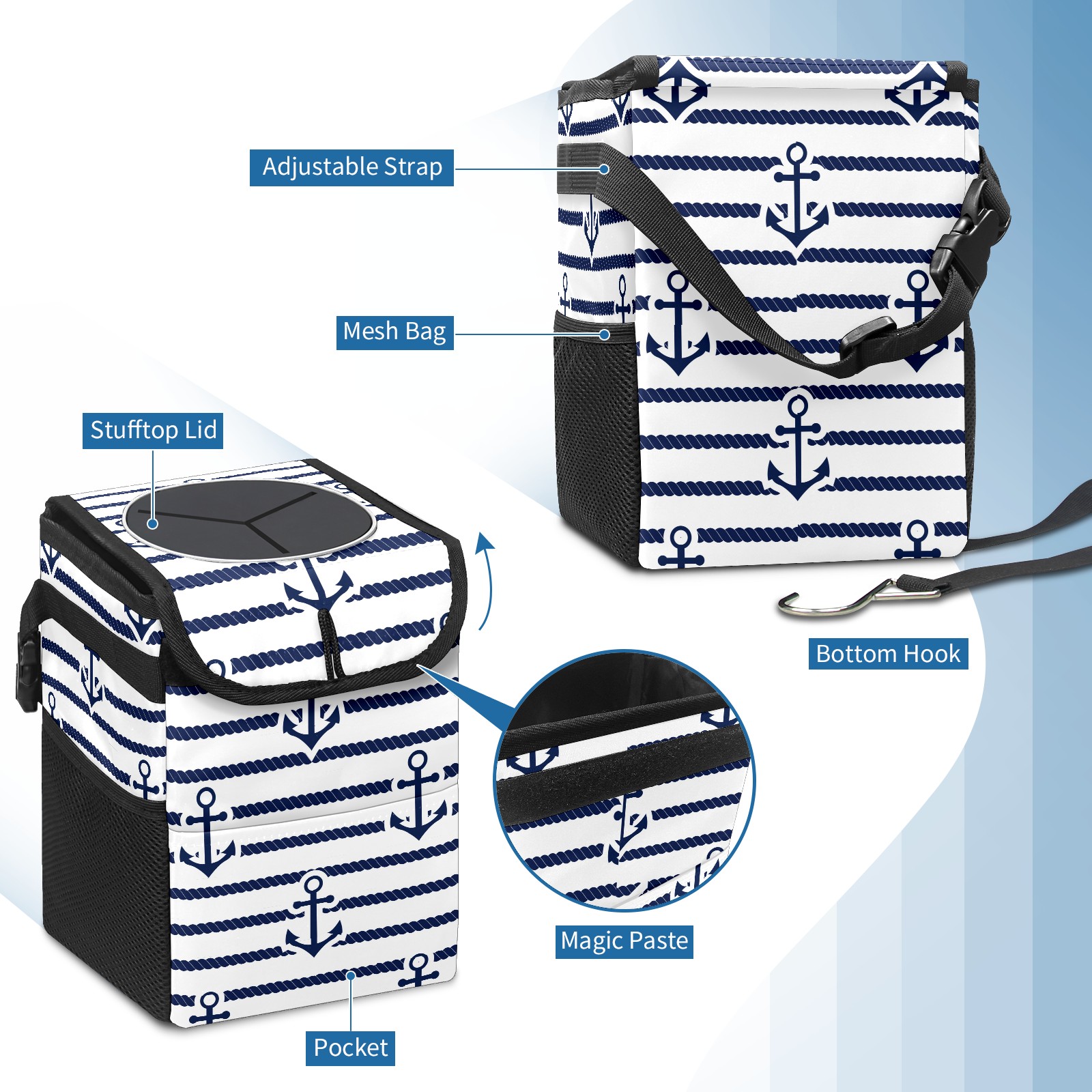 Car Garbage Can — Multi-functional, Lightweight Portable, Reusable Vehicle Trash Can, Waterproof with Sufficient Storage Capacity Anchor Blue And White Stripes Pattern