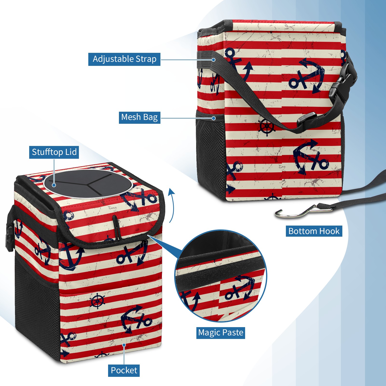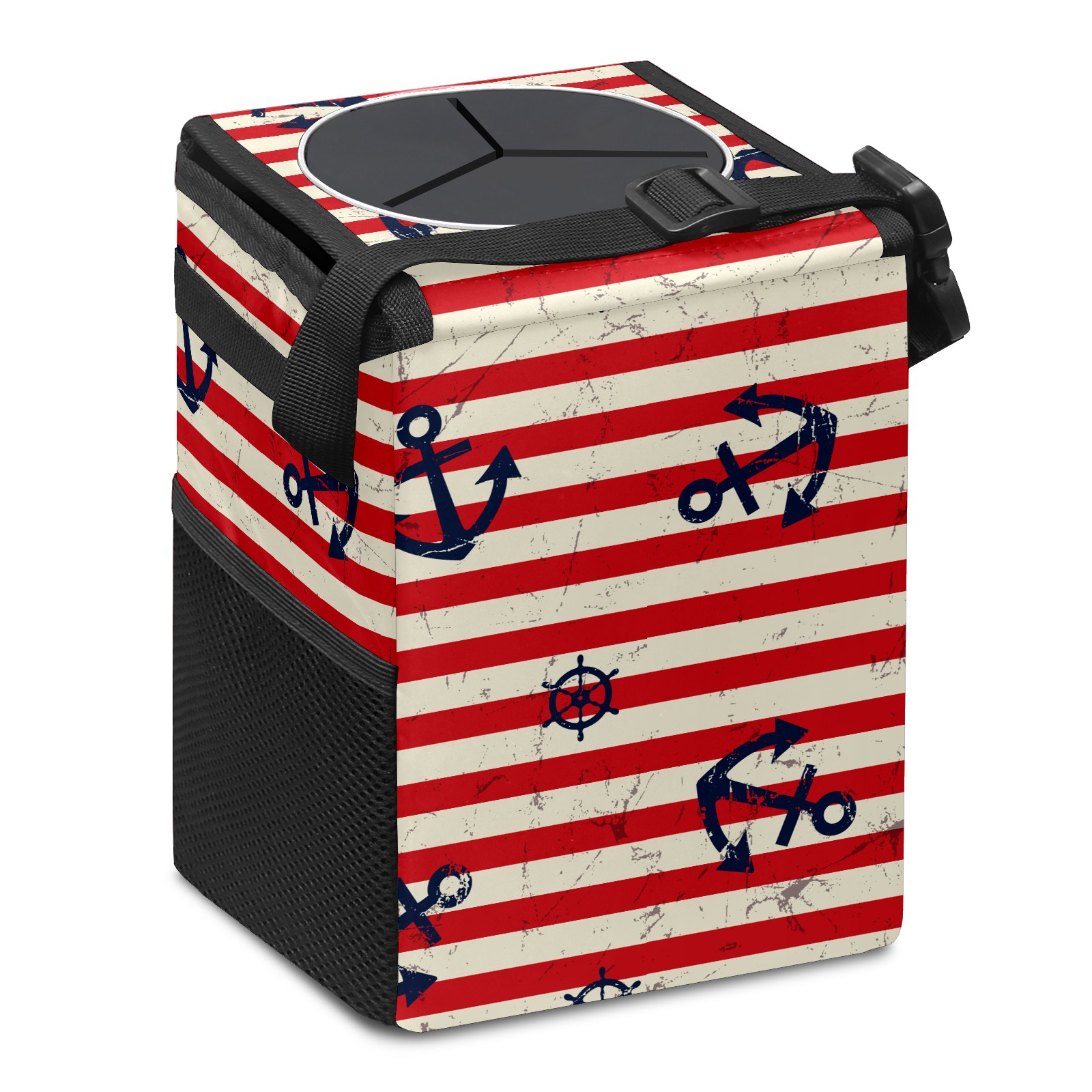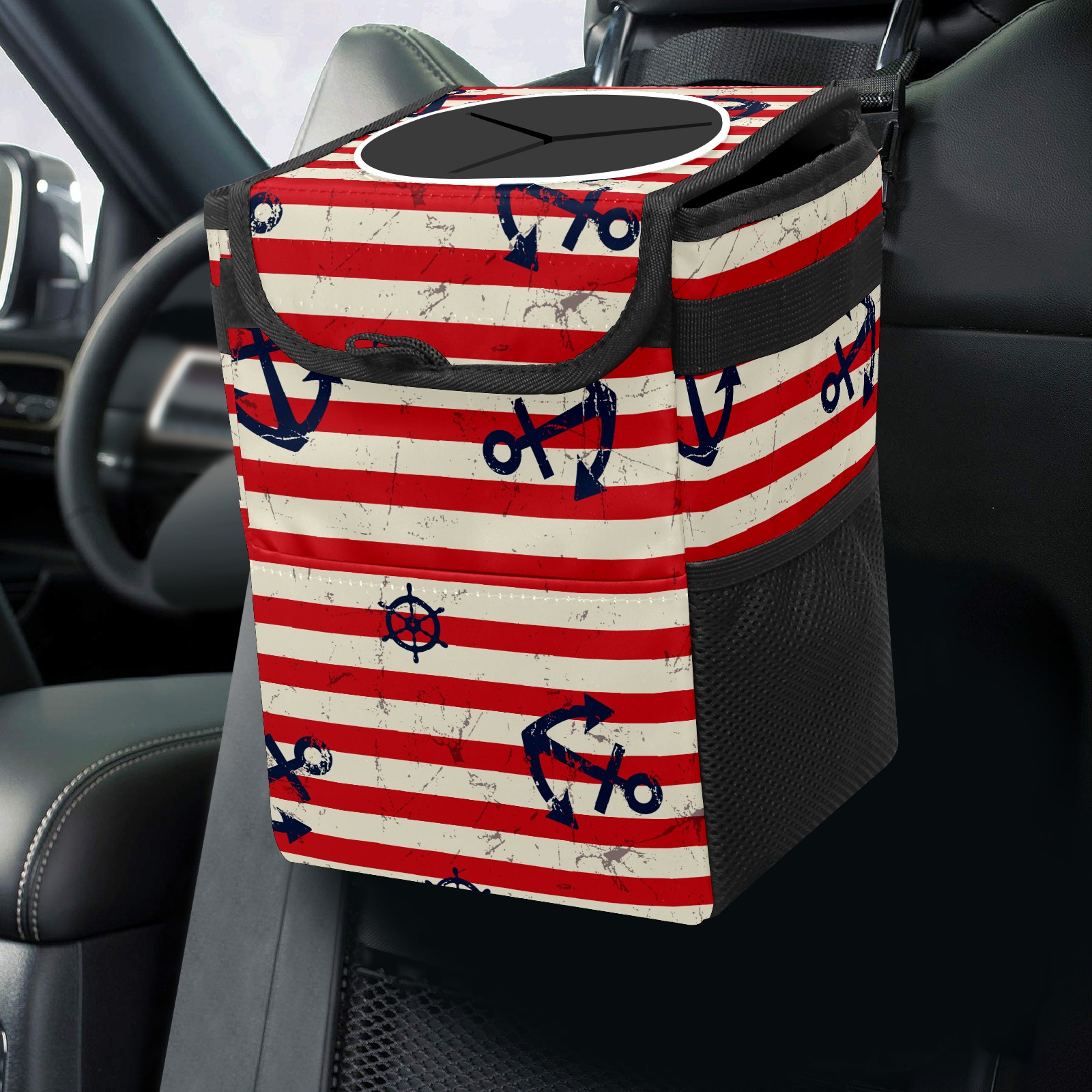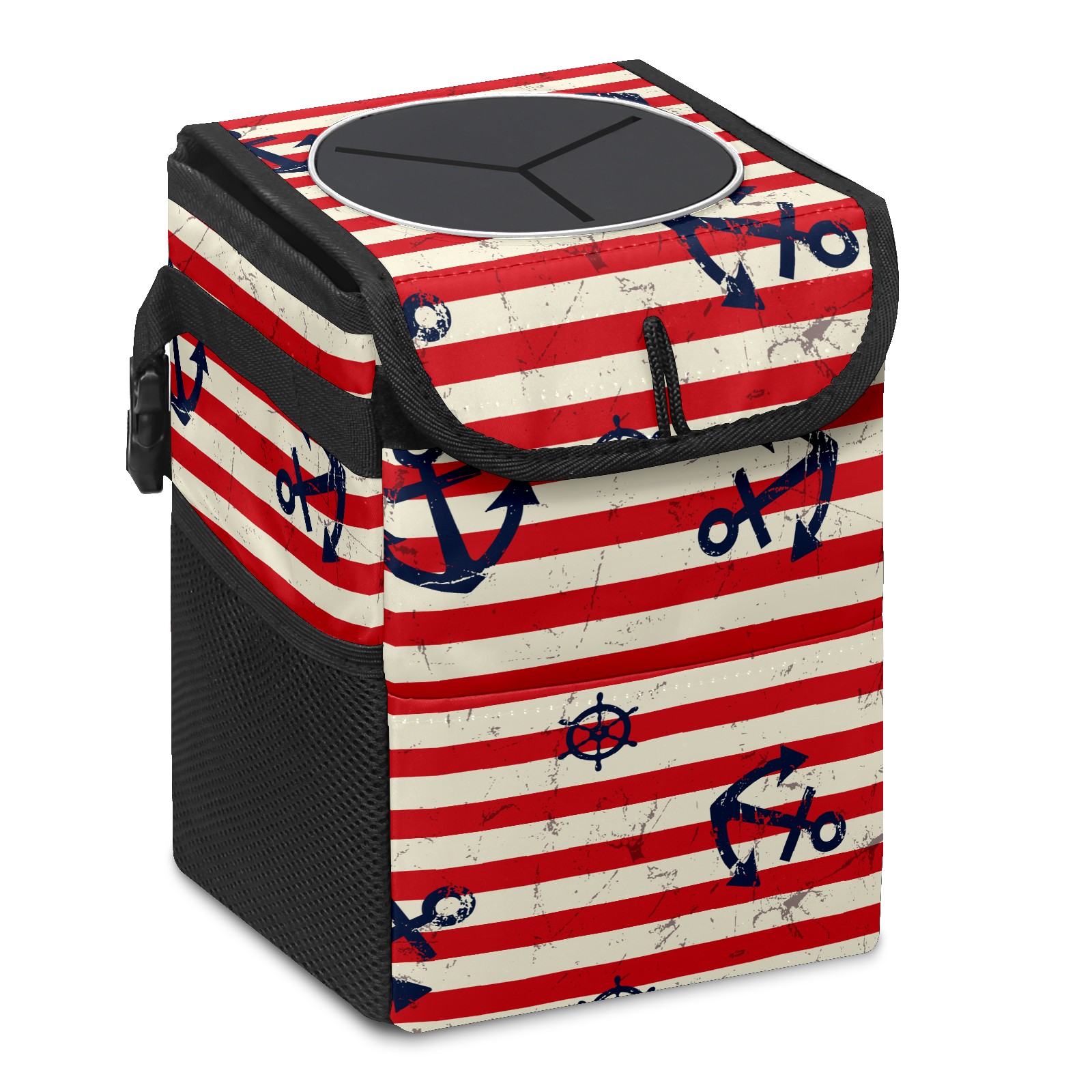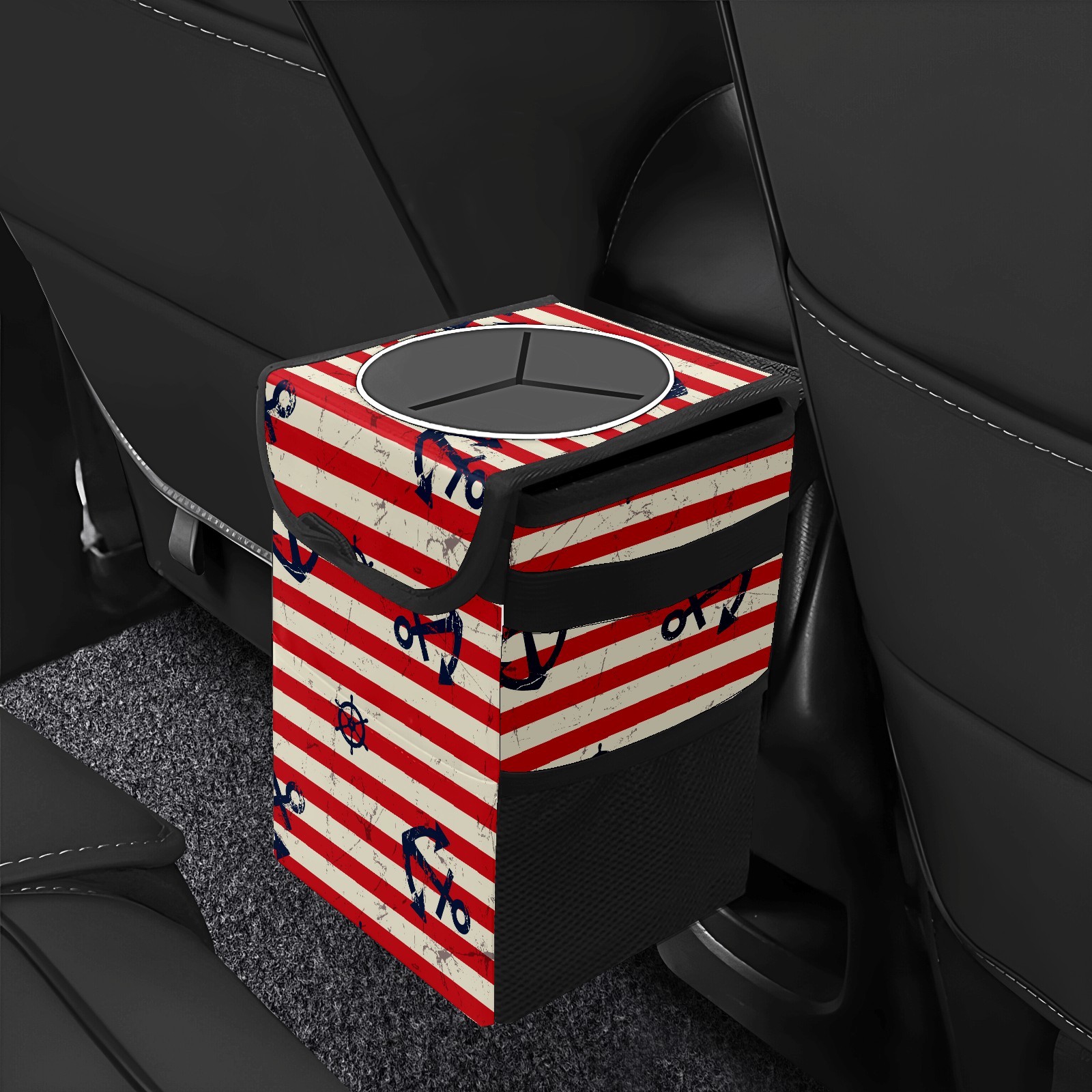Car Garbage Can — Multi-functional, Lightweight Portable, Reusable Vehicle Trash Can, Waterproof with Sufficient Storage Capacity Anchor And Red White Stripes