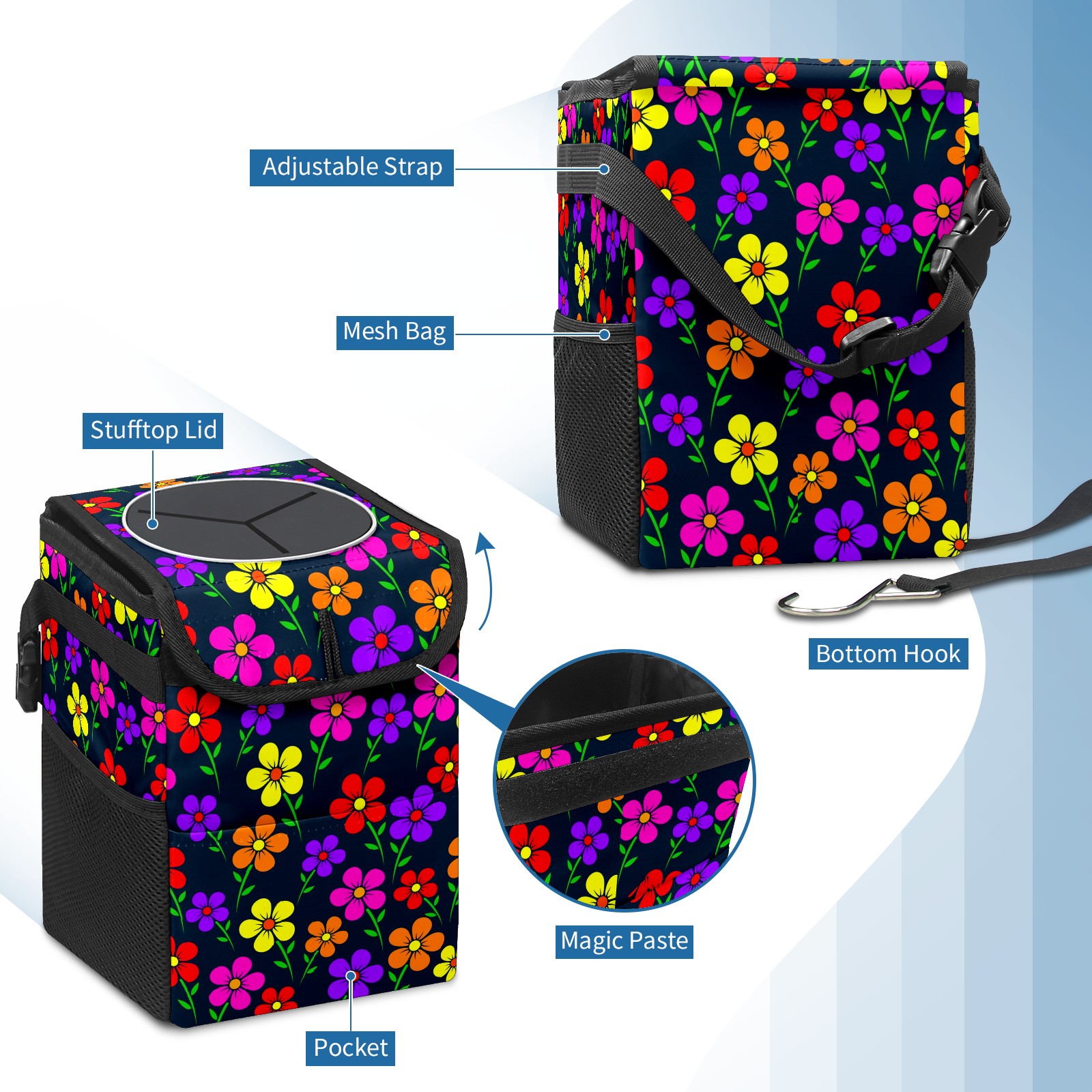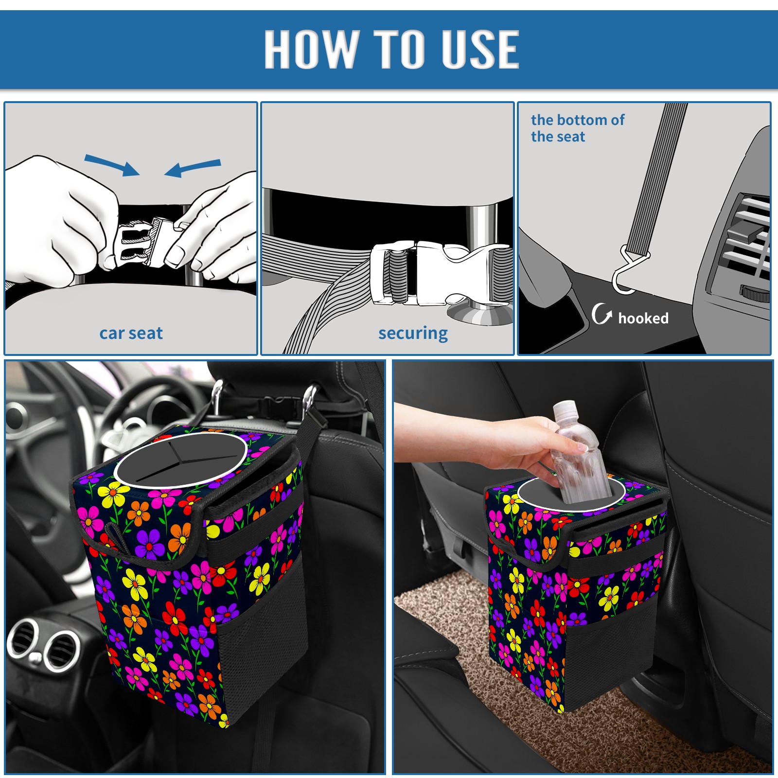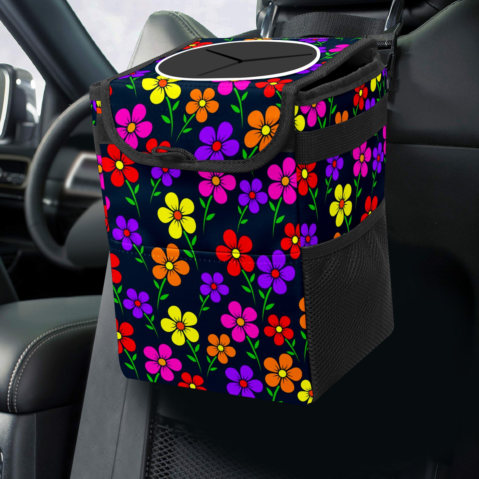 Car Garbage Can — Multi-functional, Lightweight Portable, Reusable Vehicle Trash Can, Waterproof with Sufficient Storage Capacity Flower