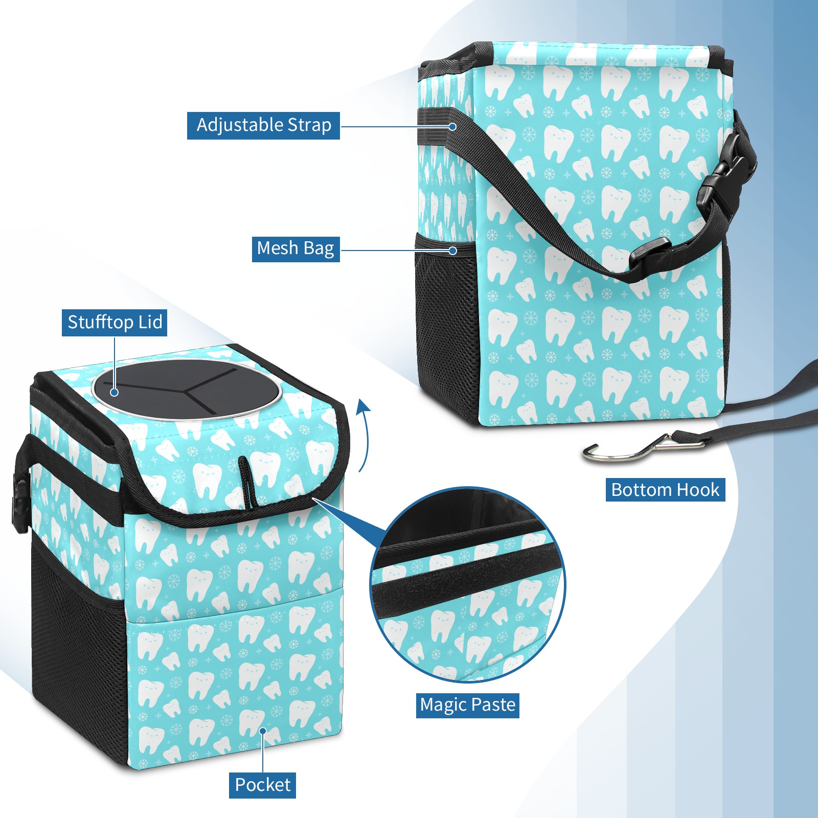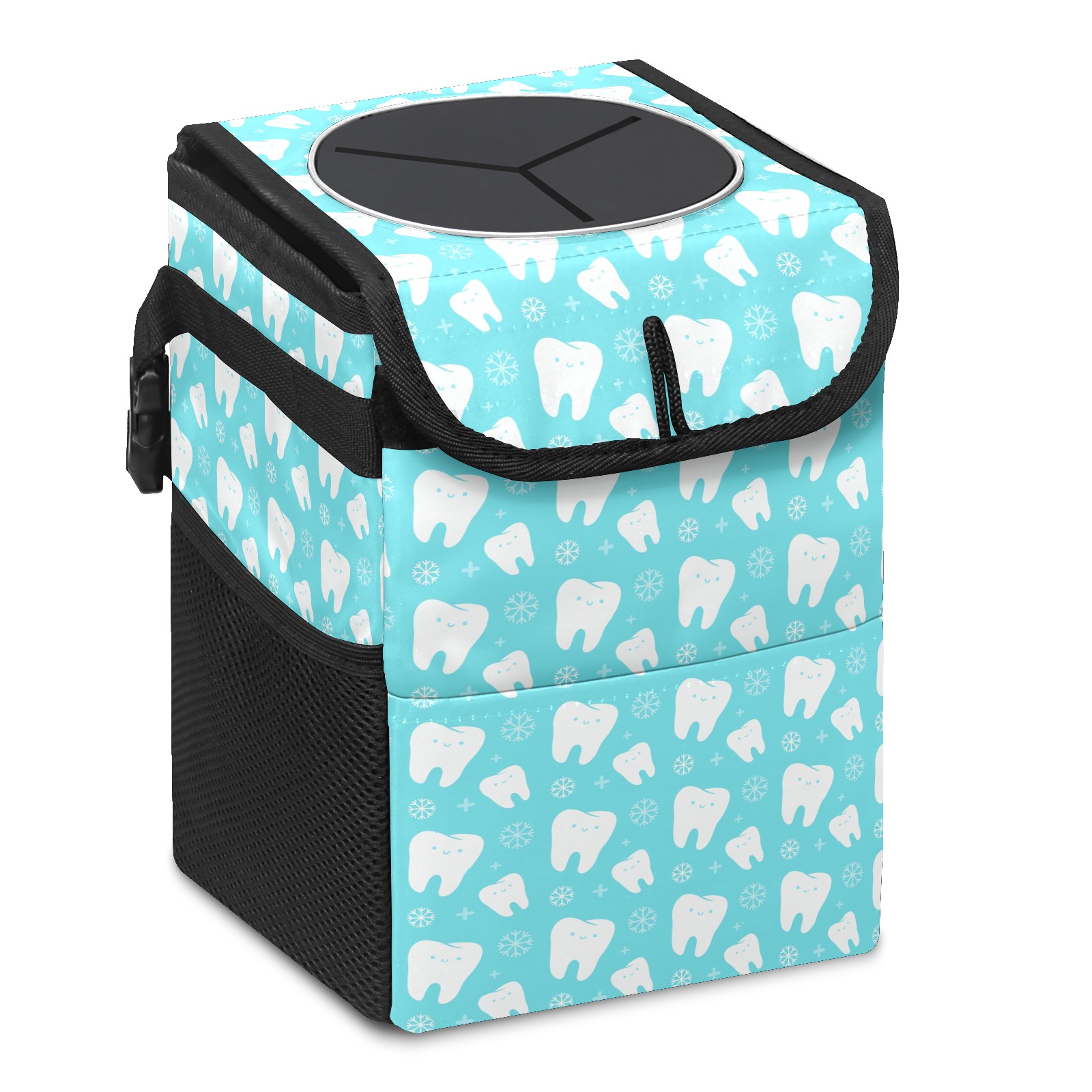 Car Garbage Can — Multi-functional, Lightweight Portable, Reusable Vehicle Trash Can, Waterproof with Sufficient Storage Capacity Cartoon Cute Teeth Blue