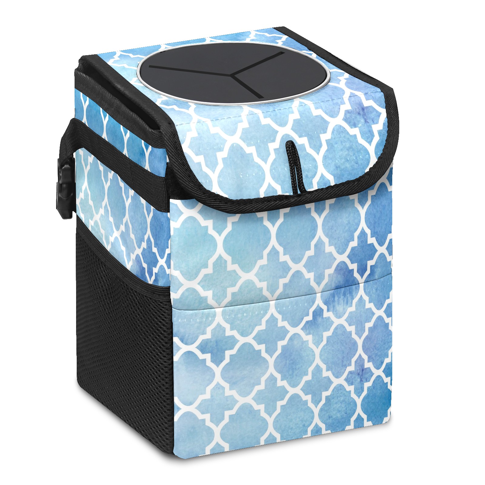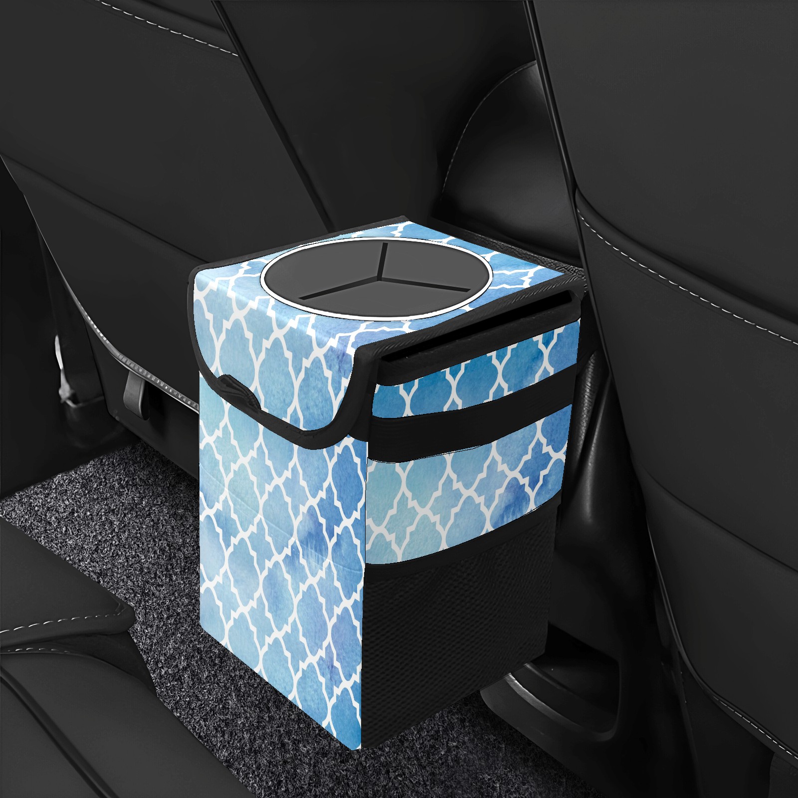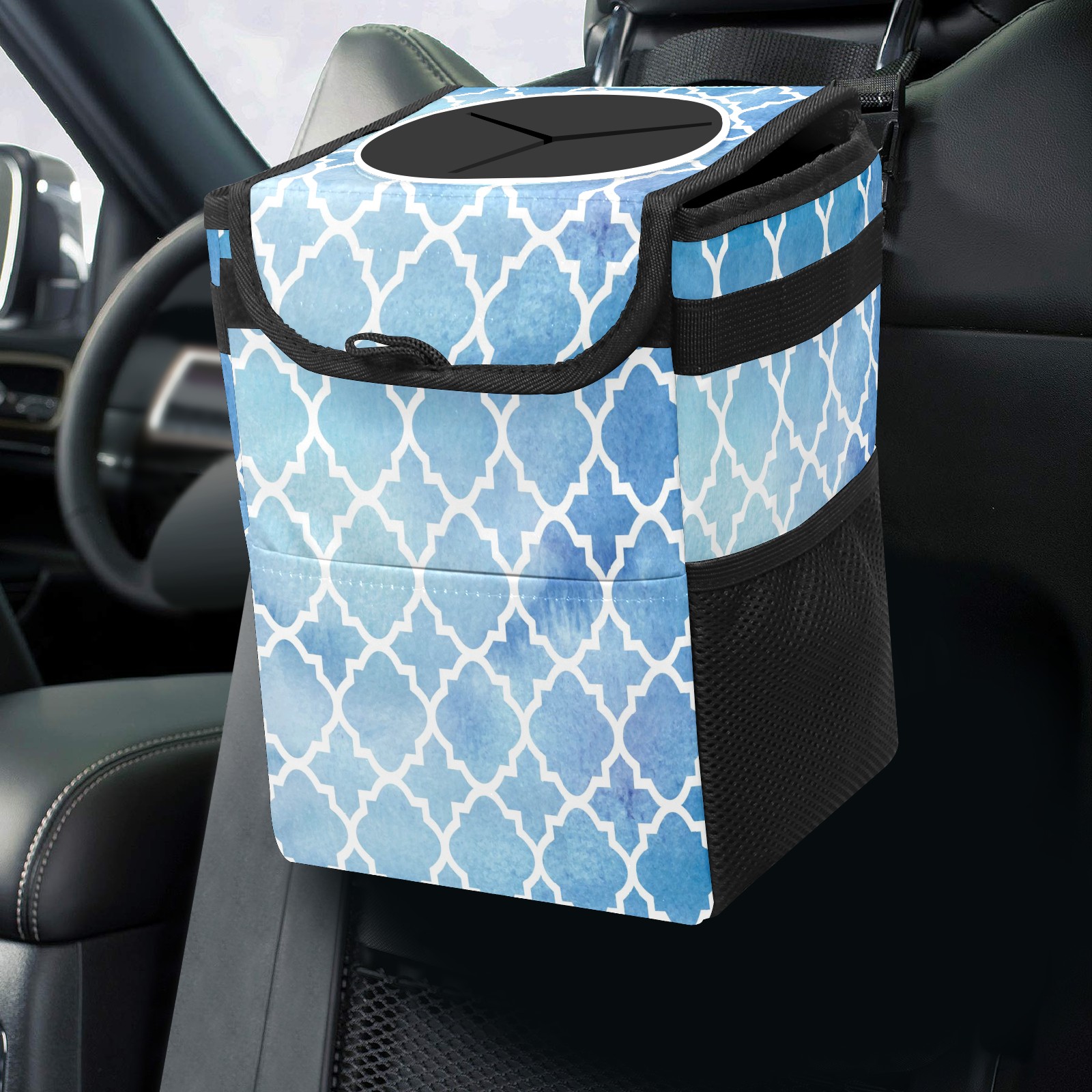 Car Garbage Can — Multi-functional, Lightweight Portable, Reusable Vehicle Trash Can, Waterproof with Sufficient Storage Capacity Geometric Mosaic Pattern Blue