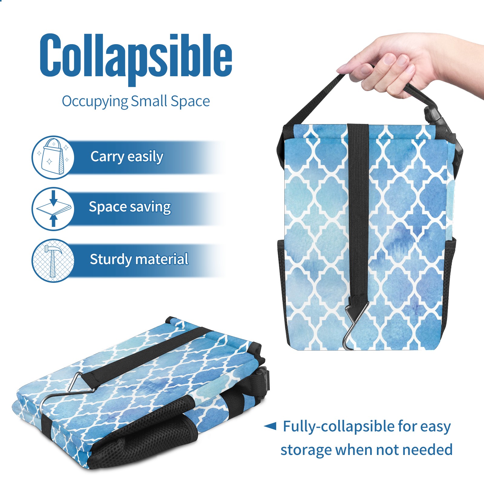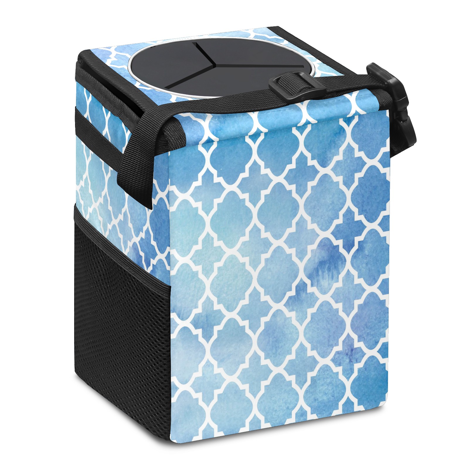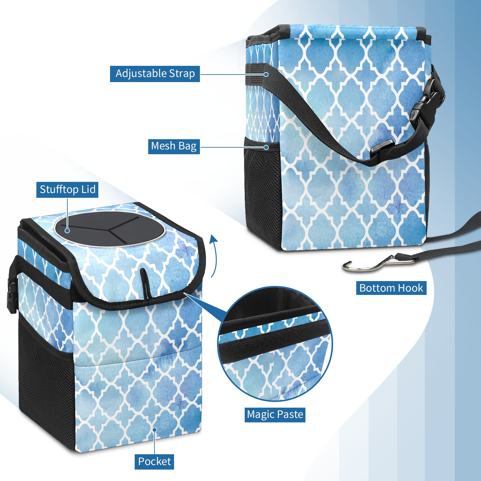 Car Garbage Can — Multi-functional, Lightweight Portable, Reusable Vehicle Trash Can, Waterproof with Sufficient Storage Capacity Geometric Mosaic Pattern Blue