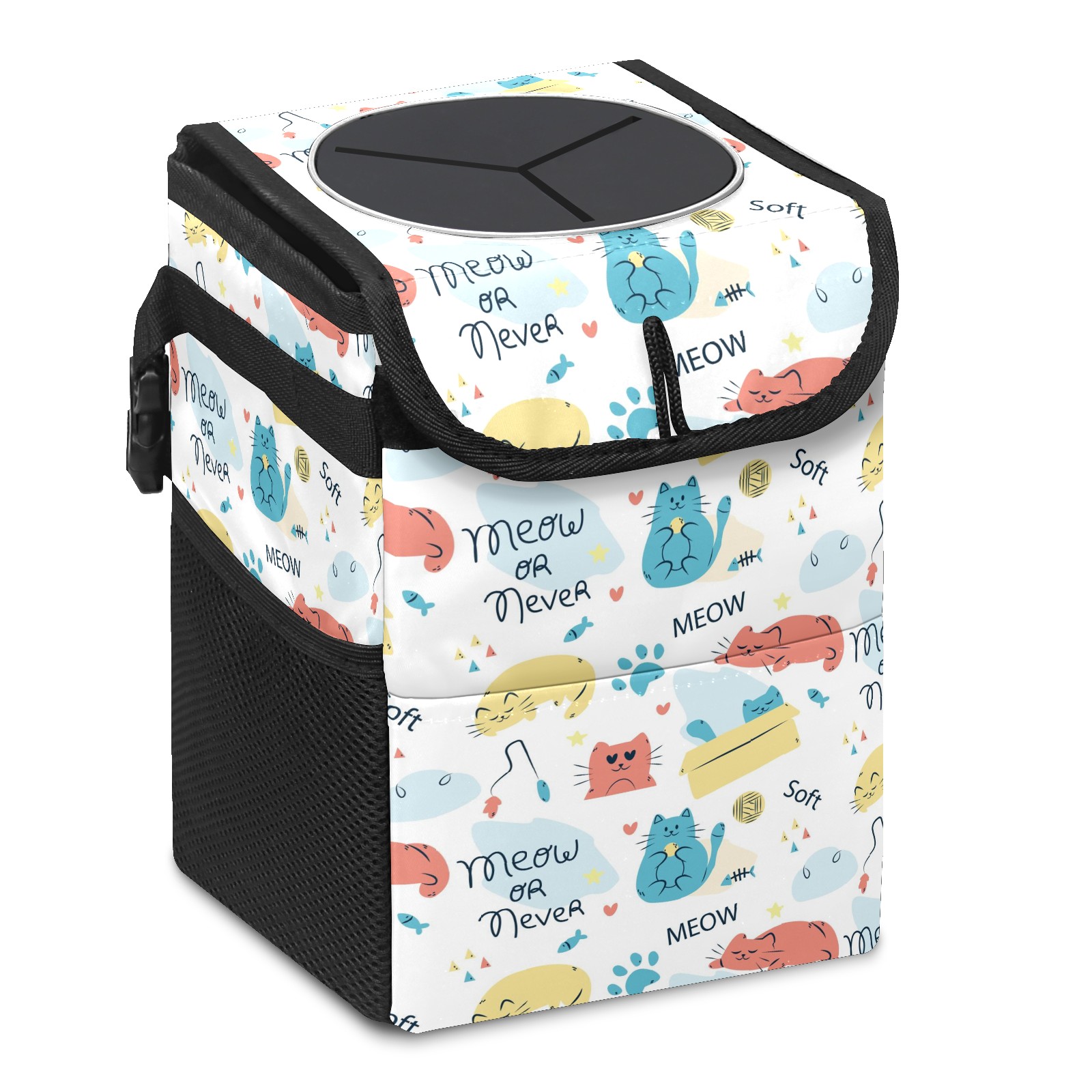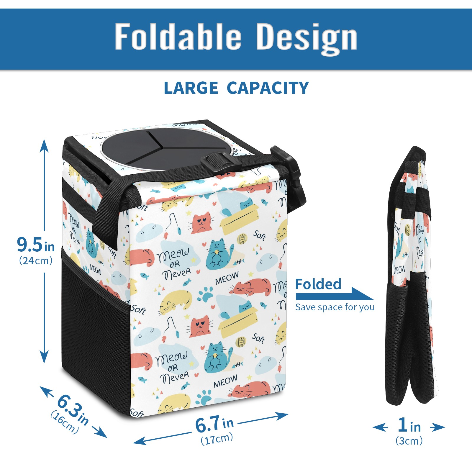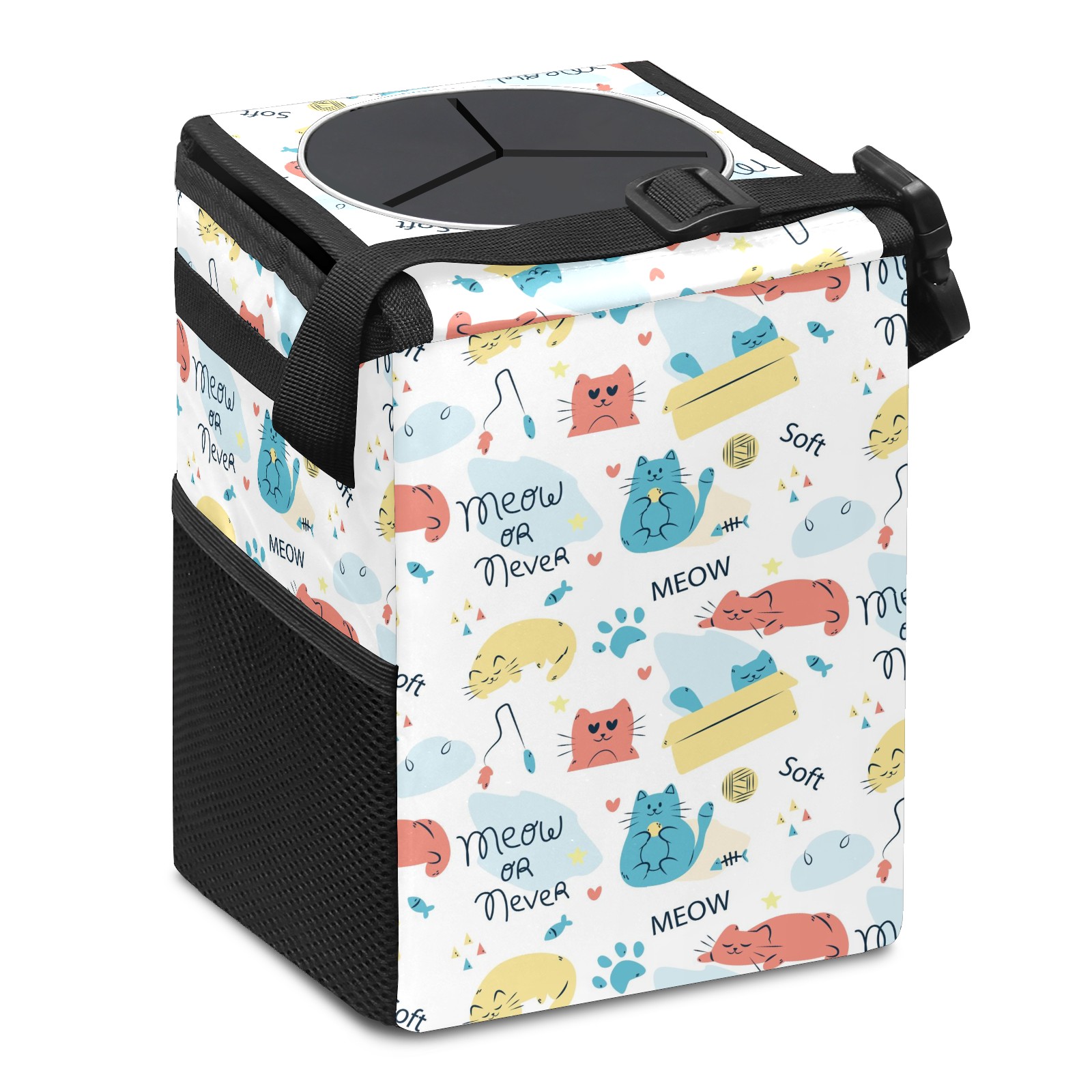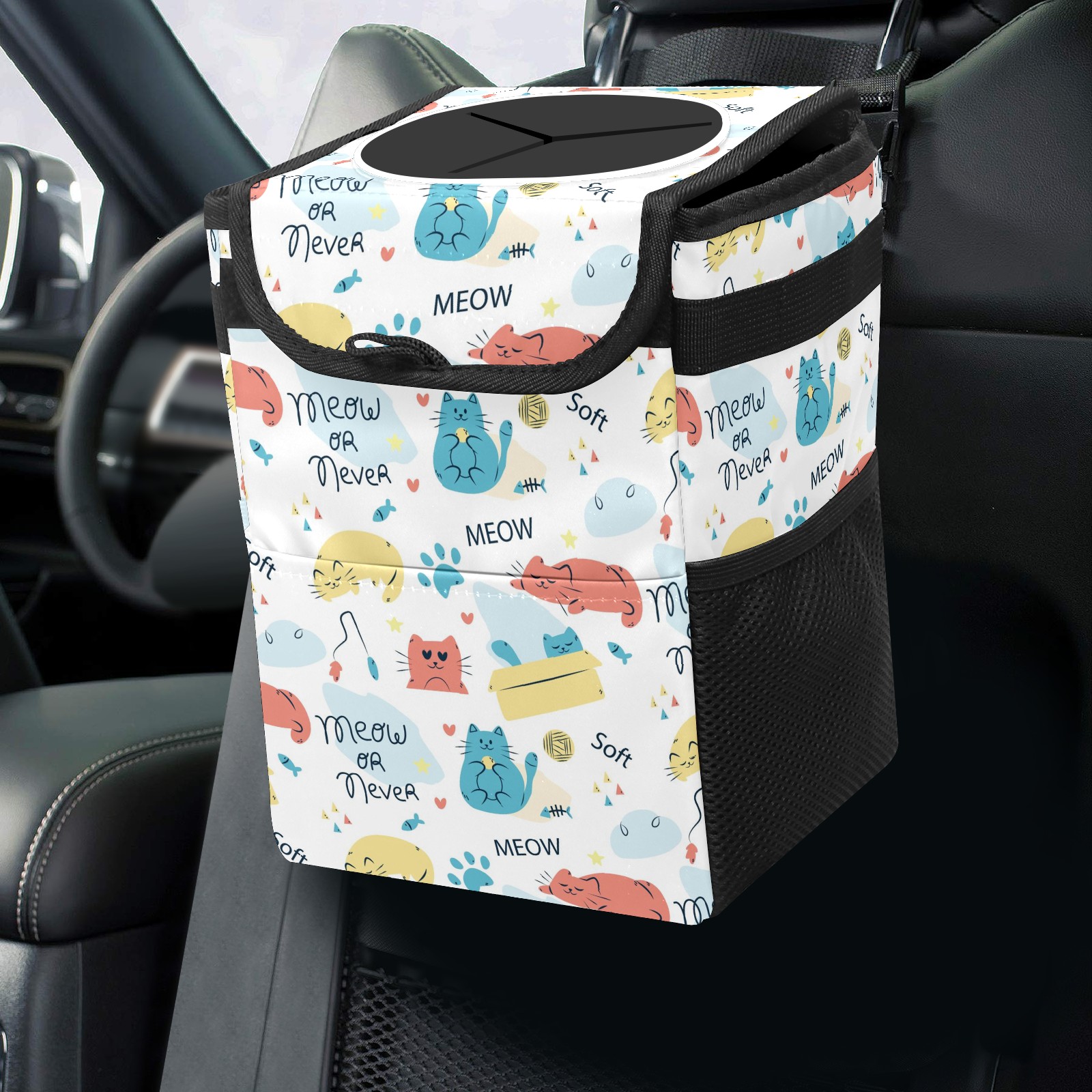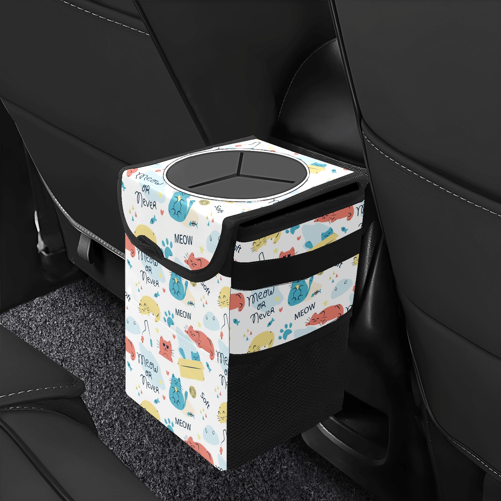 Car Garbage Can — Multi-functional, Lightweight Portable, Reusable Vehicle Trash Can, Waterproof with Sufficient Storage Capacity Doodle Cat Meow Word Cartoon Fish Pattern