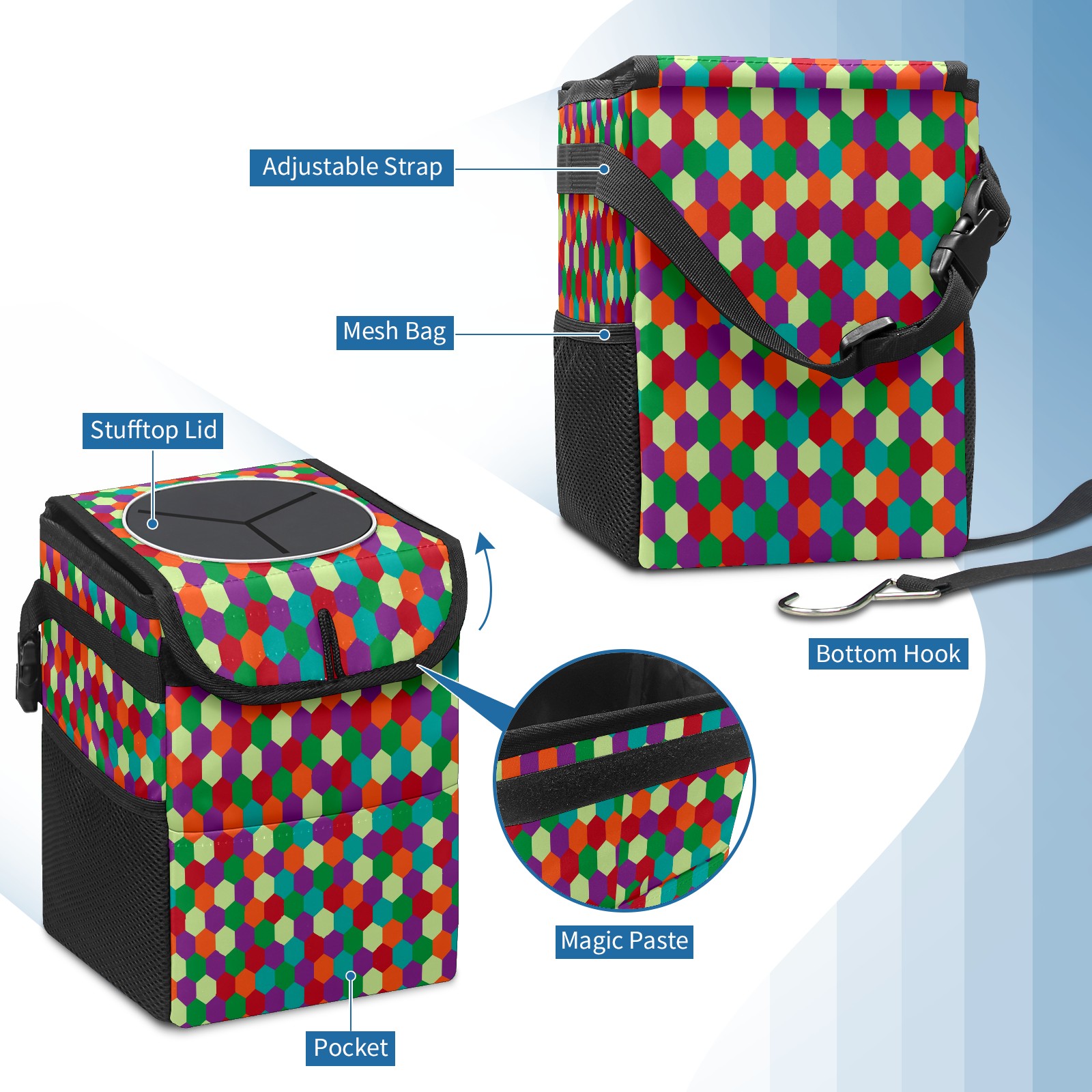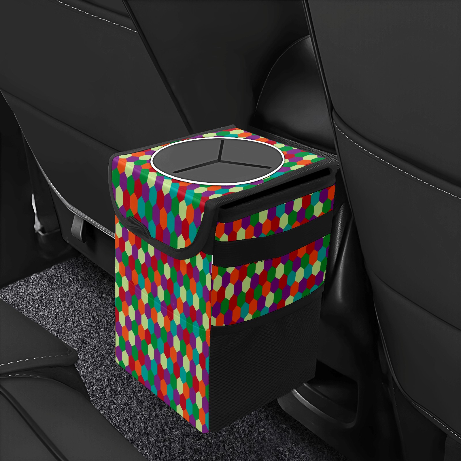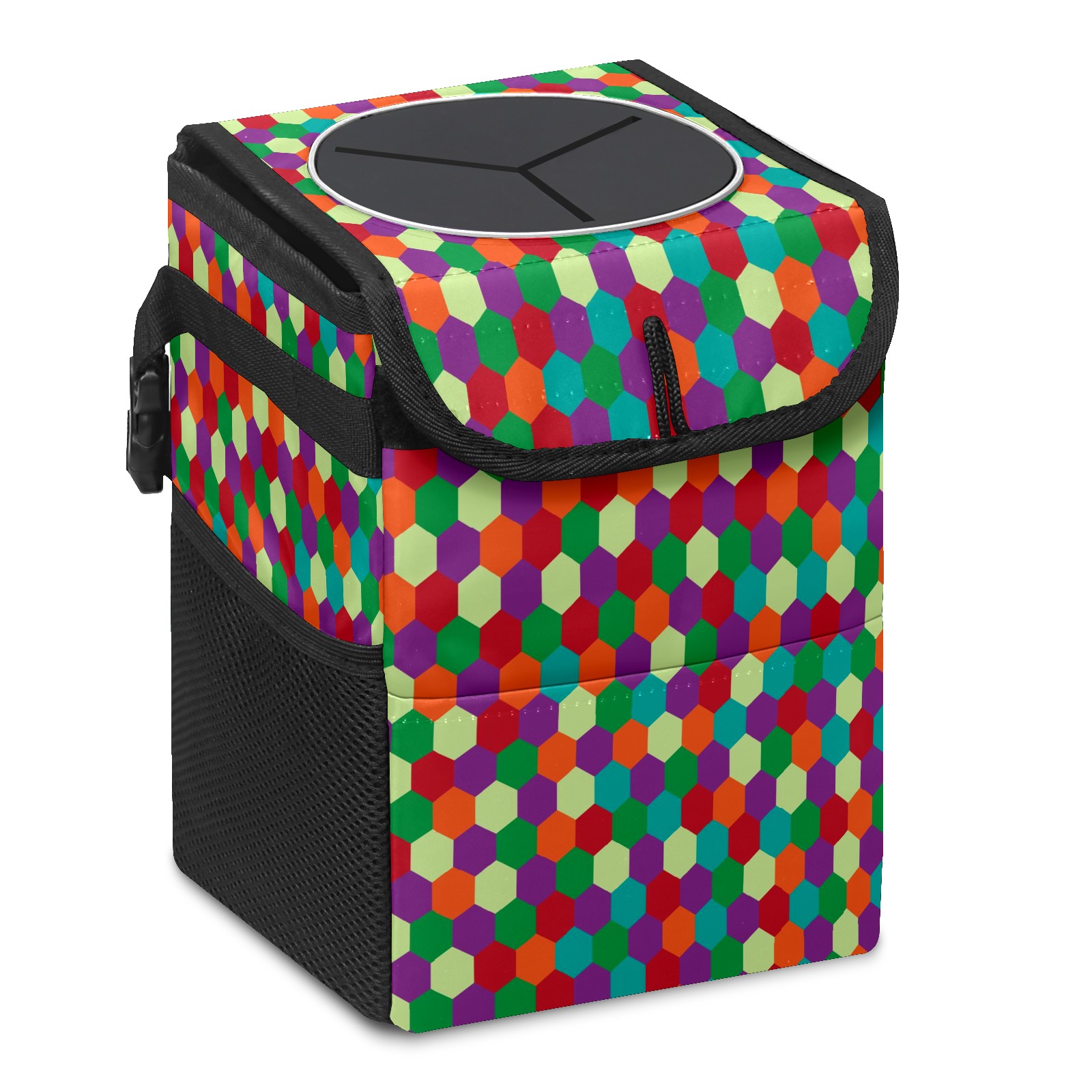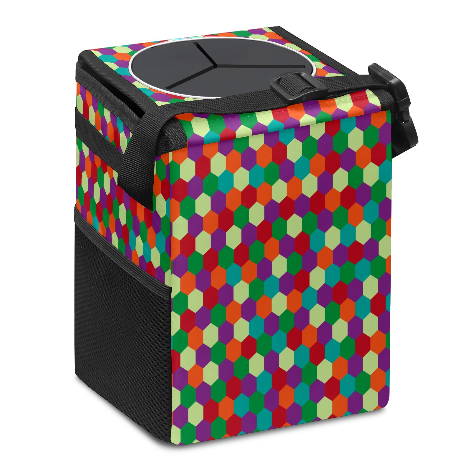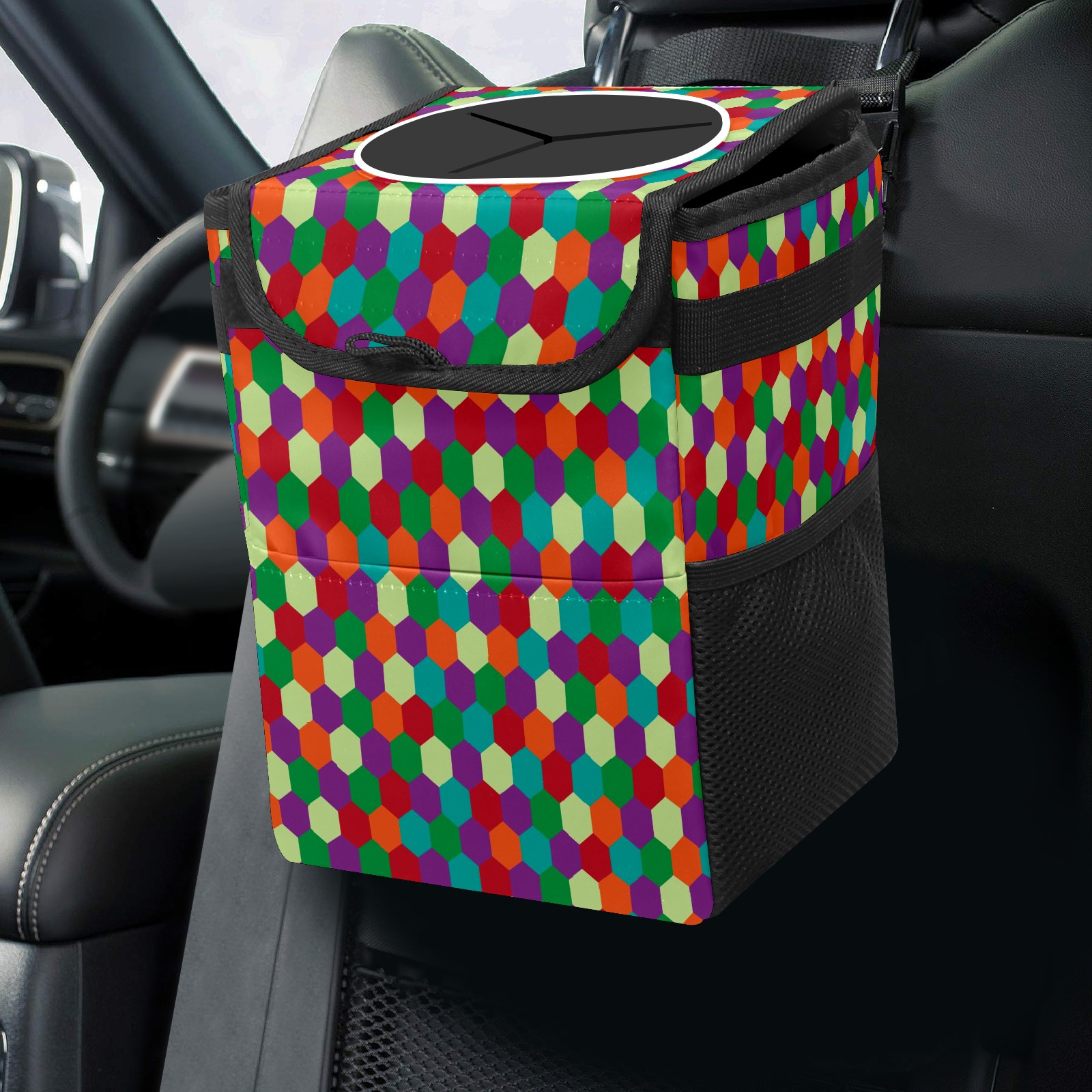 Car Garbage Can — Multi-functional, Lightweight Portable, Reusable Vehicle Trash Can, Waterproof with Sufficient Storage Capacity Colorful Hexagon Pattern Purple Blue Green Red