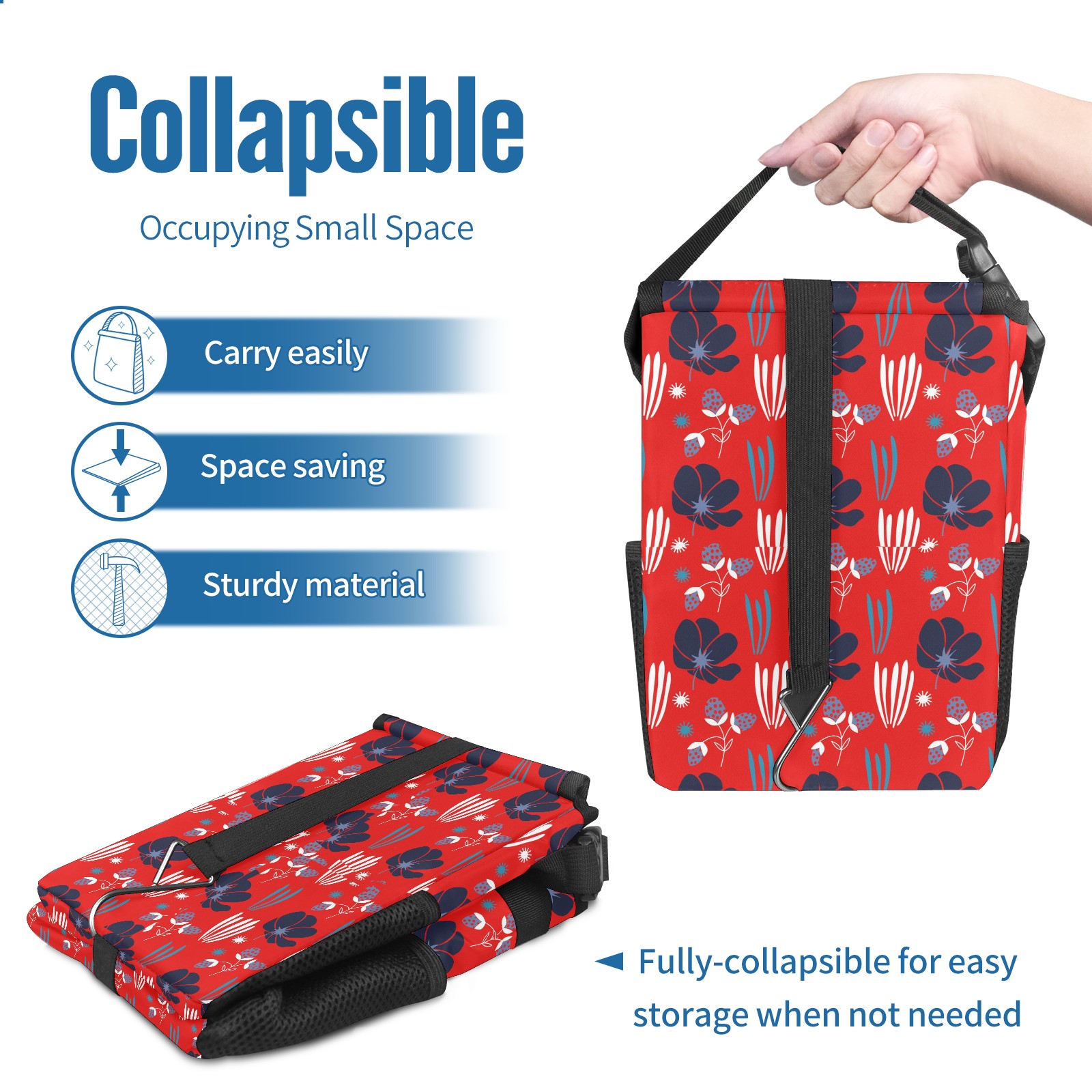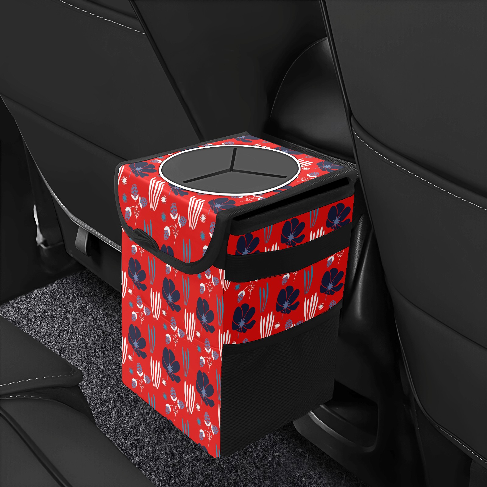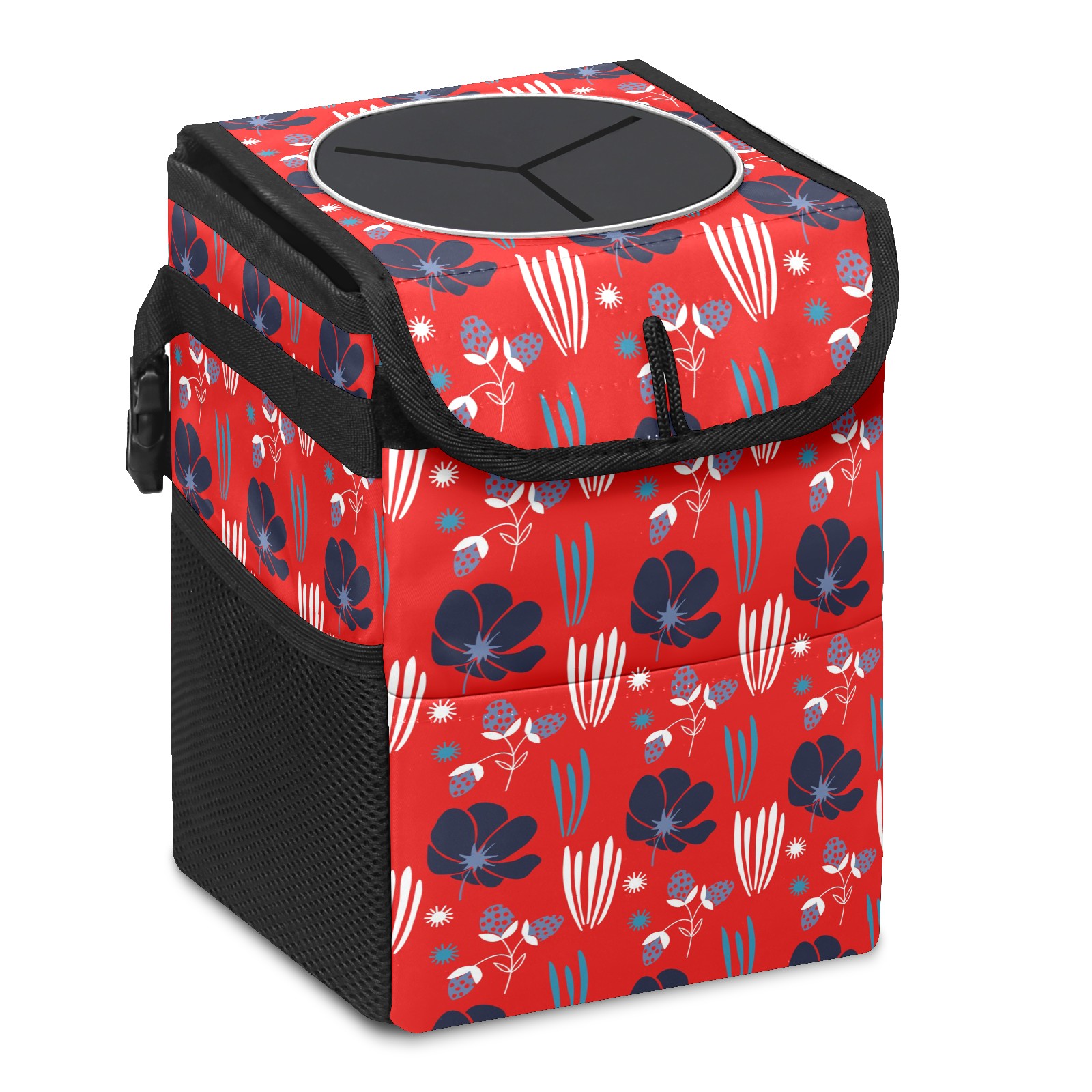 Car Garbage Can — Multi-functional, Lightweight Portable, Reusable Vehicle Trash Can, Waterproof with Sufficient Storage Capacity Blue Strawberry Floral Red Background