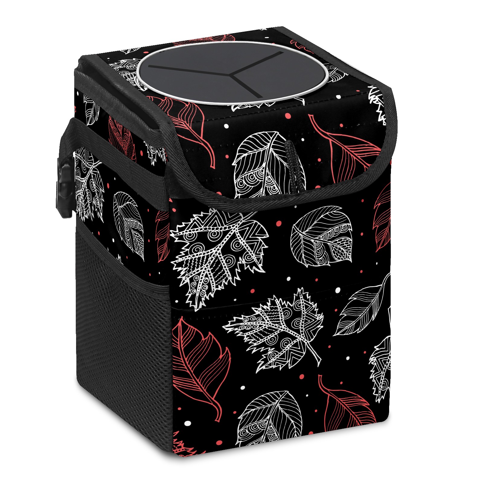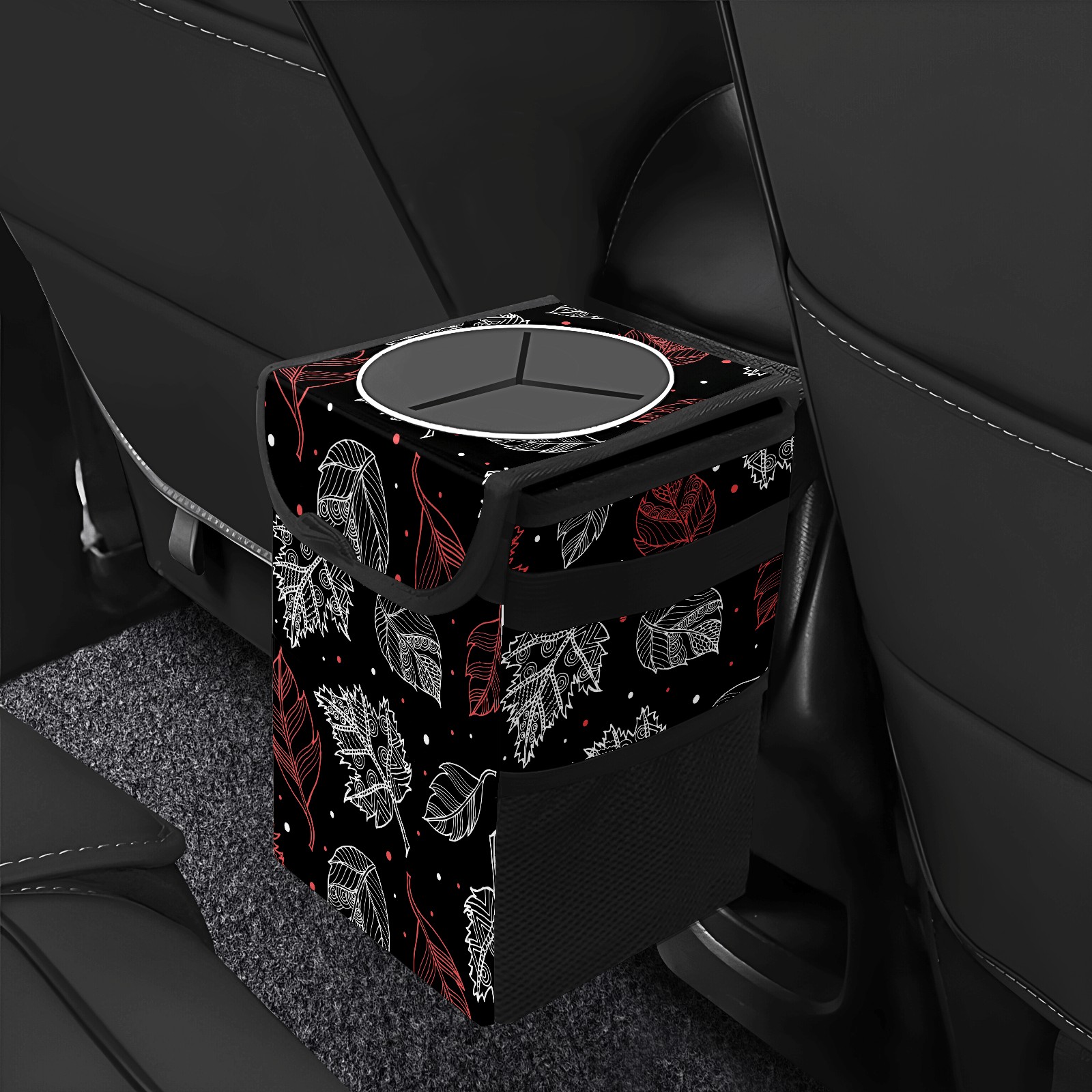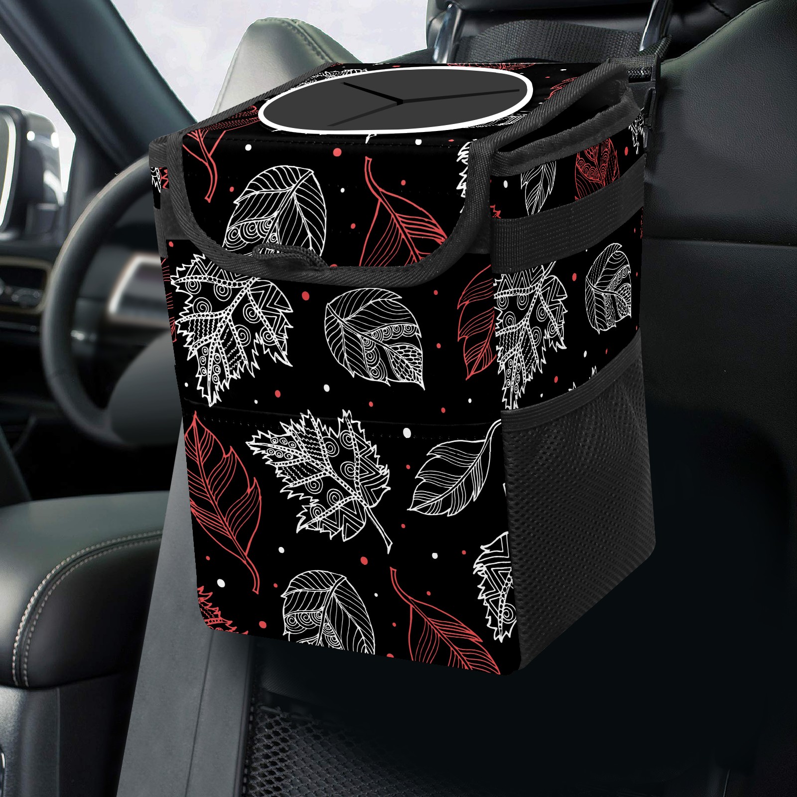 Car Garbage Can — Multi-functional, Lightweight Portable, Reusable Vehicle Trash Can, Waterproof with Sufficient Storage Capacity Autumn Pink White Leaves Dot Black Background