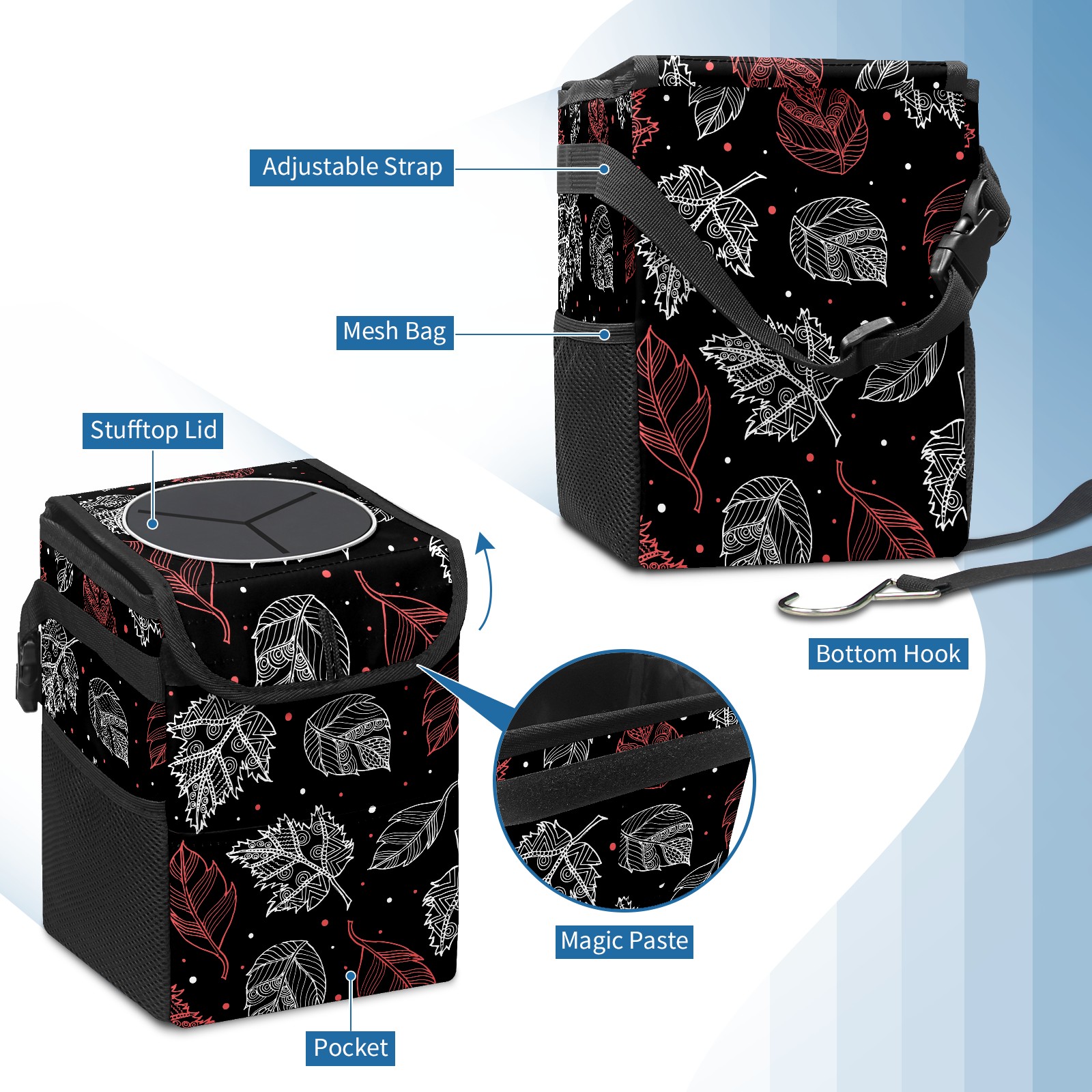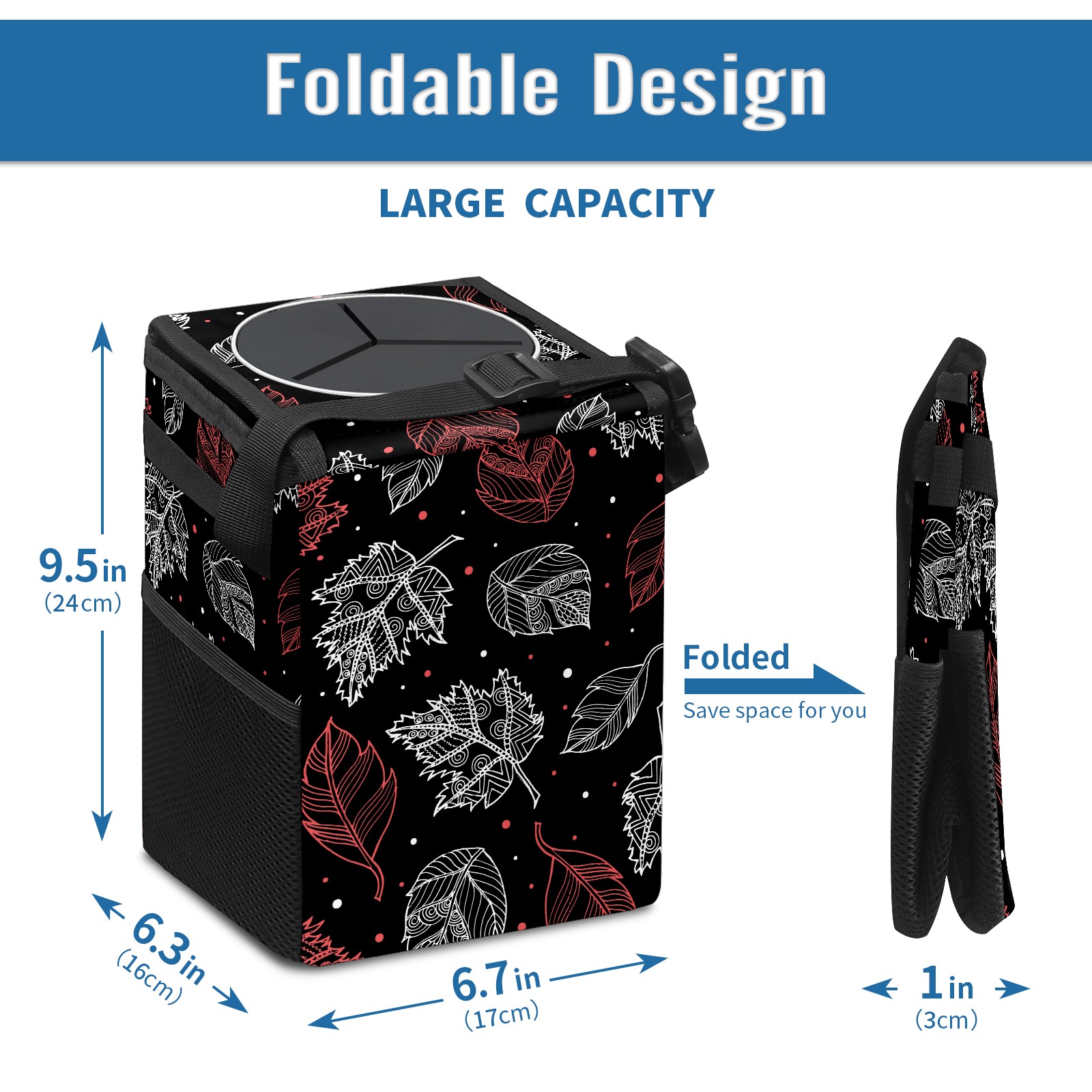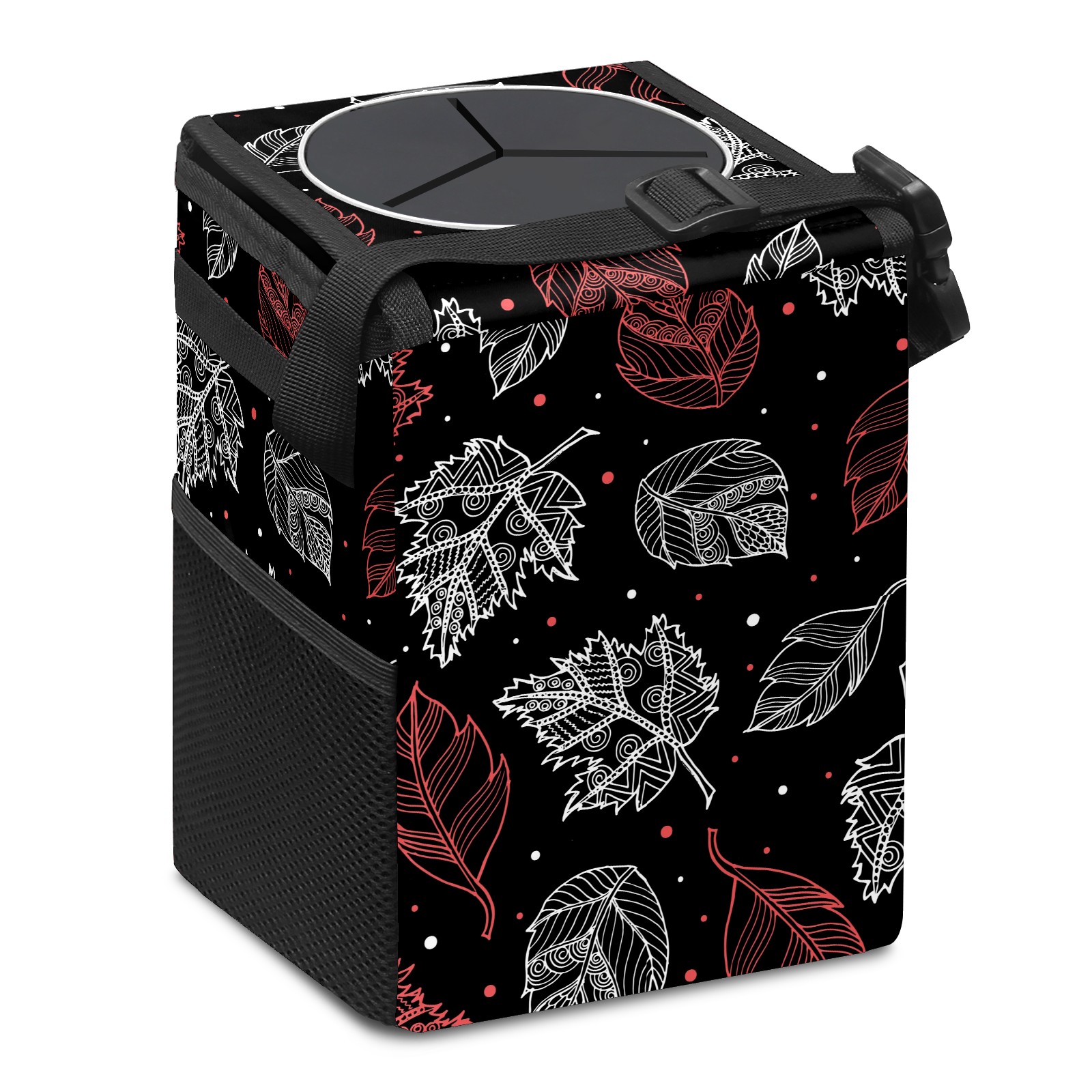 Car Garbage Can — Multi-functional, Lightweight Portable, Reusable Vehicle Trash Can, Waterproof with Sufficient Storage Capacity Autumn Pink White Leaves Dot Black Background