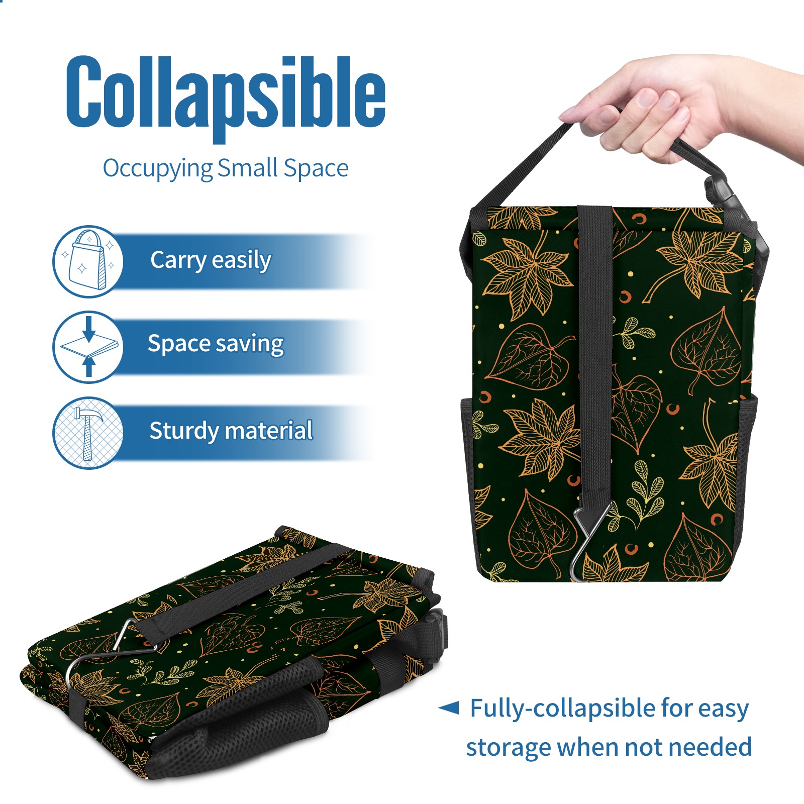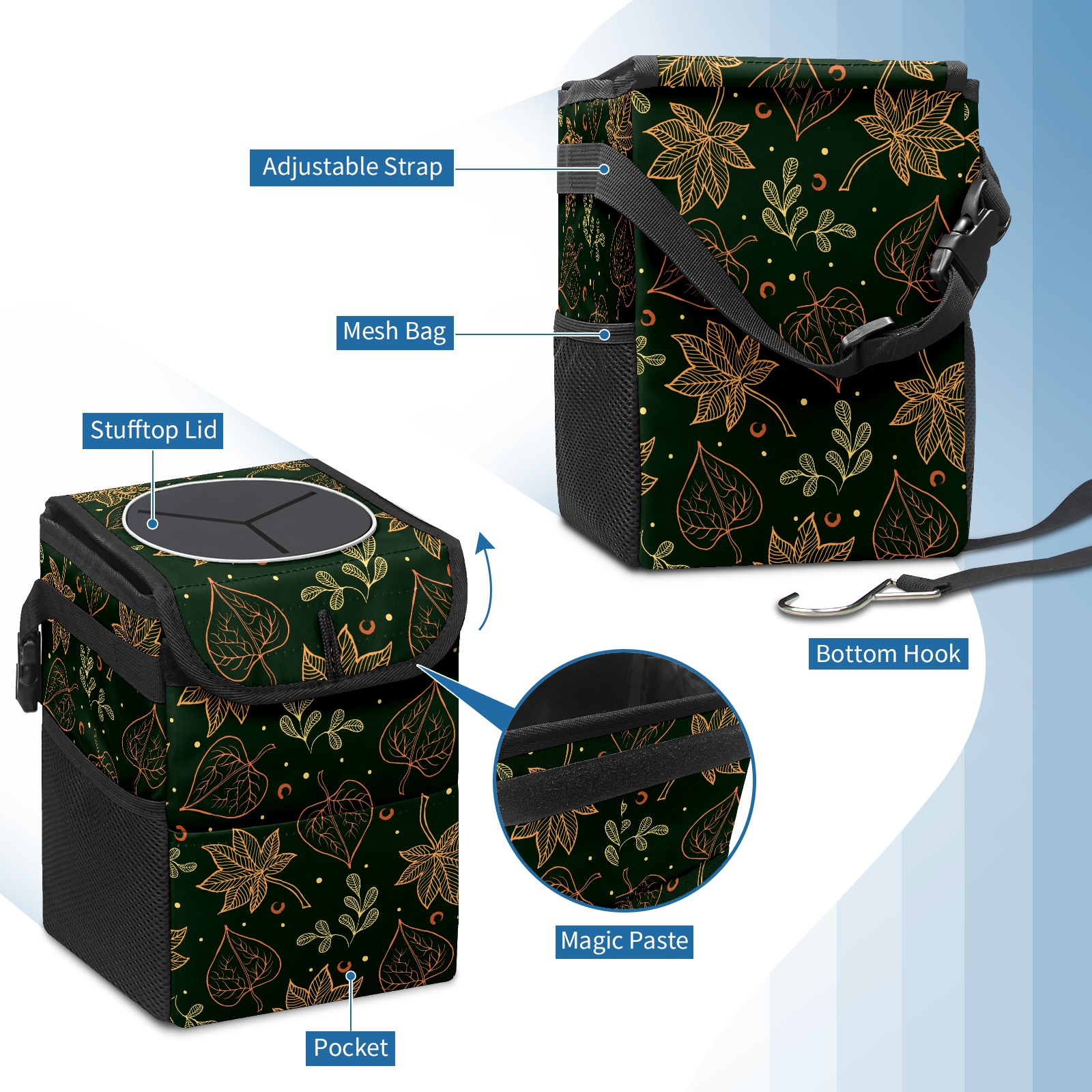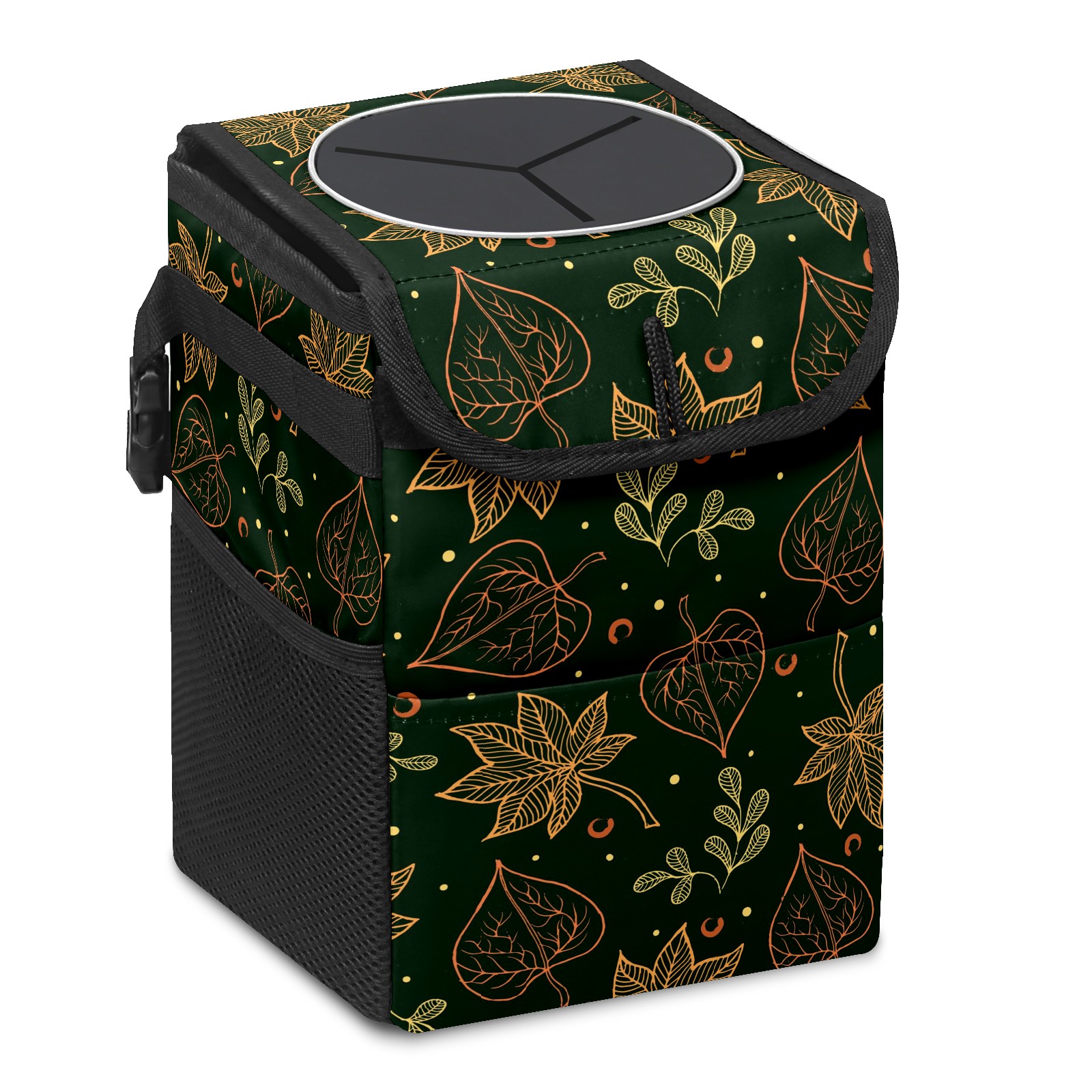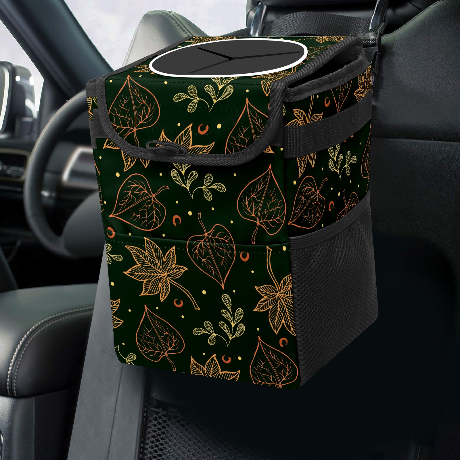 Car Garbage Can — Multi-functional, Lightweight Portable, Reusable Vehicle Trash Can, Waterproof with Sufficient Storage Capacity Autumn Maple Leaves Pattern Dark Green