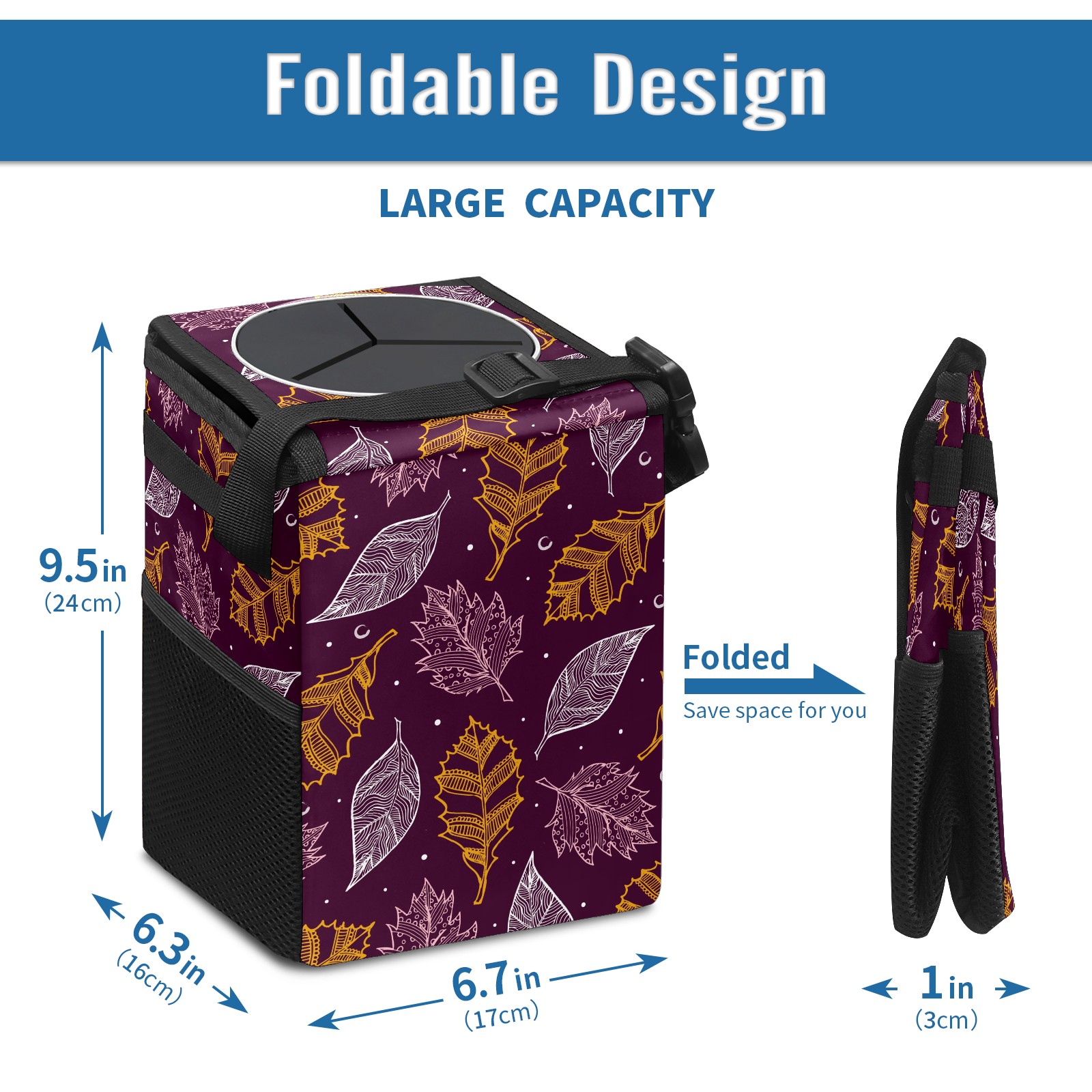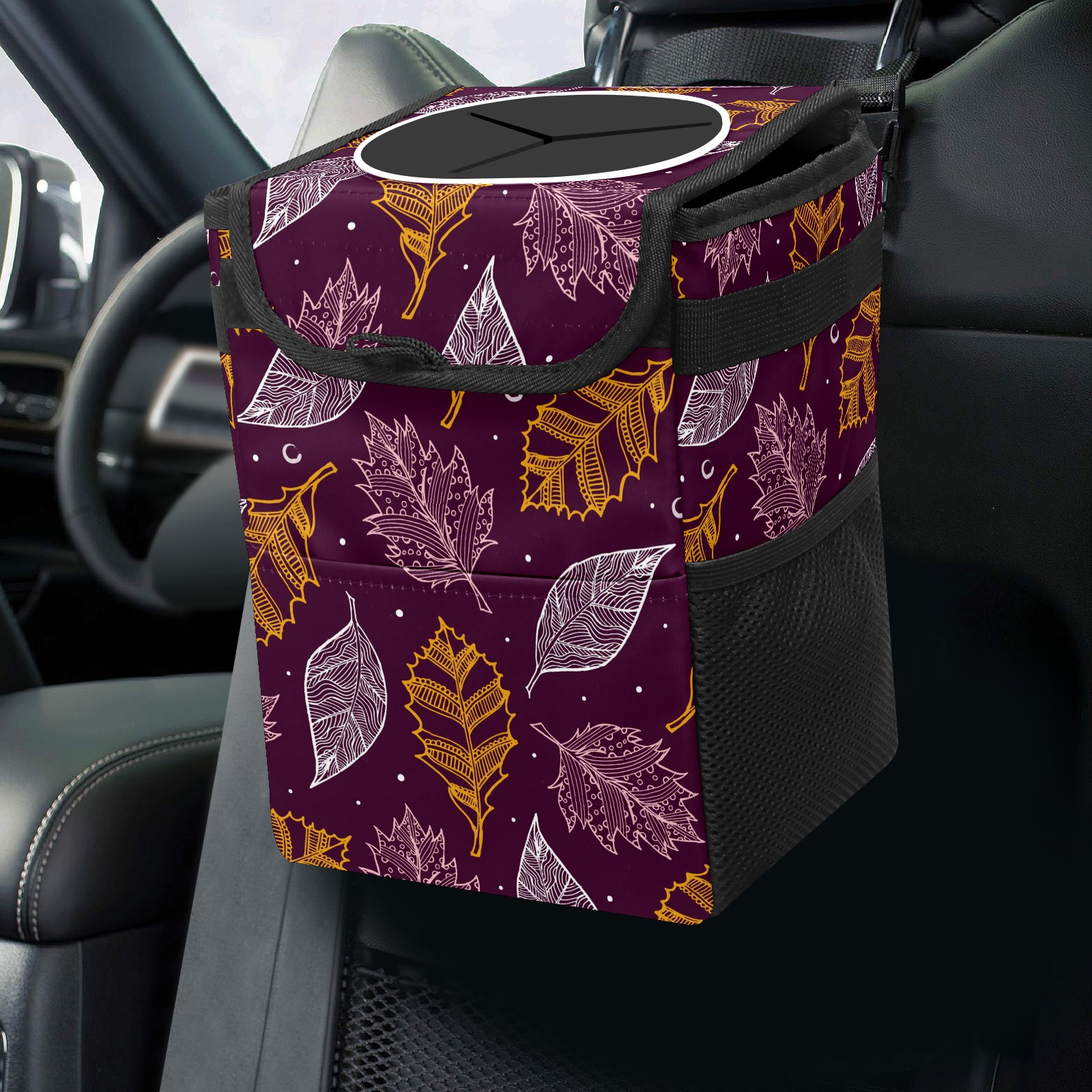 Car Garbage Can — Multi-functional, Lightweight Portable, Reusable Vehicle Trash Can, Waterproof with Sufficient Storage Capacity Autumn Colorful Yellow Leaves Purple Background