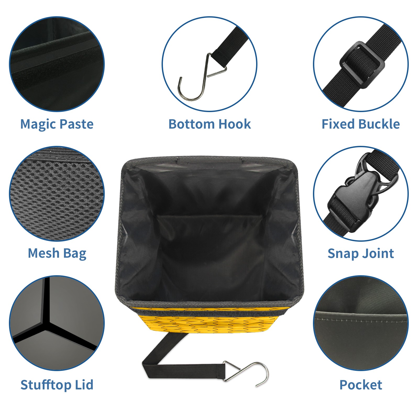 • <p>Keep your car neat with this practical car trash can—built for durability, versatility, and on-the-go convenience! Crafted from quality twill fabric with a waterproof lining, it prevents leaks, keeping seats/floors clean. Clean easily: empty directly or secure a disposable bag with side clips. Adjustable pull cord fits floor, seat, or headrest. 9.5x6.3x6.7 inches, ample space for daily trash, folds flat for storage. More than a trash can, it doubles as a storage bag for cups, toys, docs, and small gadgets—must-have car interior accessory. Installs in seconds on seats, console, or gear shift; adjustable straps keep it stable, no slipping on bumpy roads. Perfect gift for new car owners!</p>