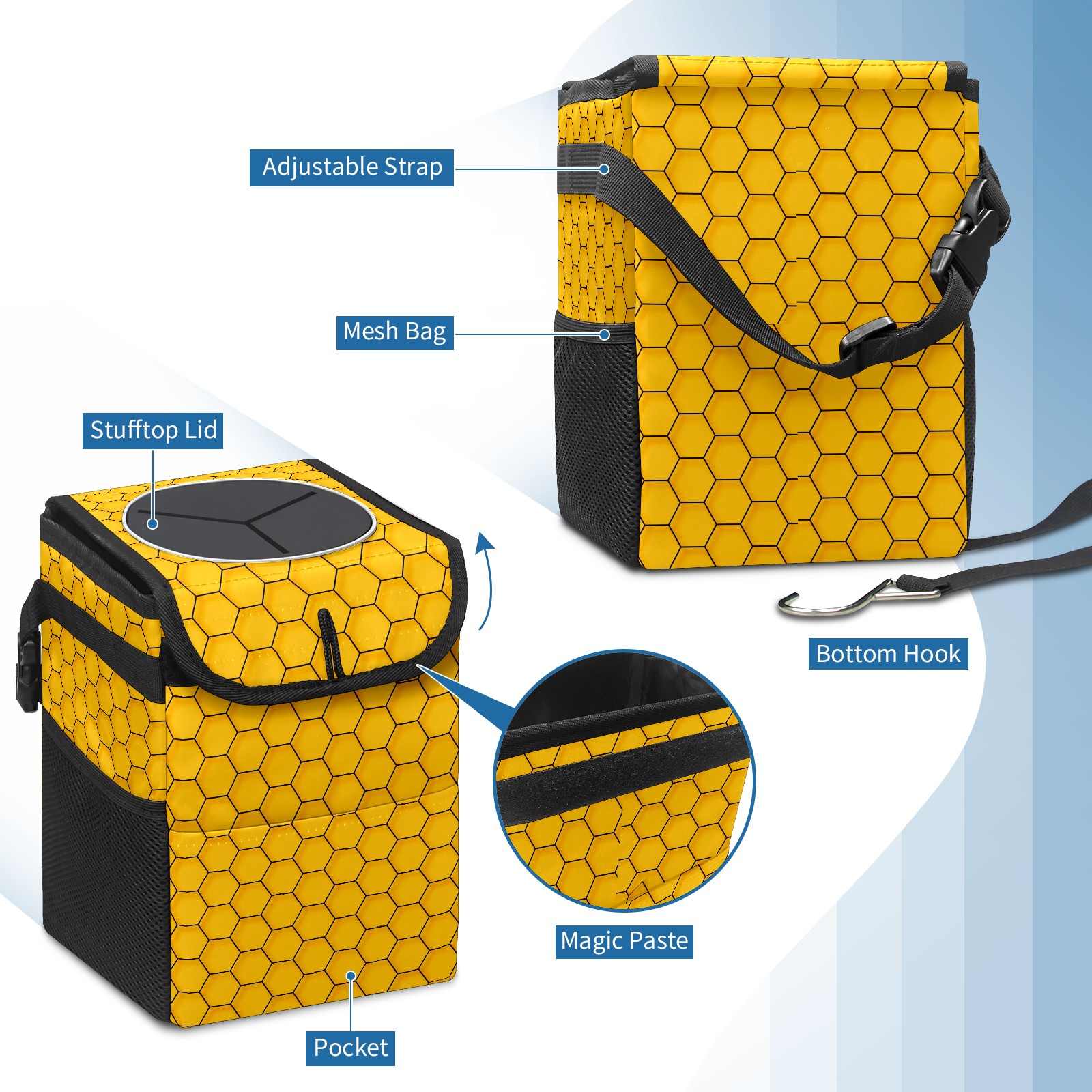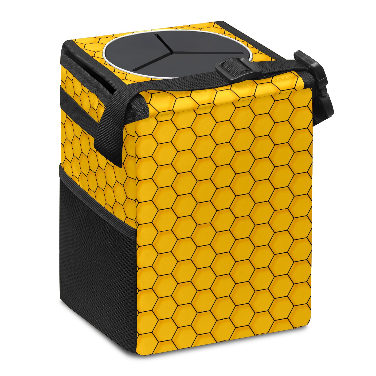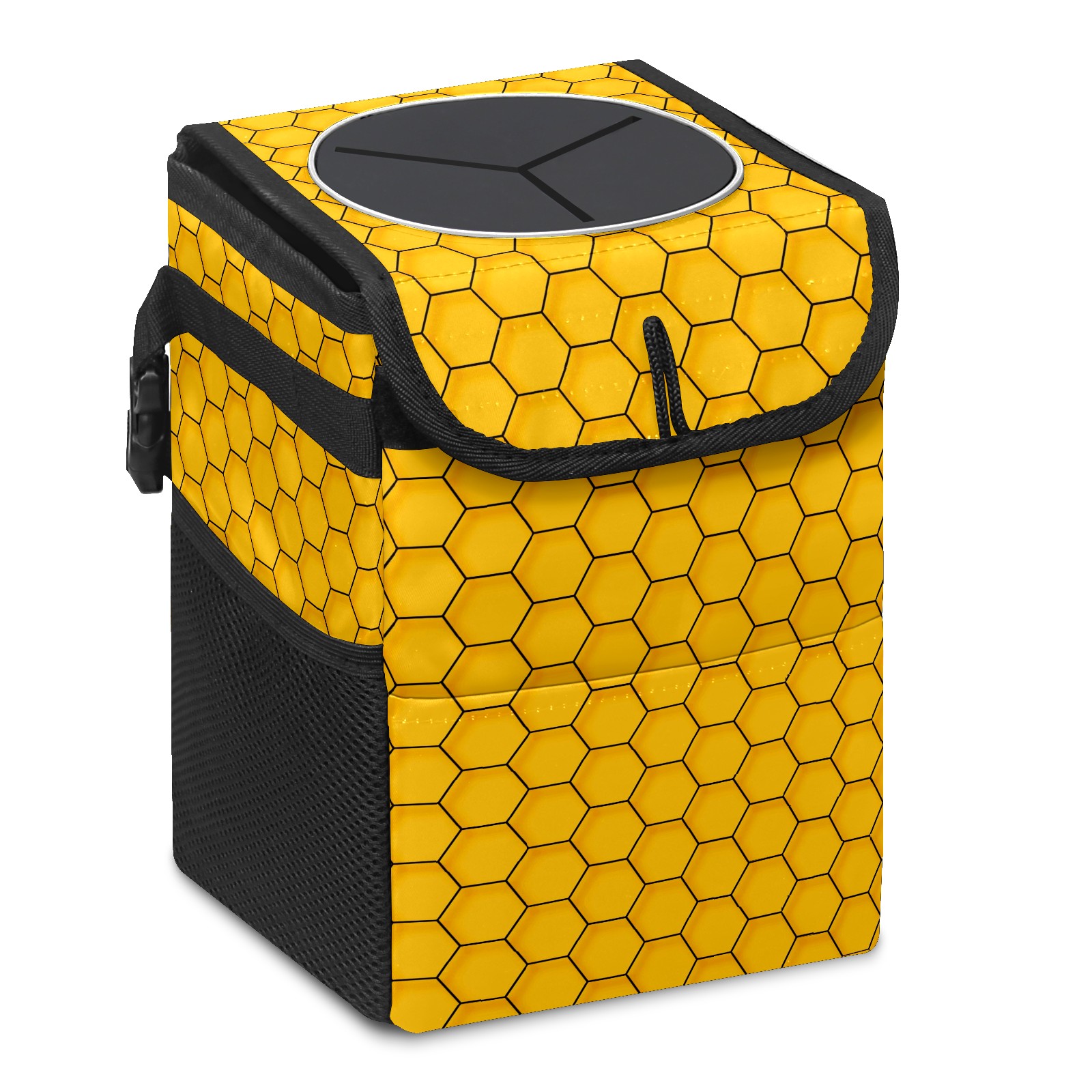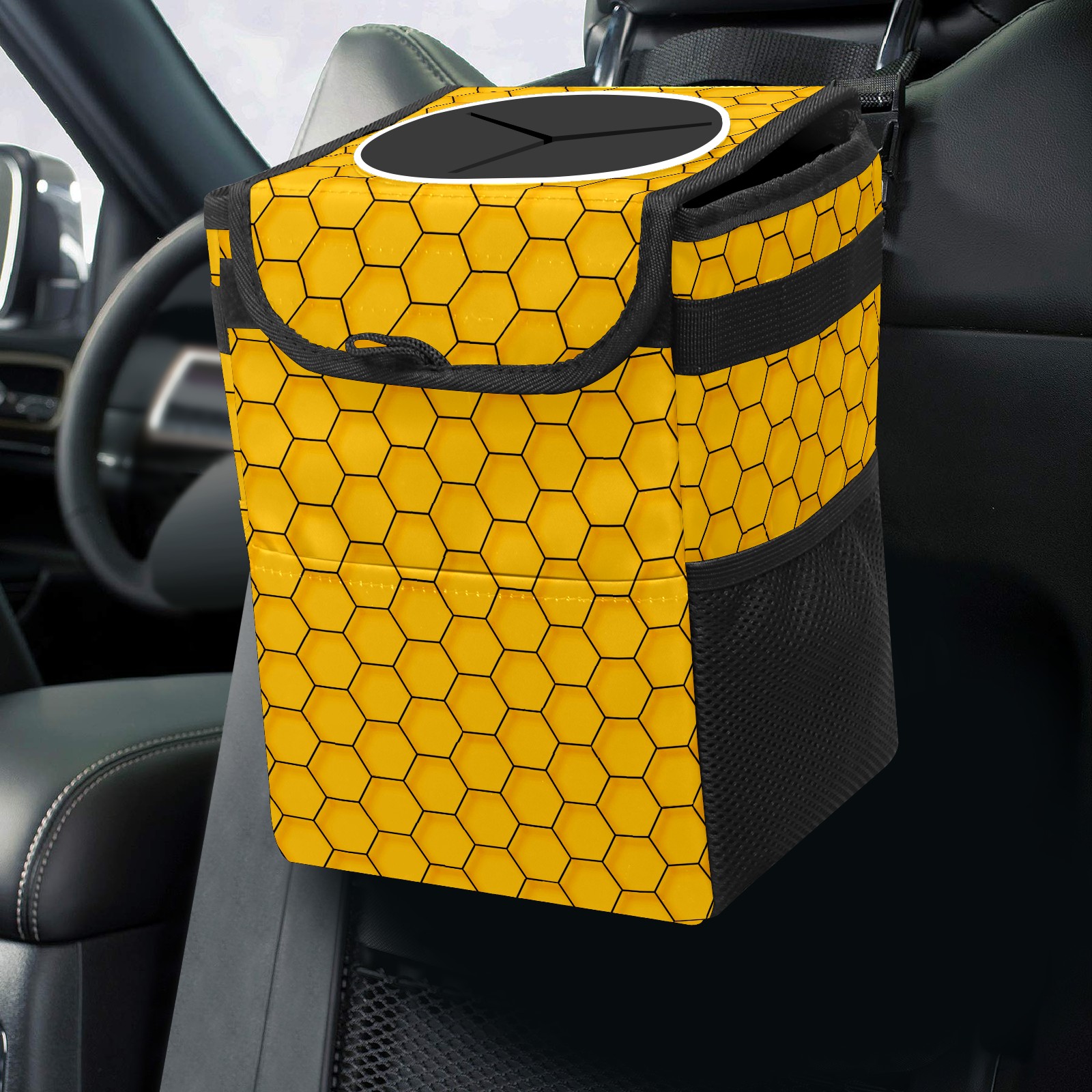 Car Garbage Can — Multi-functional, Lightweight Portable, Reusable Vehicle Trash Can, Waterproof with Sufficient Storage Capacity Abstract Yellow Hexagon Geometric Pattern