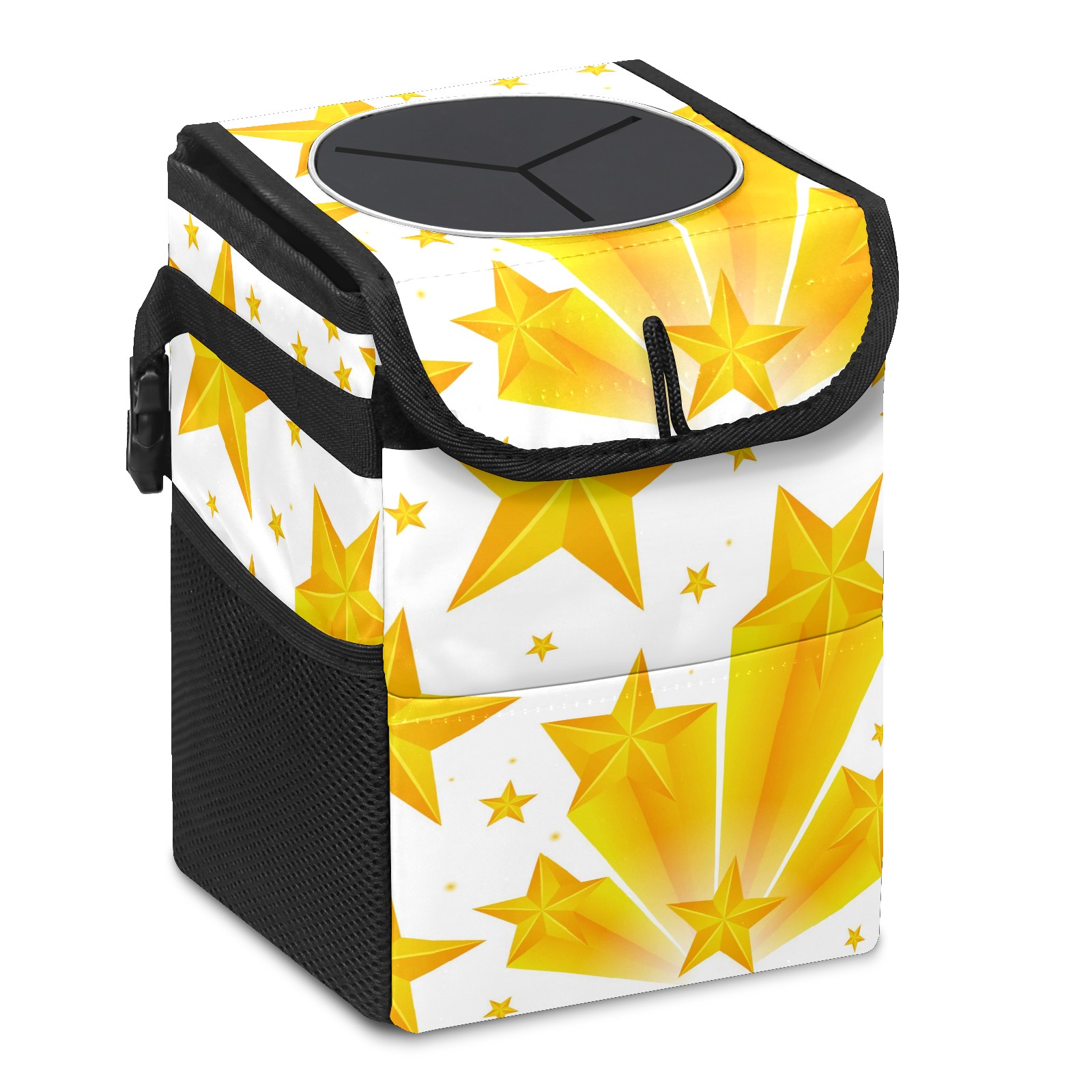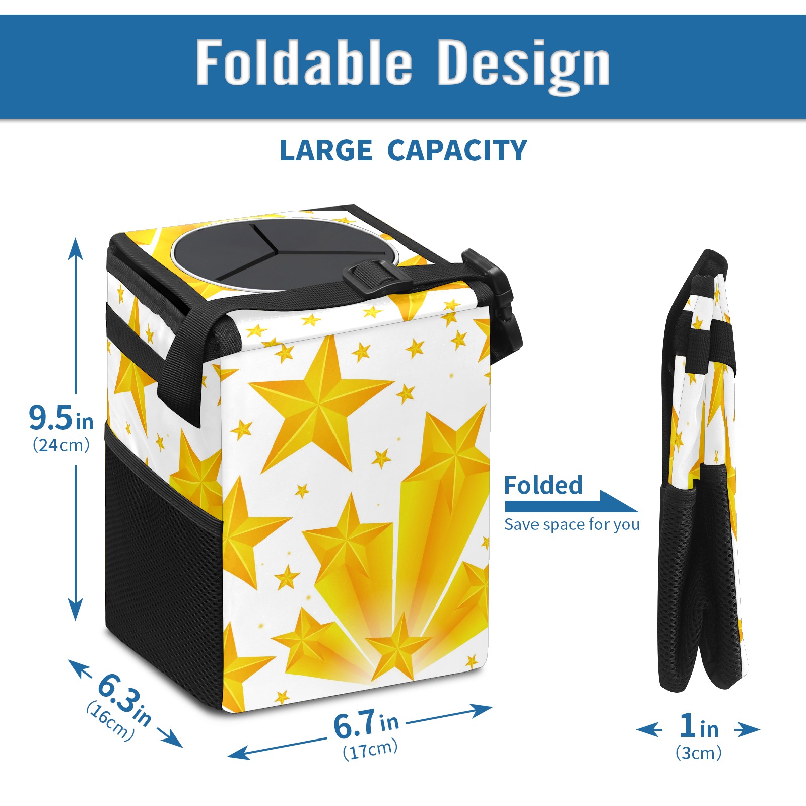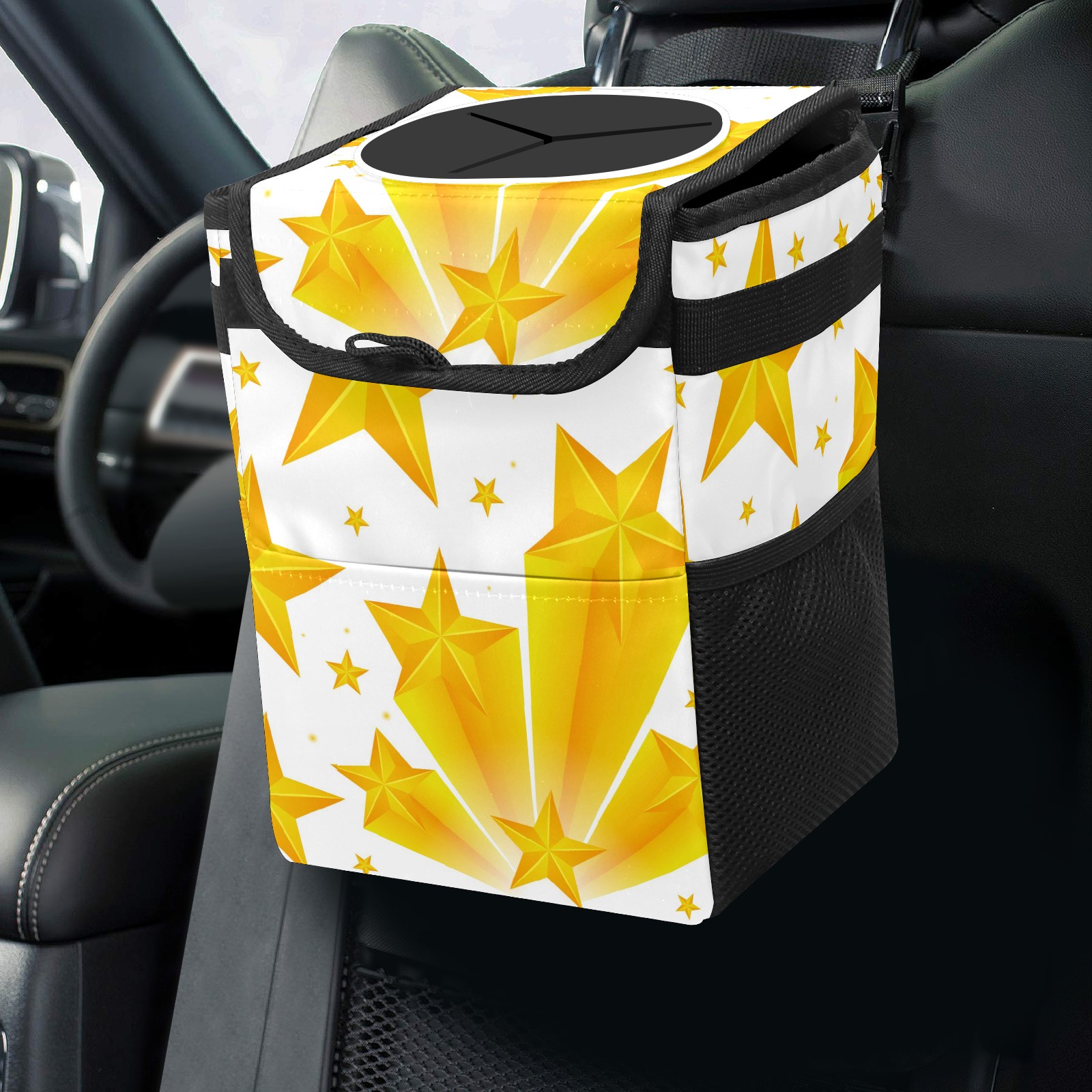 Car Garbage Can — Multi-functional, Lightweight Portable, Reusable Vehicle Trash Can, Waterproof with Sufficient Storage Capacity Yellow Stars Pattern White