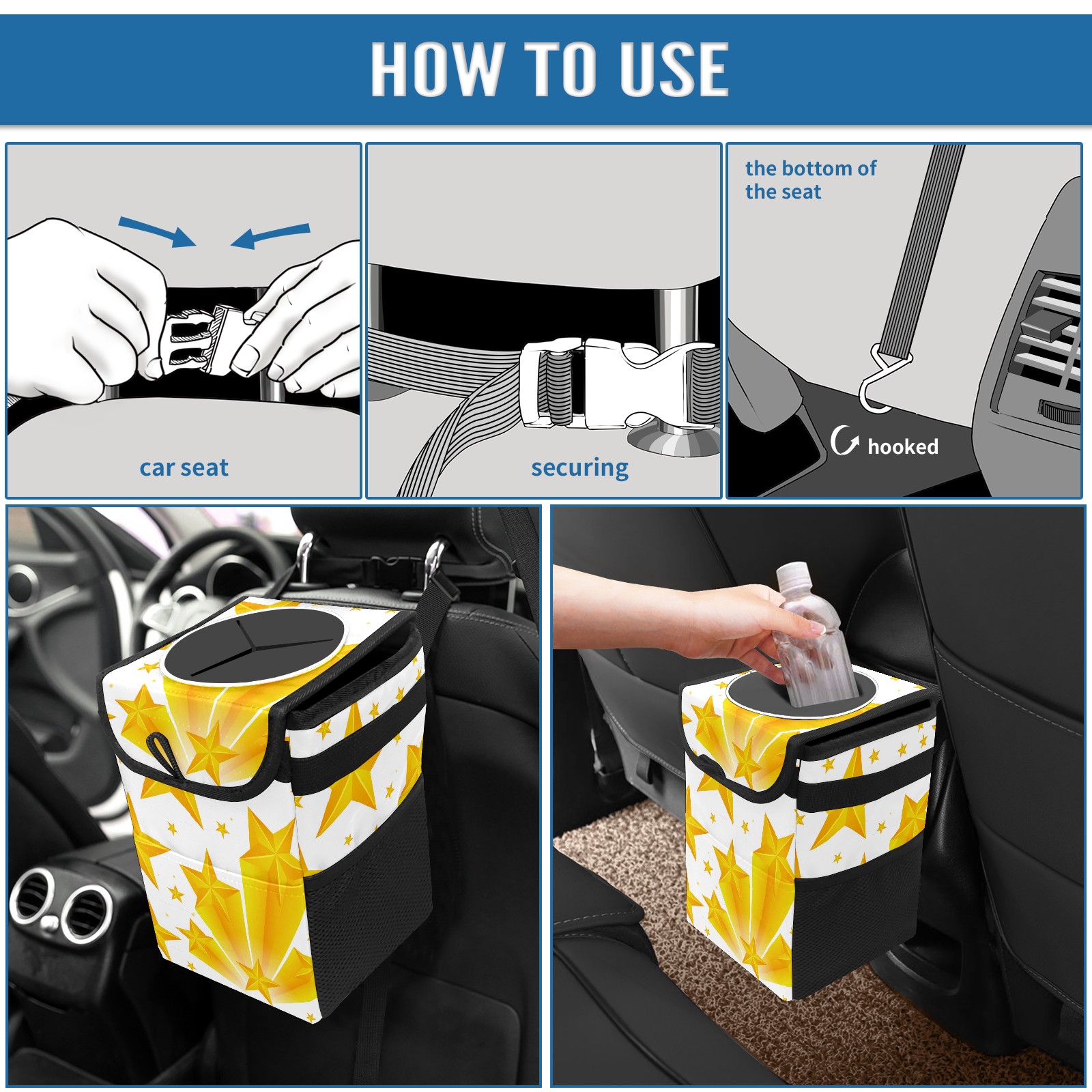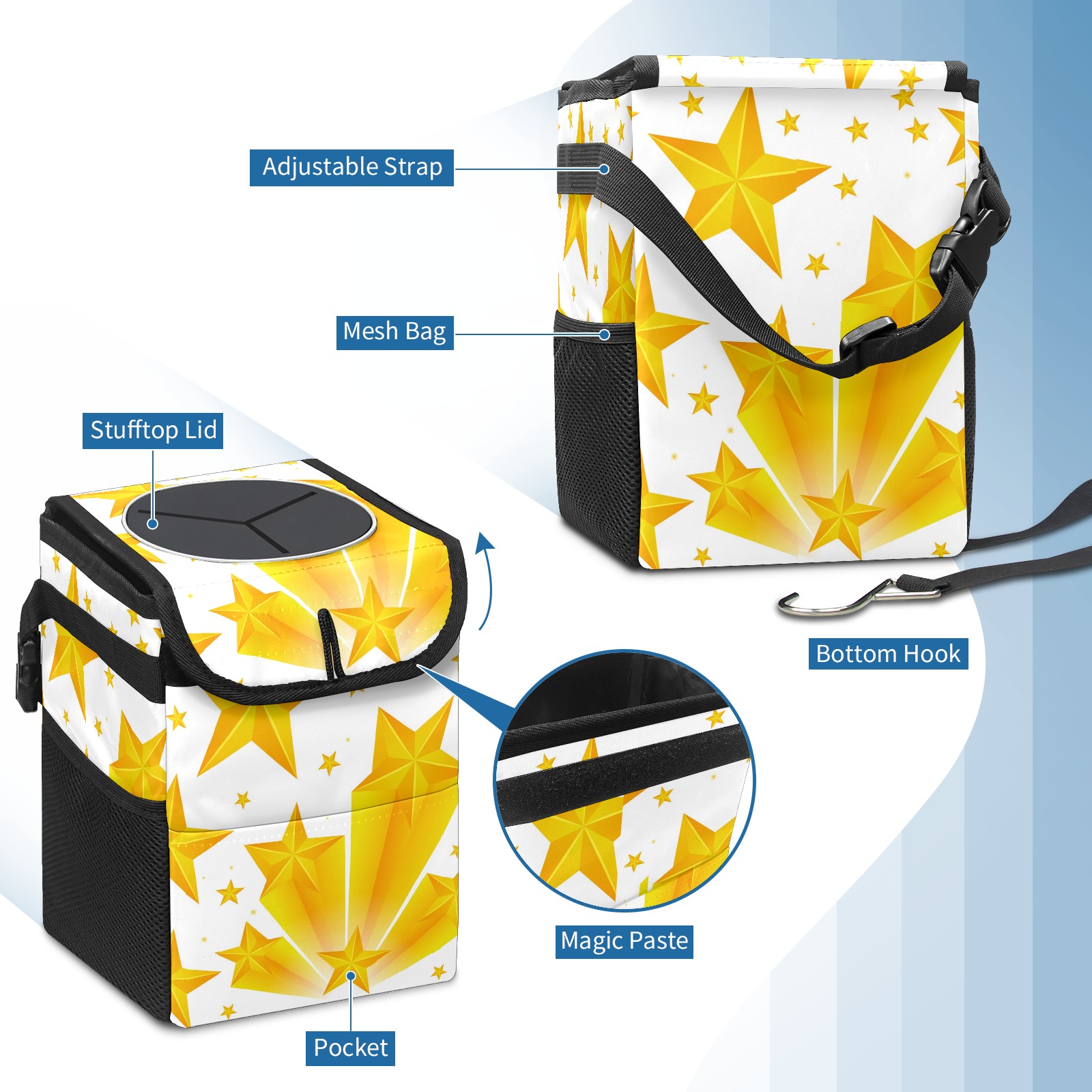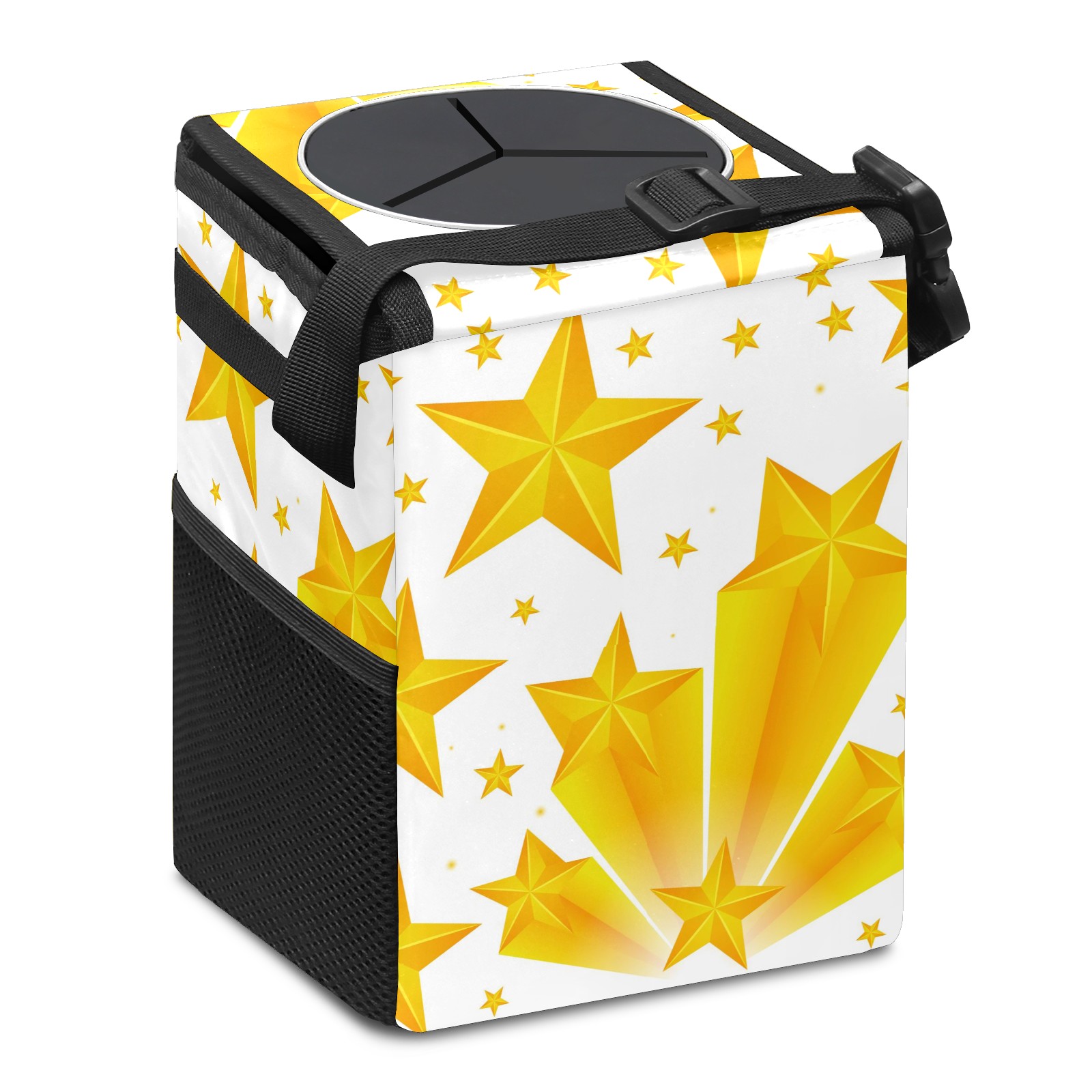 Car Garbage Can — Multi-functional, Lightweight Portable, Reusable Vehicle Trash Can, Waterproof with Sufficient Storage Capacity Yellow Stars Pattern White