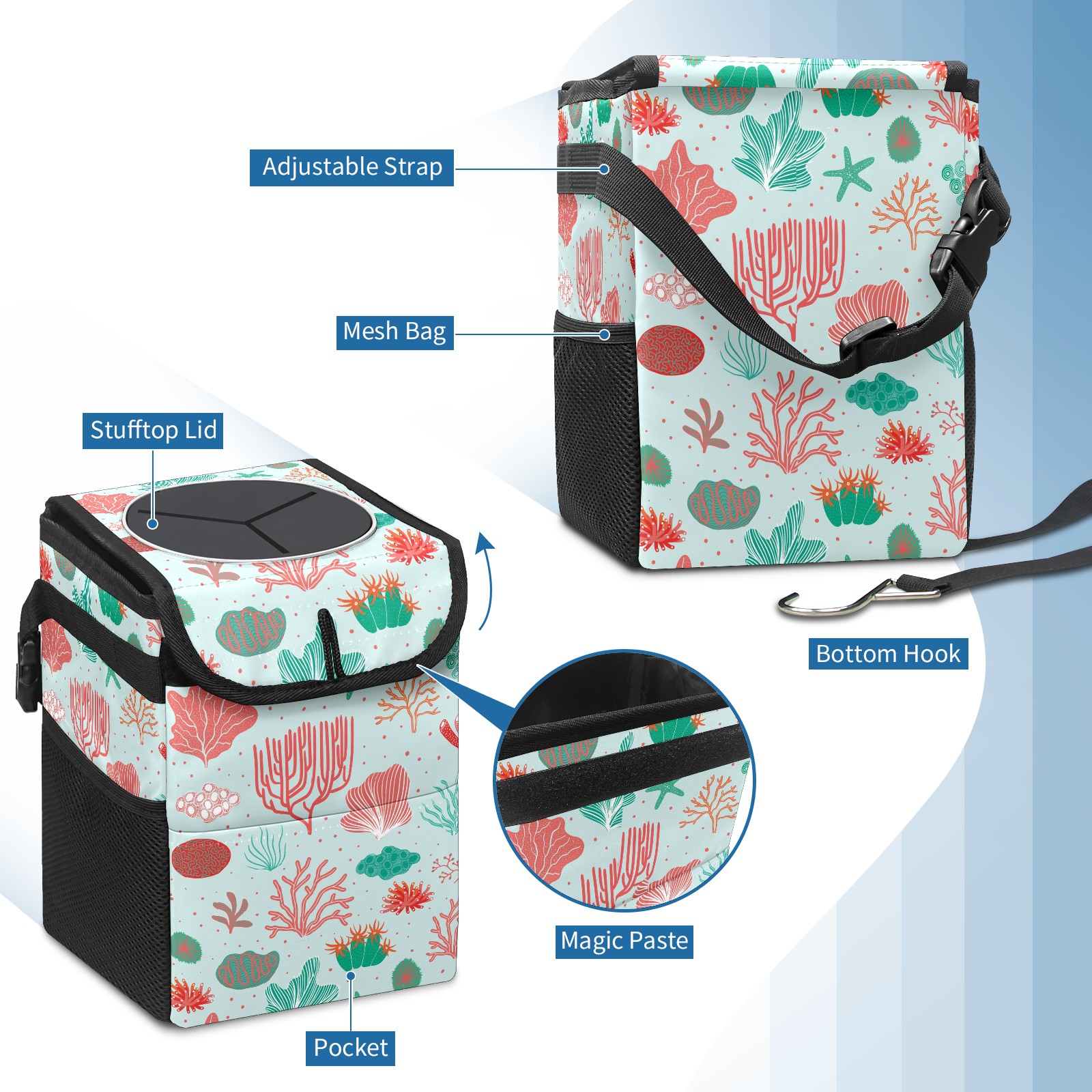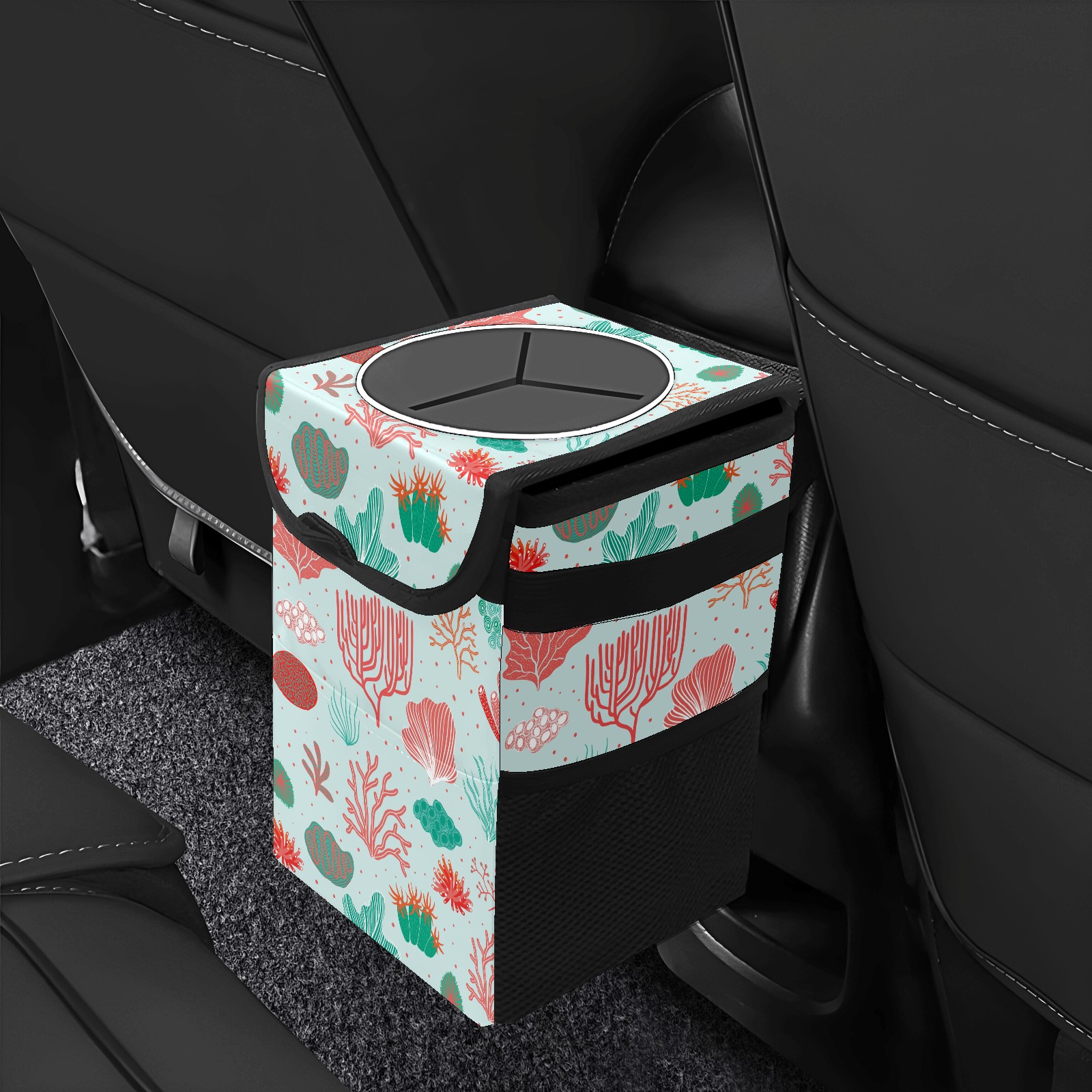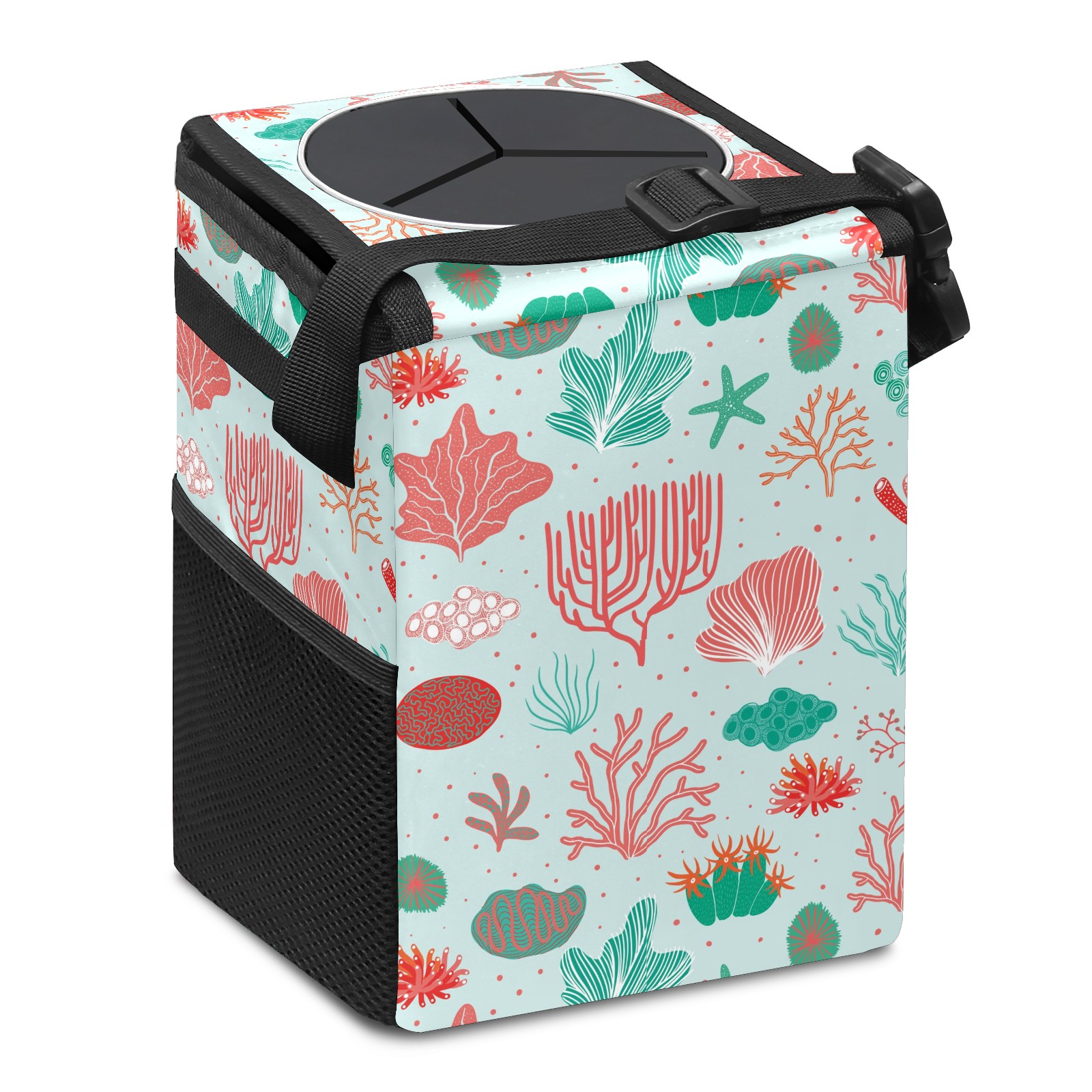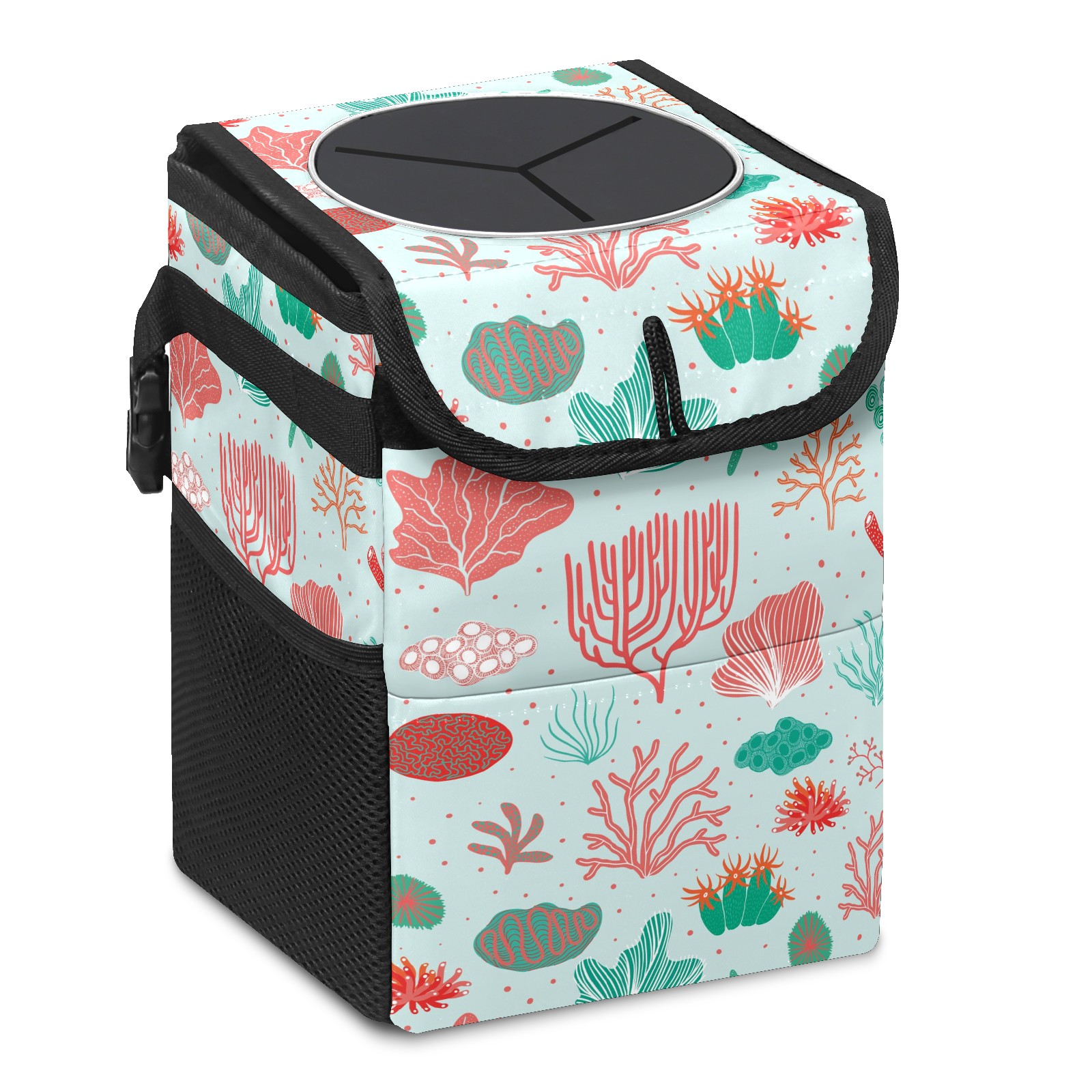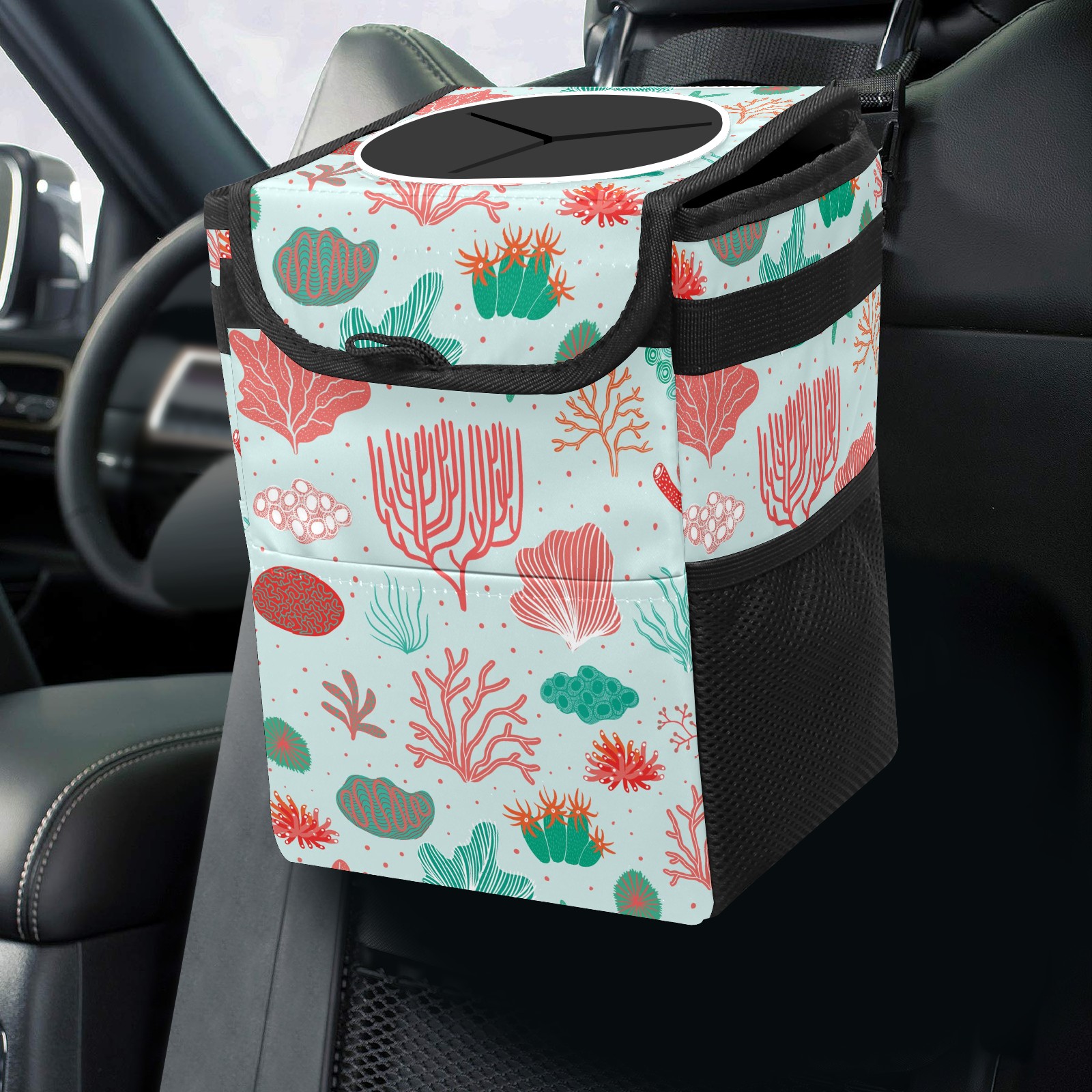 Car Garbage Can — Multi-functional, Lightweight Portable, Reusable Vehicle Trash Can, Waterproof with Sufficient Storage Capacity Watercolor Coral Seaweed Green Pink Blue Plants
