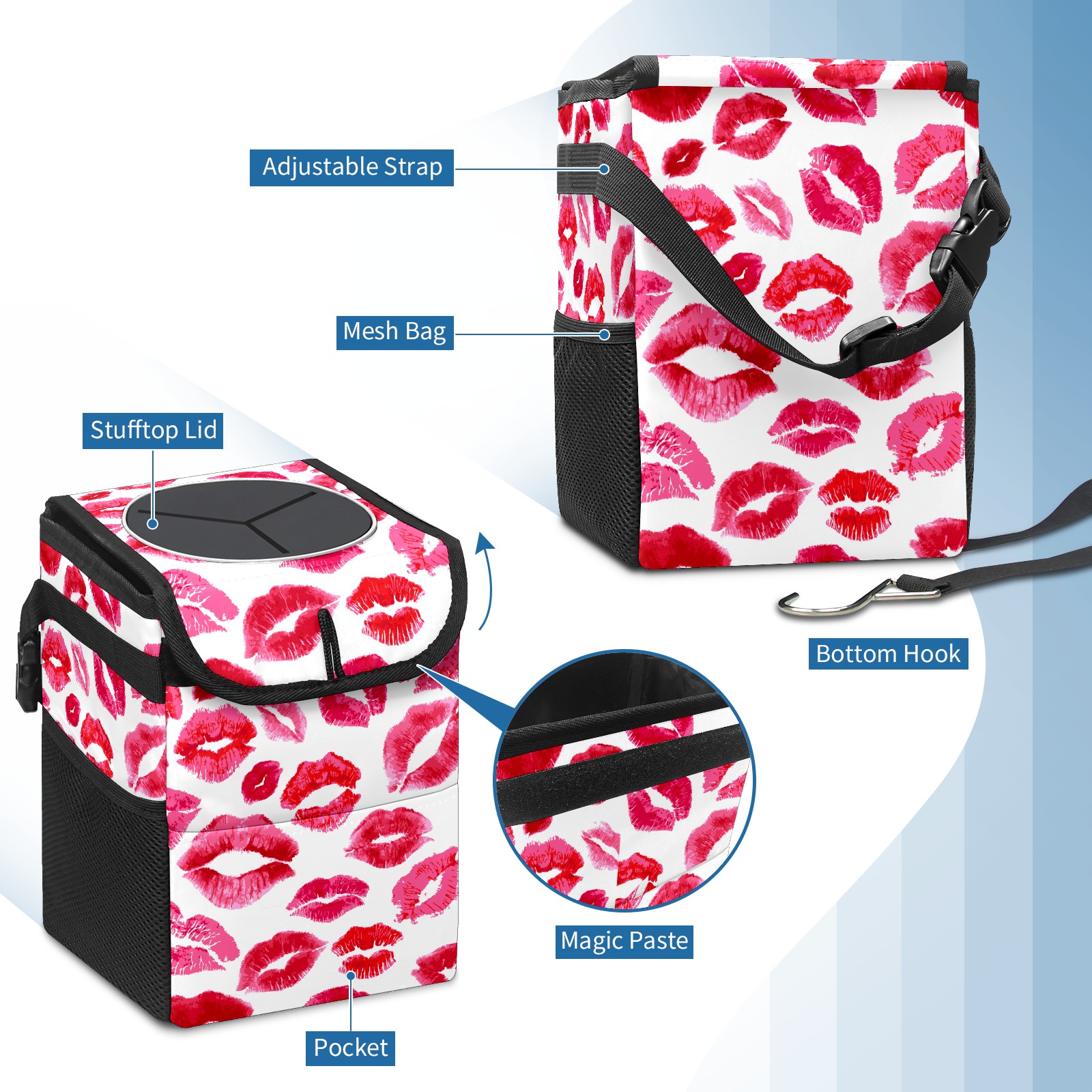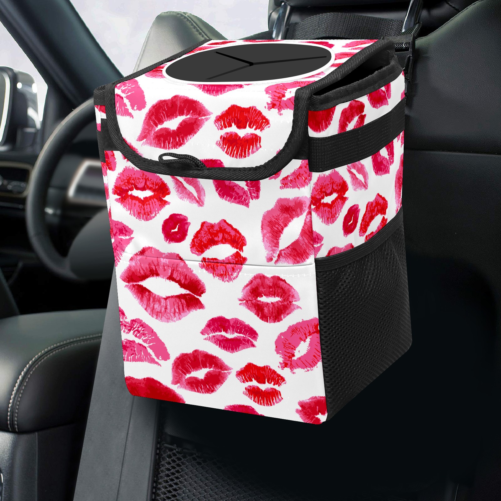 Car Garbage Can — Multi-functional, Lightweight Portable, Reusable Vehicle Trash Can, Waterproof with Sufficient Storage Capacity Red Pink Women Lips Mouth Pattern龙纹已用